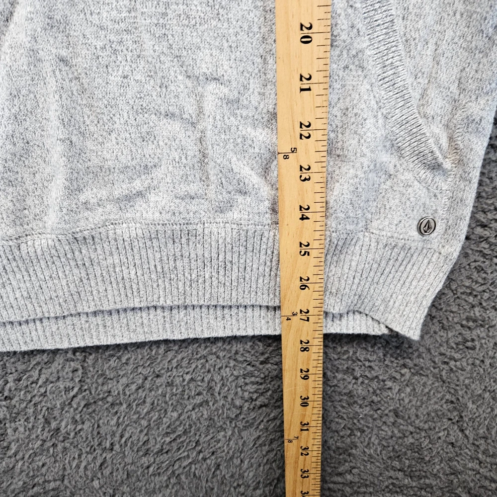 Volcom Undertone Sweater Mens Large Gray Black Button Front Knit Hoodie