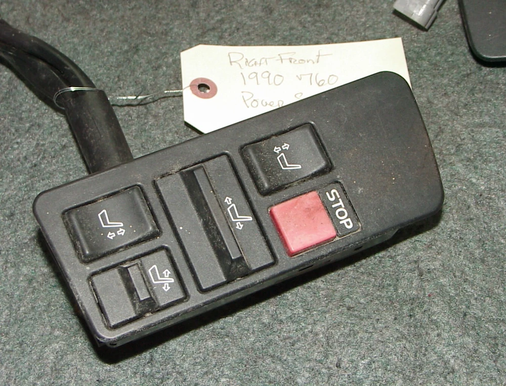Features:As Shown. FOR PARTS OR REPAIR!!Placement on Vehicle:On the outboard side of each front seat frameCountry/Region of Manufacture:SwedenVintage Part:YesColor:BlackPerformance Part:NoTo Control:Power SeatsType:Switch AssemblyBrand:VolvoPart Brand:VolvoUniversal Fitment:No
