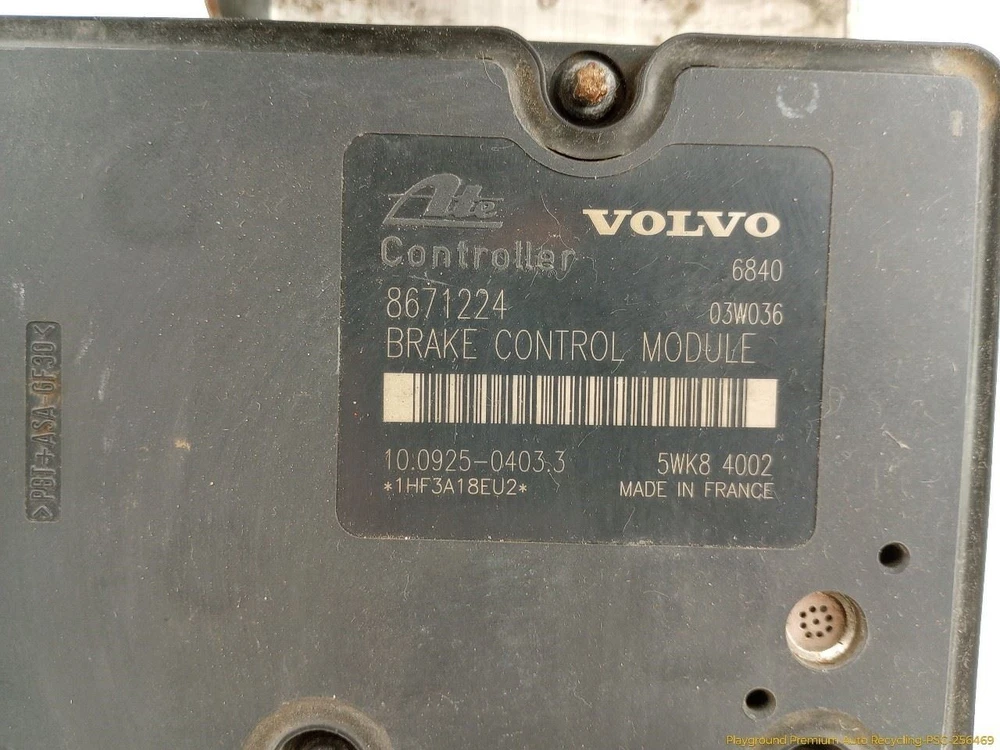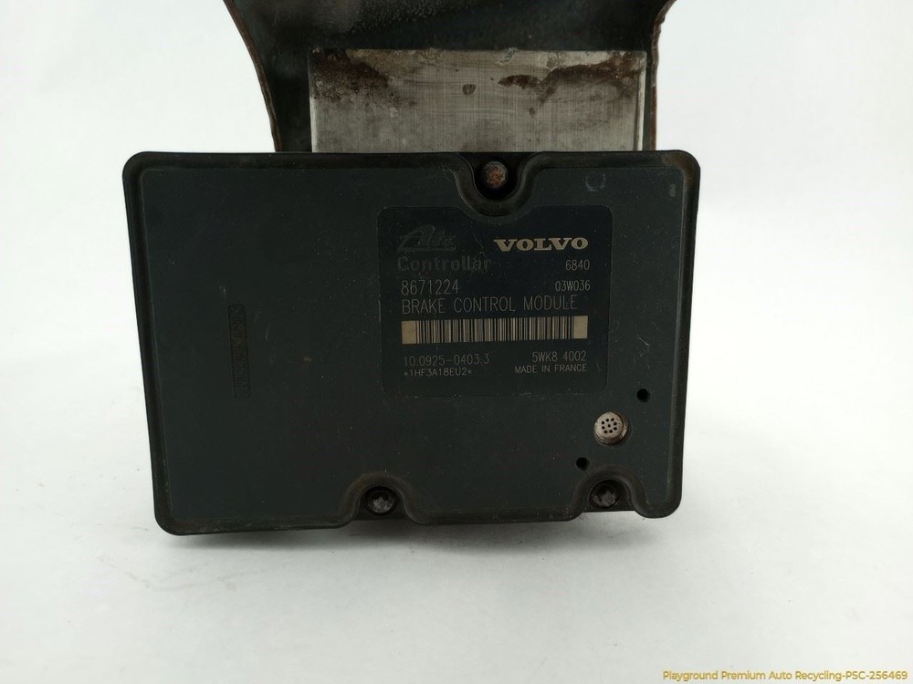 Welcome to Playground - Premium Auto Recycling Feedback [ Add to Favorite Seller me Our eBay STORE New Arrivals All Items Contact Us Most ITEMS SHIPPED WITHIN 2 Business Days Trusted Store customer service is our top priority Product information Volvo V70 XC70 ABS Anti Lock Brake Pump Assembly Fits 2002 2003 2004 02 03 04 Review photos this is your actual part Donor Vehicle: Model: V70 Year: 2003 Miles: 95000 - 0=N/A or Unknown Stock #: 256469 Video: Go to YouTube and search for: "Playground PAR 256469" Part Detail: Part Placement: Options/Color: Wagon,P2,Auto,FWD Description: ABS Pump 8671224 P08671223 Inventory ID: 92438 Description ABS Pump 8671224 P08671223 This part will fit these makes and models with these options VOLVO 60 SERIES 02 Pump Assembly; FWD, w/Stability Traction Control, from VIN 131013 VOLVO 60 SERIES 03-04 Pump Assembly; FWD, w/Stability Traction Control VOLVO 70 SERIES 02 Pump Assembly; FWD, SW, w/Stability Traction Control, w/o Dynamic; Belgium built (FC2), from VIN 204075 VOLVO 70 SERIES 02 Pump Assembly; FWD, SW, w/Stability Traction Control, w/o Dynamic; Sweden built (FC1), from VIN 207133 VOLVO 70 SERIES 03-04 Pump Assembly; FWD, SW, w/Stability Traction Control, w/o Dynamic VOLVO 80 SERIES 02 Pump Assembly; from VIN 255065, w/Stability Traction Control VOLVO 80 SERIES 03-06 Pump Assembly; w/Stability Traction Control Shipping Playground PAR, LLC ships to US addresses within the continental 48 states. Shipping to Alaska, Hawaii, Puerto Rico, APO, FPO or PO Box addresses and International is available for select parts only. Please contact us through eBay messaging for details and shipping rates for other items. Local Pick-up at our facilities is available. Please contact us prior to your purchase to arrange local pick-up. Please allow up to 10 days for delivery unless your part is included in eBay's Guaranteed Delivery Program. Most areas in the US are within 5 days. If an item arrives damaged, please contact us via eBay messaging within 24 hours for assistance. Warranty Return Policy All parts we sell come with a 3 0 Day Money Back Guarantee unless otherwise stated. The 30 day period starts when the item is delivered. Please contact us through eBay messaging for a Return Merchandise Authorization Number (RMA) before returning any part. We do not cover the cost of labor charges during the installation of your parts. All original shipping costs are non-refundable. Parts must be returned in the same condition as when you received the part. Buyer is responsible for all return shipping costs. Please use the Contact Seller feature if you have questions. Warranty All of our parts (except AS-IS and PARTS ONLY parts) are covered under 60 day warranty. Our warranty policy is below: 60 days starts as of the date of purchase. All requirements of our return policy are part of our warranty policy. This includes the purchaser paying for return shipping. There are no reimbursements for labor, diagnostics, towing, car rental, lost wages, programming or reprogramming. The warranty is for the original purchaser only and is not transferable or assignable. This warranty only covers when parts are used in normal driving conditions and does not cover accidents, abuse, neglect, improper installation, improper maintenance, off-road or use outside of the proper vehicle. Playground may choose to repair, replace or refund the part based on available stock at our discretion. Playground reserves the right to use a repair facility of its choosing to diagnose or perform a warranty claim repair. Parts are not covered for external fluid leaks. We recommend that seals and gaskets be replaced as part of the repair process. Proof of proper lubrication and refilling of components is a requirement for warranty claims. Many electronic modules and components require programming. This process must be followed or the part may not operate correctly, or may be damaged. Proof of programming is required for a warranty claim. Major components are stamped and may have heat sensitive tabs attached to indicated overheating that would void warranty. Warranty covers the base component and none of the other attached parts. We are selling the single part and other parts left attached are there for possible convenience or to protect the part we are selling. These extra attached parts are not covered by any warranty. At no time will the warranty claim ever exceed the original purchase price of the part. Payment Playground PAR, LLC only accepts Ebay Managed Payments for items in our eBay Store. Sales tax will be applied to all orders due to Ebay Policy. Contact Us Please contact us prior to purchasing this part if you have any questions regarding our business policies, the warranties or guaranties we offer or the fitment of this part with your vehicle. Want better photos? Contact us, we can get them to you. We strive to make sure your vehicles repair needs are met the first time you order a part through our store on eBay. To do so, we are happy to verify your vehicles VIN number prior to your purchase, please use the Contact Seller feature within the eBay listing. Â Playground PAR, LLC ships to US addresses within the continental 48 states. Shipping to Alaska, Hawaii, Puerto Rico, APO, FPO or PO Box addresses and International is available for select parts only. Please contact us through eBay messaging for details and shipping rates for other items. Local Pick-up at our facilities is available. Please contact us prior to your purchase to arrange local pick-up. Please allow up to 10 days for delivery unless your part is included in eBay's Guaranteed Delivery Program. Most areas in the US are within 5 days. If an item arrives damaged, please contact us via eBay messaging within 24 hours for assistance. Return Policy All parts we sell come with a 3 0 Day Money Back Guarantee unless otherwise stated. The 30 day period starts when the item is delivered. Please contact us through eBay messaging for a Return Merchandise Auth