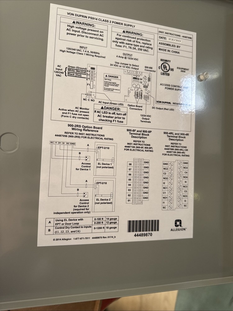 The Von Duprin 914-4RL Power Supply is a reliable and efficient power supply designed specifically for electric exit devices. With an output voltage rating of 24V DC and an inrush current rating of 4A, this power supply provides the necessary power to ensure smooth and reliable operation of your electric exit device. Trusted for its quality and performance, the Von Duprin 914-4RL Power Supply is a crucial component for any commercial or industrial facility requiring a power supply for electric exit devices.