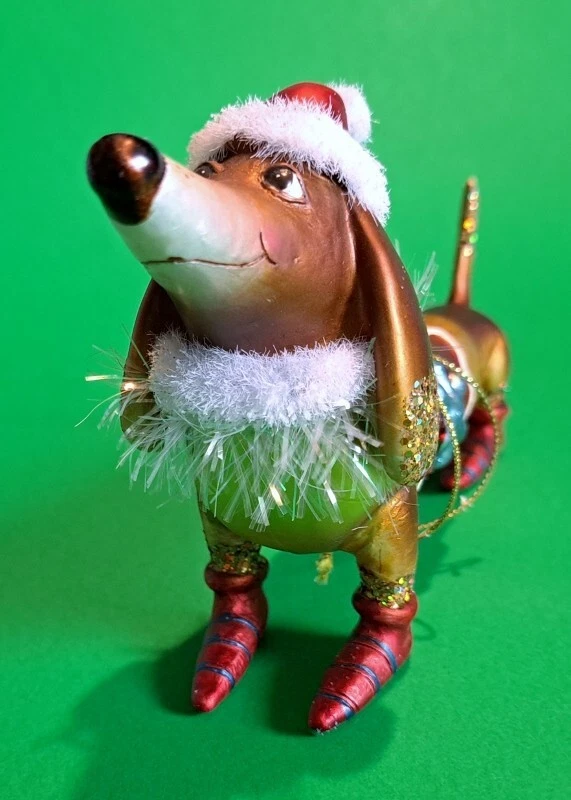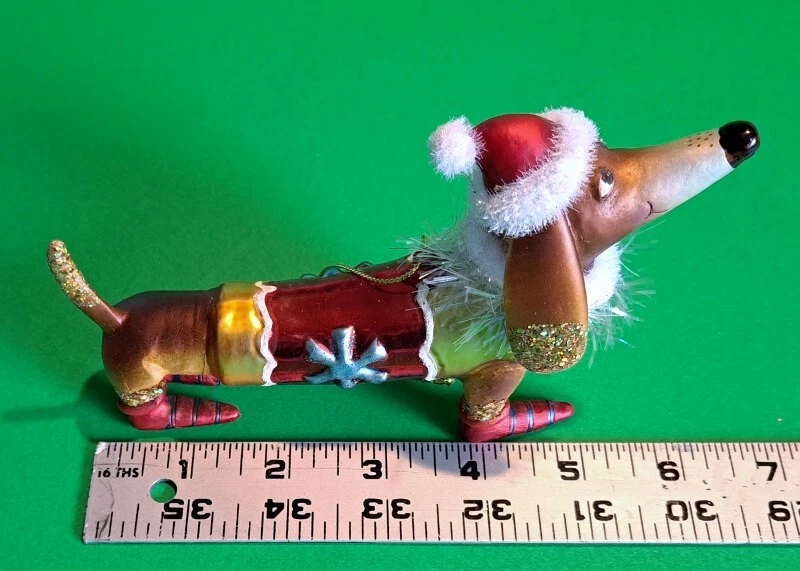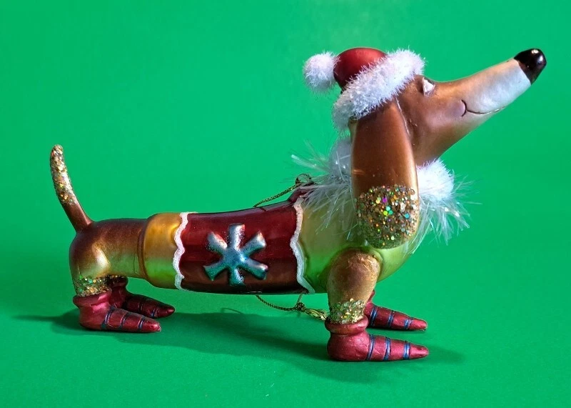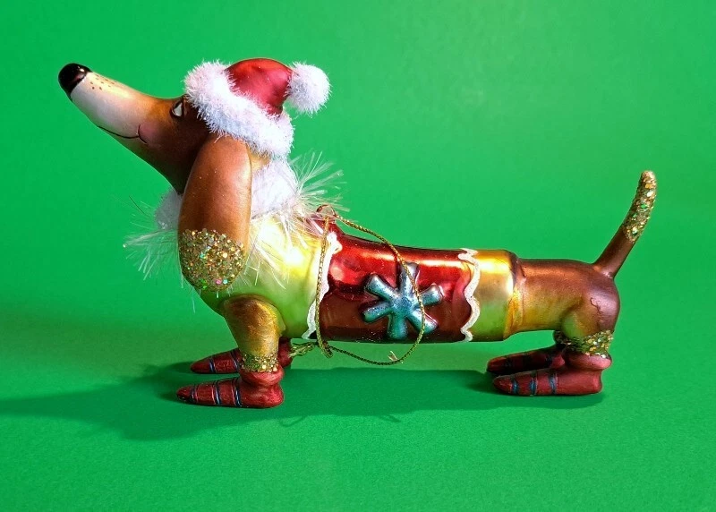 This Vondel's Dachshund Christmas ornament can be used as to decorate the Christmas tree, but can also be used as decorations on the table, hanging in the window or on a branch in a vase. It is a hand blown, hand painted glass ornament featuring a winter dachshund in his glitter enhanced shoes and Santa stocking hat. It measures 5.5” X 4” X 2” and made of 98% recycled glass. Please check out my additional listings at vbdoxie and vbdoxie2 band check out my Dachshund Holiday listings at vbdoxie1 . I generally ship once a week; the day varies and why there is a 5 day processing time. If you are buying as a gift and item needs to go out ASAP please message me and I will do my best to get item out quickly. A portion of the proceeds of this sale go towards paying for microchips for rescued dachshunds in foster care in the Hampton Roads Virginia area. Added protection to make sure these poor little dogs don't end up lost, alone and at risk in a shelter again. And to help them get back safely to their adopted homes & families. Additional proceed will also be donated to various dachshund rescues groups and dachshund rescue related causes like out of the norm medical cost of a dog in great need of help.