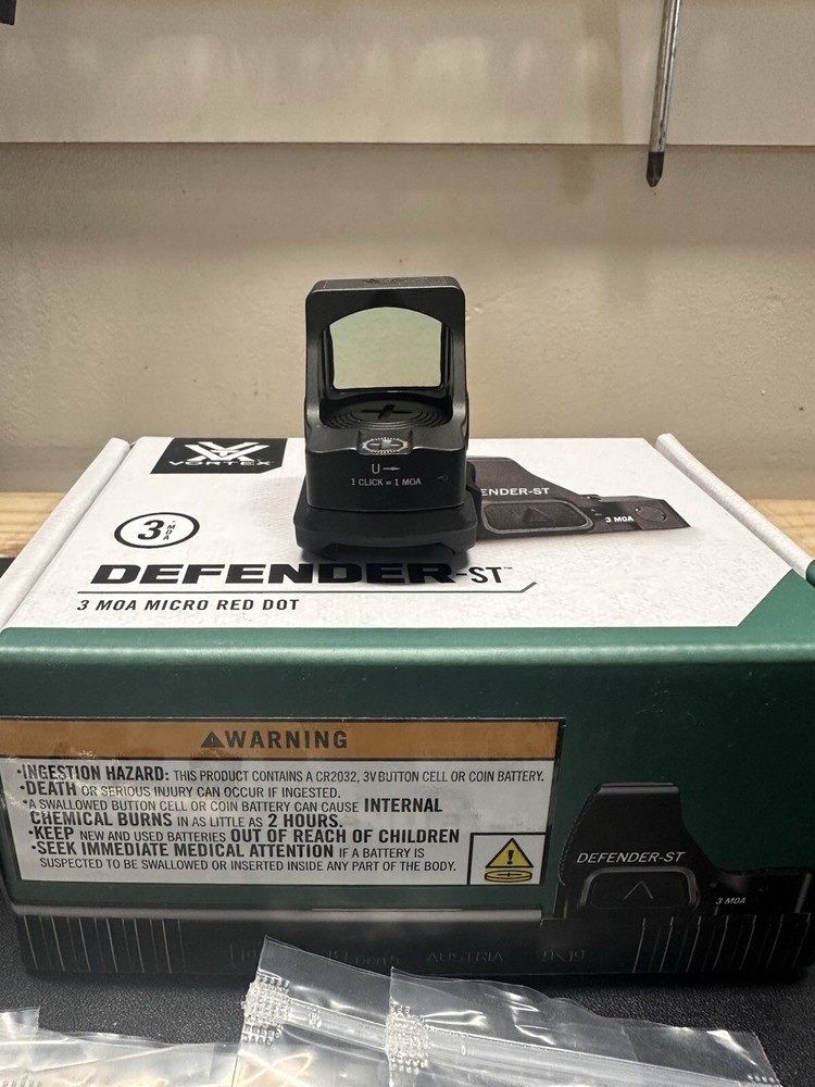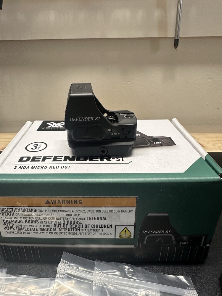 Vortex Defender ST red Dot 3MOA Only took out box to test function. Please view images for condition! Comes with everything in box!