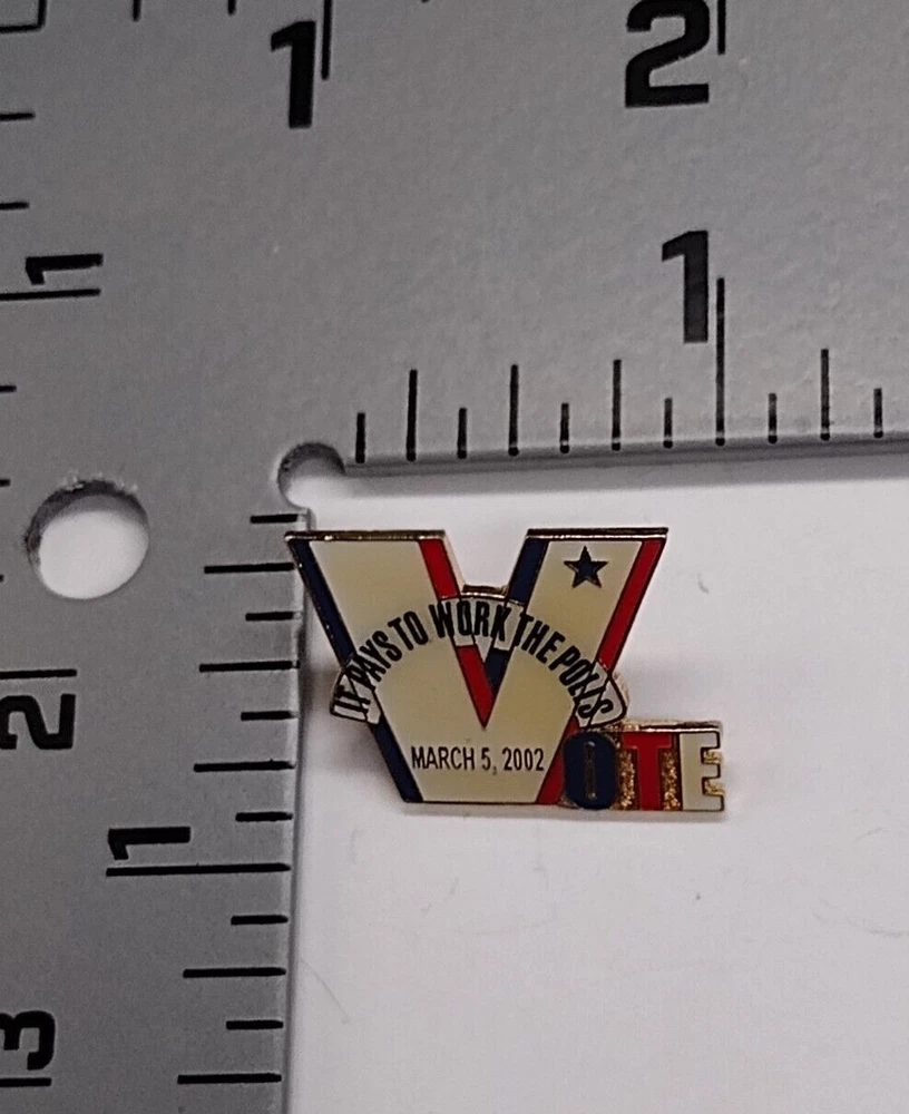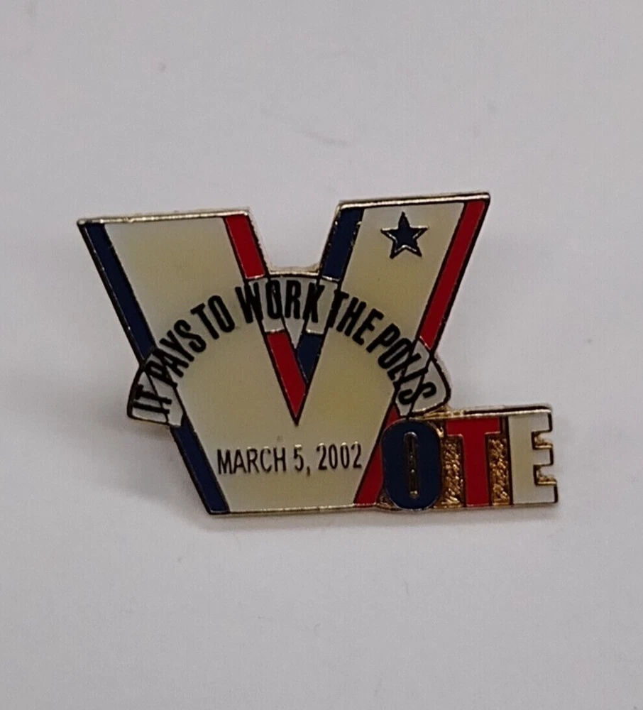 Free Shipping! Pre-owned Vote It Pays To Work The Polls March 2992 Lapel Pin Shows normal surface and paint wear. Please refer to the photos for details. If you have any questions, just send a message. Thank you.