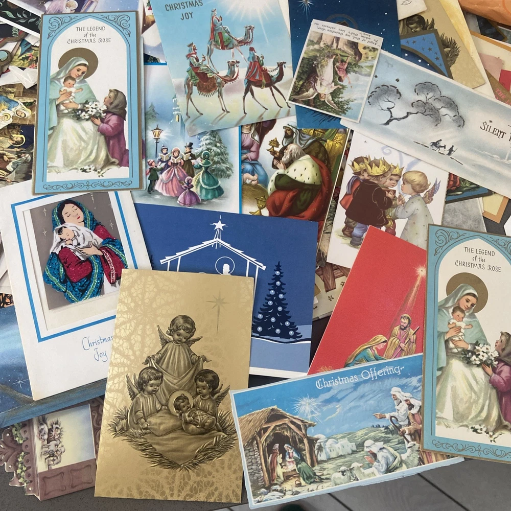 Guaranteed to be over 150 images, but I didn’t have time to count all of them. There are too many There are too many to take photos of, but I took a general sampling. Most of these are Christmas cards where the back has already been cut off. I’m assuming somebody was gonna do some sort of crafting with them. Some of them are images cut from old Bibles or newspaper clippings, but there are a lot of images to work with. This is a great bundle. See photos for a general sampling. This lot is sold as is.