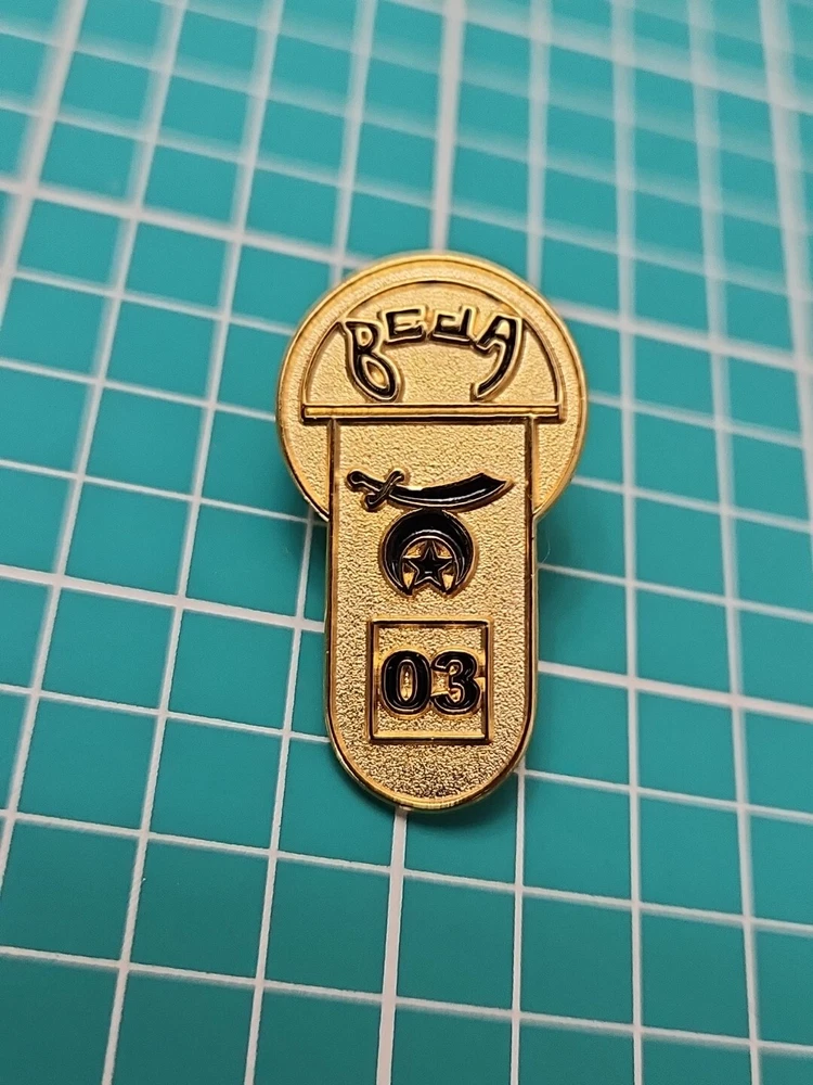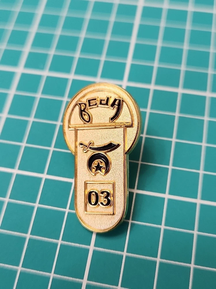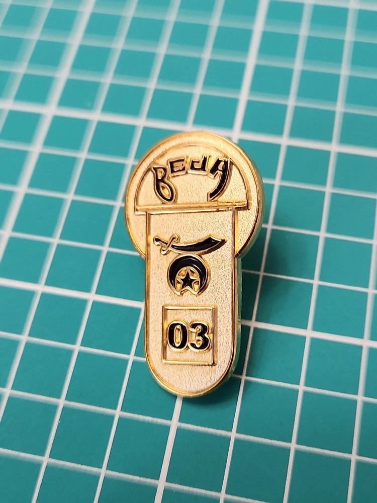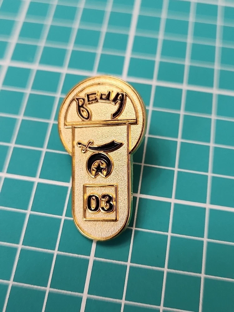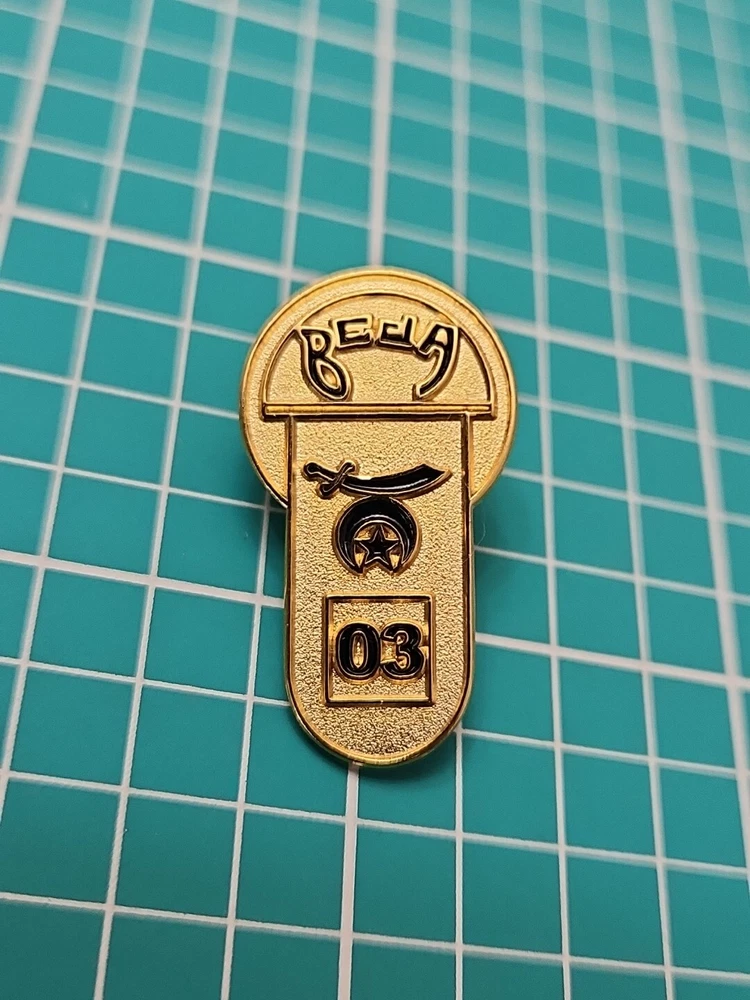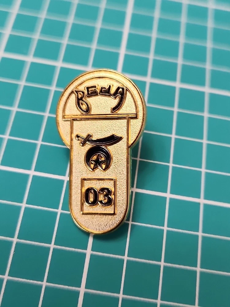 This vintage lapel pin from 2003 features the iconic Shriner Beja Temple Moon and Saber design in a beautiful gold tone. It's a great addition to any pin collection and perfect for showing off your support of the Shrine organization. The pin is in excellent shape and ready to be worn or displayed. Don't miss out on this unique collector's item!