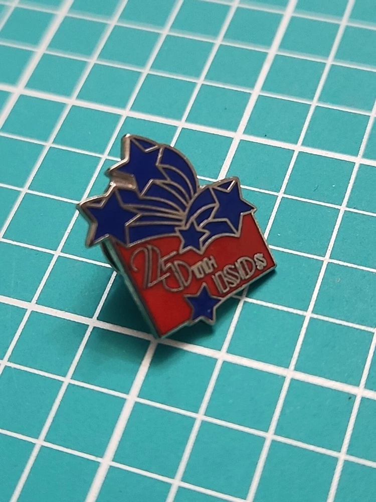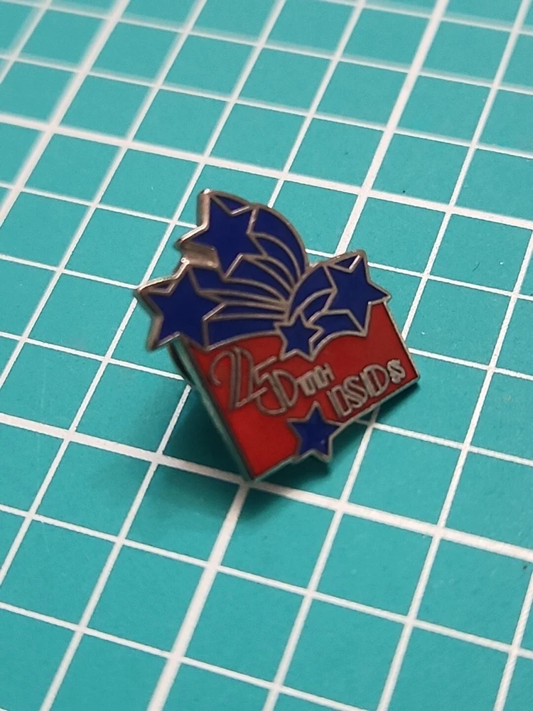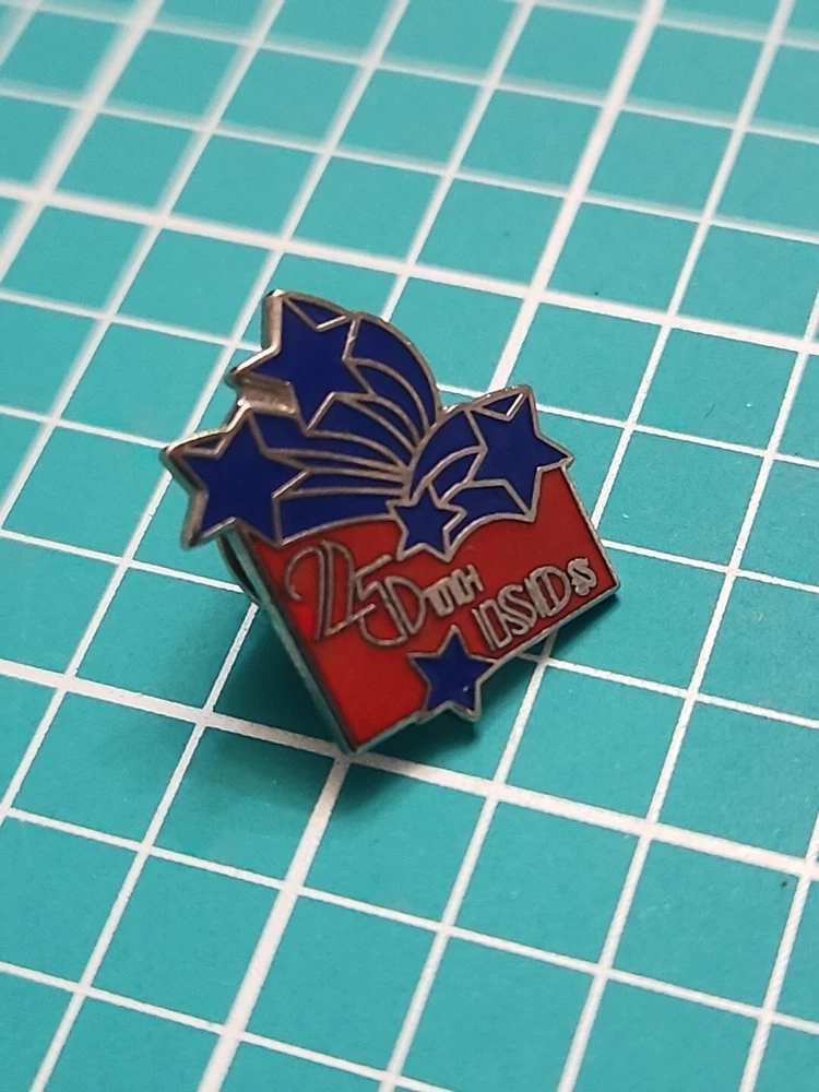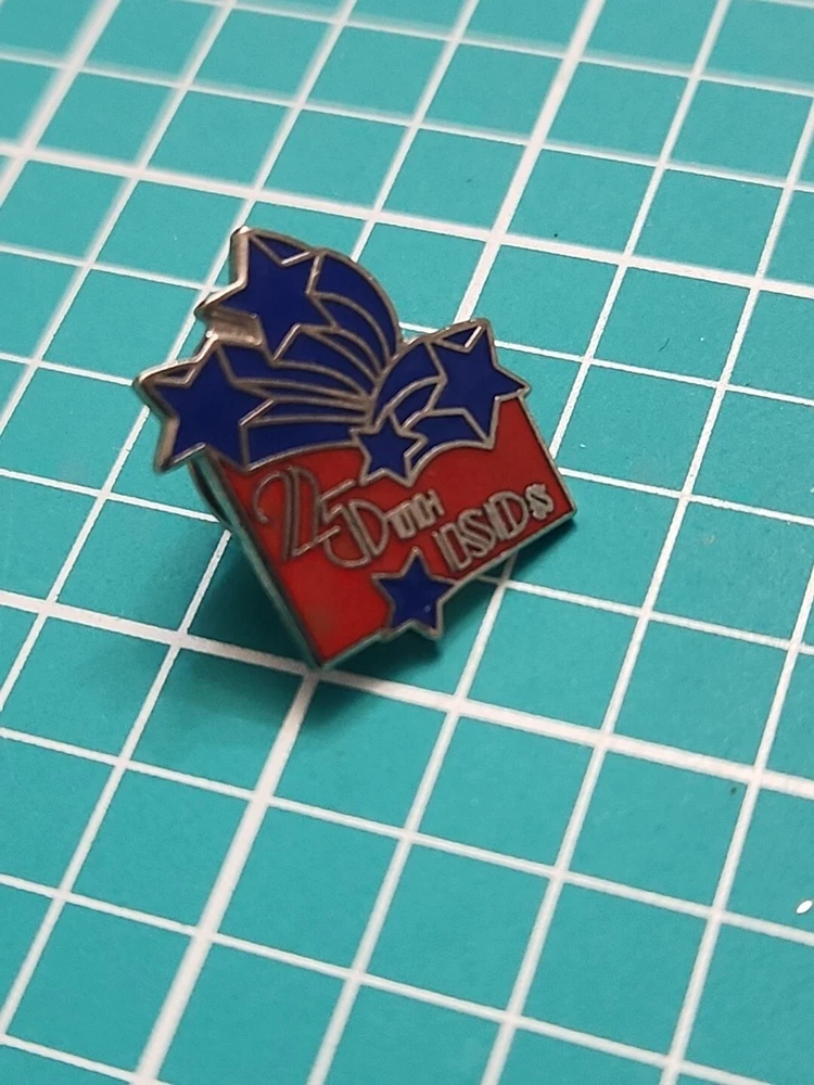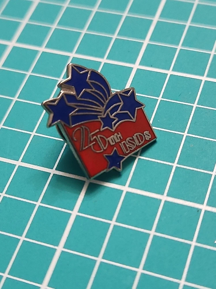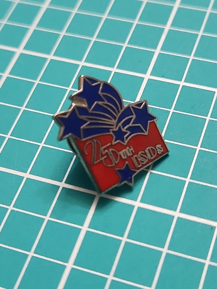 This vintage lapel pin is a must-have for any collector of pinbacks. With its silver tone and intricate design, it's sure to catch your eye. The pin has been well-preserved and is in excellent shape, ready to be added to your collection. The pin is perfect for those who appreciate unique and rare items. It's a great addition to any collection of pinbacks, especially for those who are interested in vintage pieces. Don't miss out on the opportunity to own this 25th ISD Silver Tone Lapel Pin.