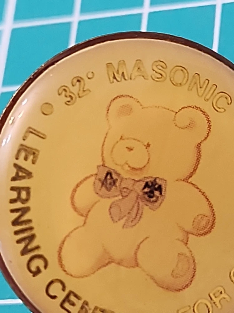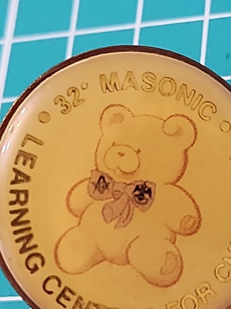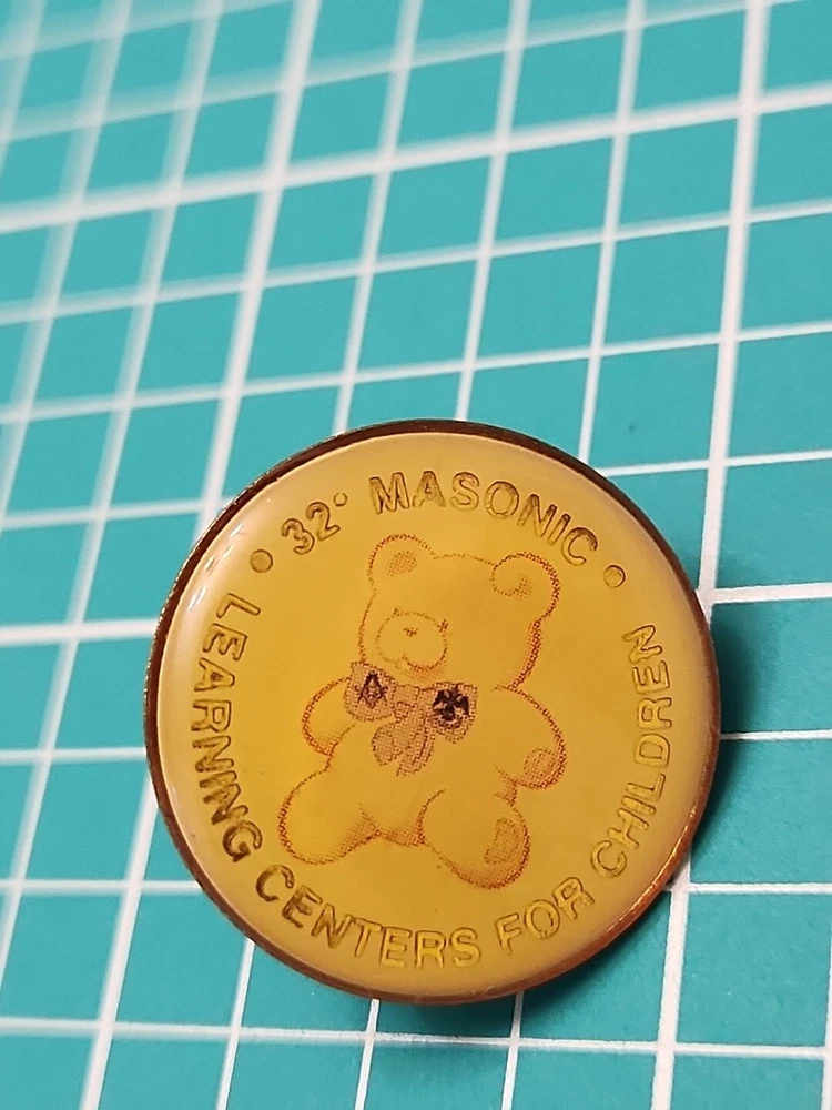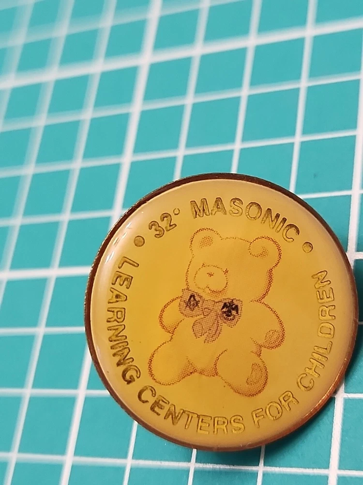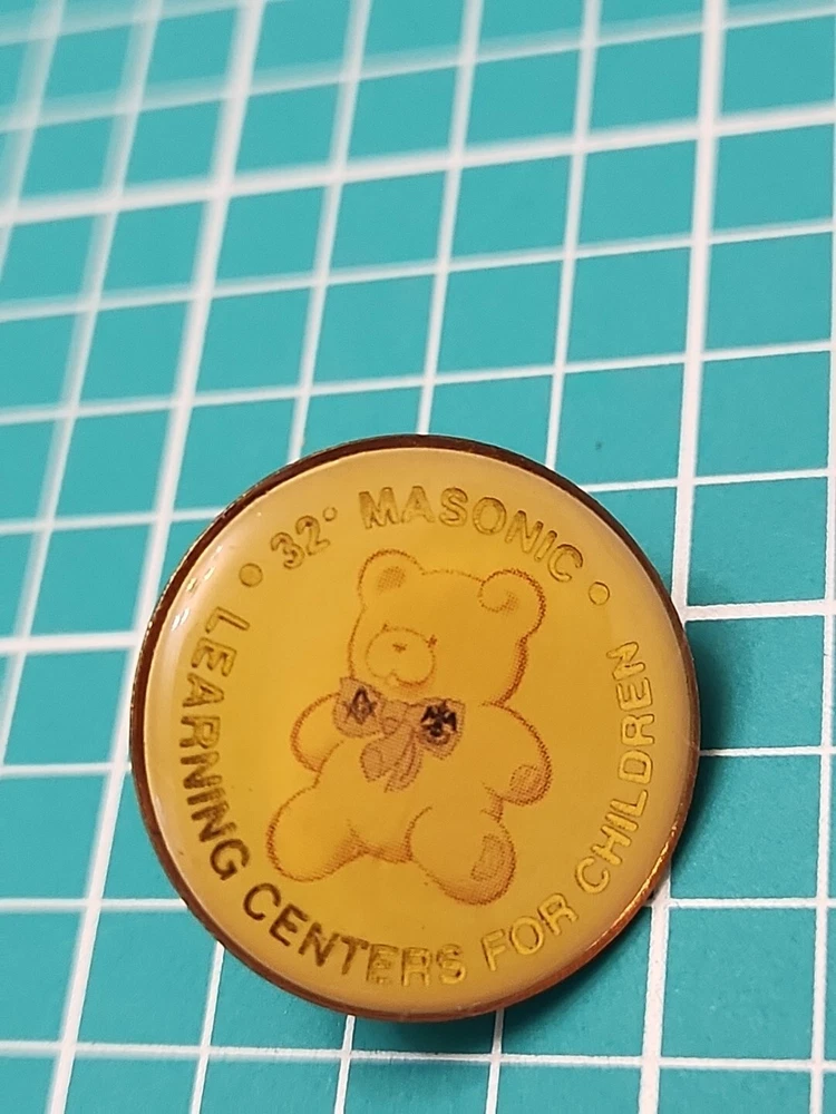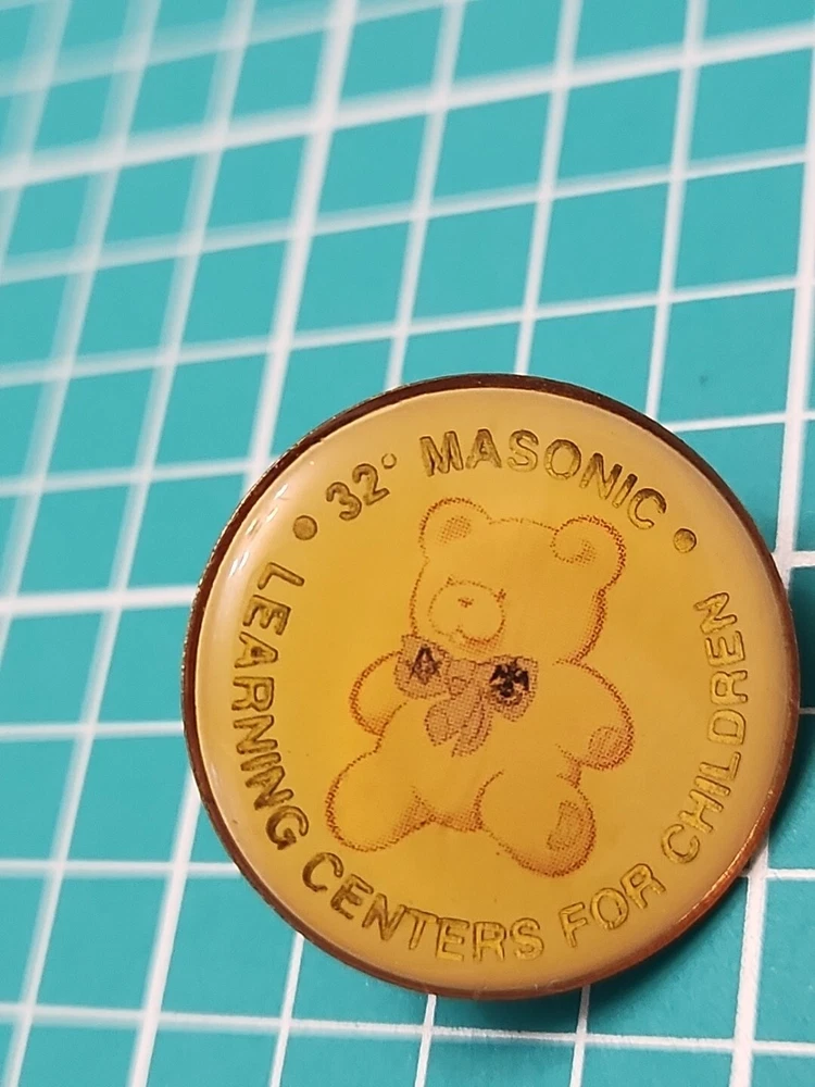 Show off your love for the Masonic Learning Centers for Children with this beautiful gold tone lapel pin. This vintage 32 degree Masonic pin is perfect for collectors and enthusiasts alike. It features a unique design that is sure to turn heads and start conversations. Whether you want to wear it on your lapel or add it to your collection, this pin is a must-have for any Masonic fan. Crafted with care, this pin is a true work of art. It has been well-maintained over the years and is in excellent condition. The pin is made from high-quality materials and is sure to last for years to come. So why wait? Add this beautiful Masonic lapel pin to your collection today and show off your love for the Masonic Learning Centers for Children.
