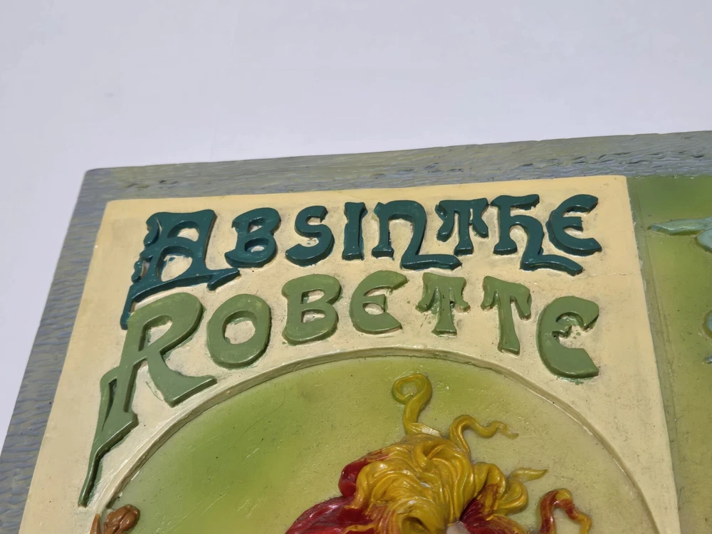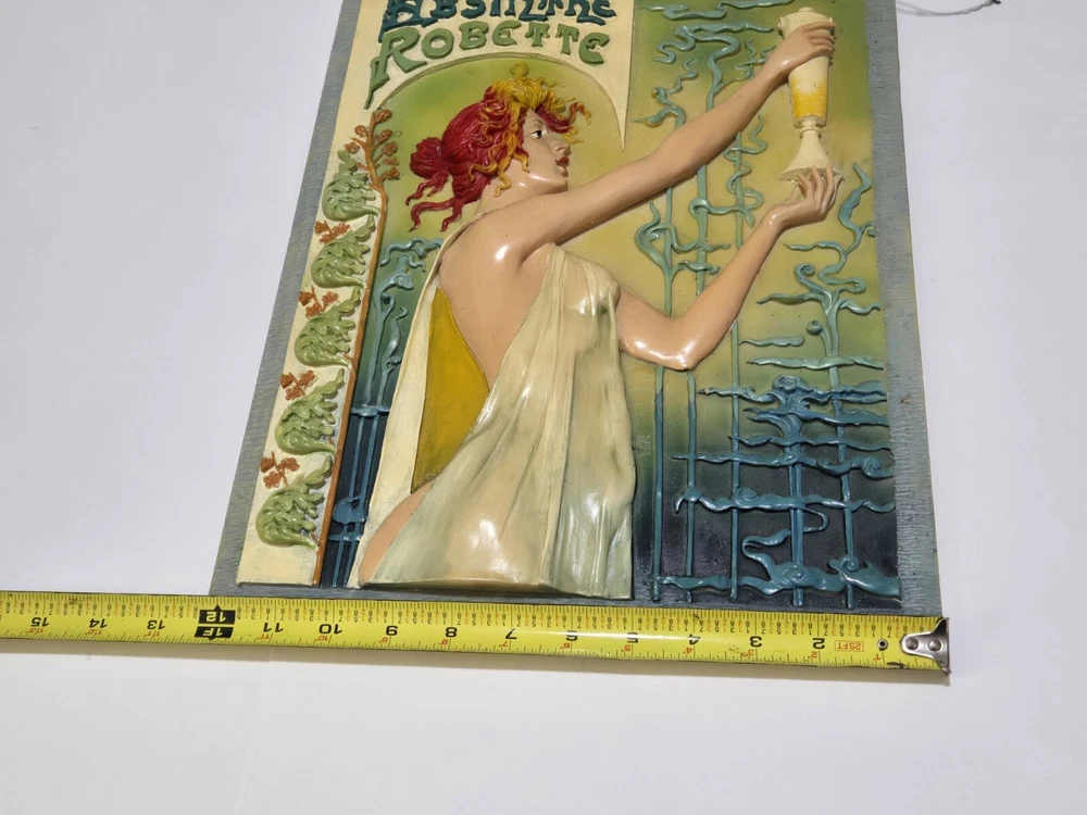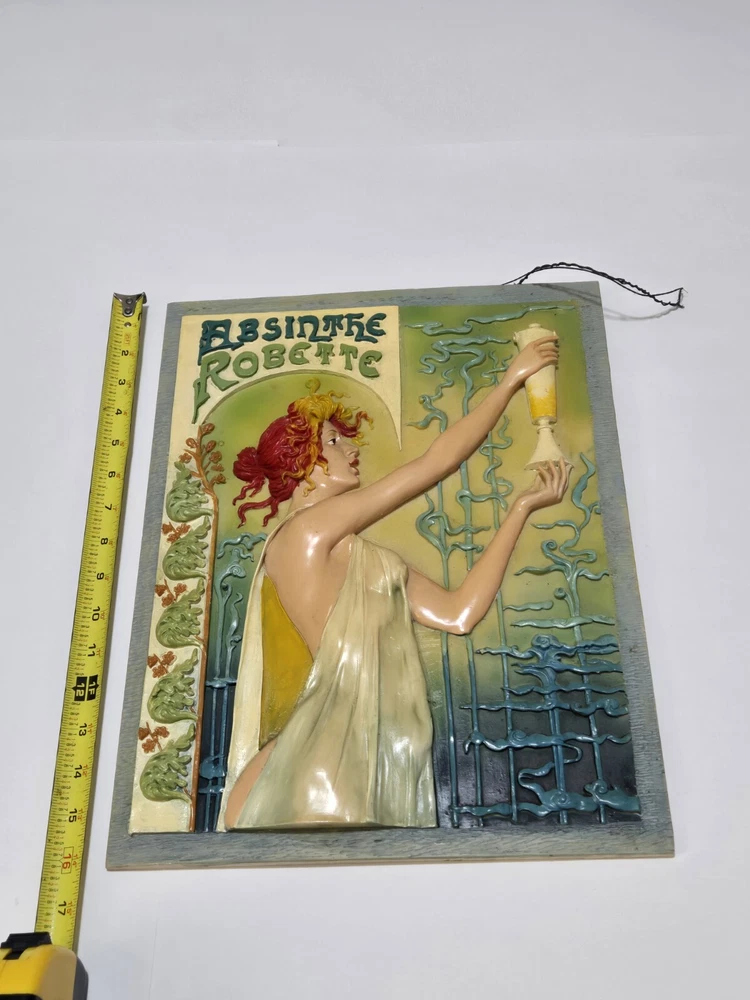 Vintage Absinthe Robette 1896 Art Nouveau Poster Tribute 3D Wall Plaque Tile Rare! Your 1 Stop Vintage & Newer Gift Shop, Something For Anyone On Your Gift List Guaranteed! Sculptures, Statues, Ceramics, Art (Originals + Prints) & Collectibles Galore! Selling Multiple Private Collections, Always Willing To Cut Deals & Combine Orders! Condition Is Preowned. Shipped USPS, UPS or FedEx. Fast & Free! White Whale đ Alert! Up For Sale Is A: Vintage Absinthe Robette 1896 Art Nouveau Poster Tribute 3D Wall Plaque Tile Rare! Incredible Attention To Details. Rich Vibrant Colors. Appears To Be A Painted Tile With Resin Accents. Note: The Top Metal Cable Is Missing On One Side, Will Need Rewiring Before Hanging. Measures Approximately: 16" Tall x 12.25" Wide Weight: 5lb 11oz From A Large South Florida Estate Collection. I Couldn't Find Another Anywhere. Exact Age & Region or Origin Are Unknown. Will Be Insured & Require Signature Confirmation Prior To Delivery. Would Make A Great Addition To Any Bar or Restaurant. Set Your Collection Apart From The Rest. About The Original: In Privat-Livemontâs 1896 poster for Absinthe Robette, absinthe is depicted as a health-giving elixir, brandished by a beautiful, barely clad woman who resembles a figure from mythology. To maximize sales, distillers were keen to promote absinthe as a sociable drink that men and women could enjoy together. Absinthe was enjoyed by all social classes from the working class to the wealthy bourgeoisie. The woman: A beautiful, barely clad woman with red hair, copper-tinged curls, and a face framed by a circle that symbolizes the moon, holding a glass of absinthe. She may represent a muse or seem to be checking the drink's color and texture. The absinthe: The drink is green, shading from chartreuse to olive, which hints at absinthe's hallucinogenic properties and is also known as "The Green Fairy". The background: A convoluted pattern that's half vegetable, half vapor, evokes the drink's intoxicating effect. Please See All Photos For Exact Specifics. An Incredible Collectors Piece @ A More Incredible Price Point, Fast & Free Shipping Too! 100% Positive 5 Star Feedback. Shipped USPS, UPS or FedEx. Fast & Free! Note: The Faster Safer Option Will Be Selected For Shipping Based On Buyers Location. Feel Free To Check Out My Store, Vintage & Newer Collectibles Galore! Thank You For Your Time, Have A Wonderful Day & Stay Safe Too. Sincerely, CJ.