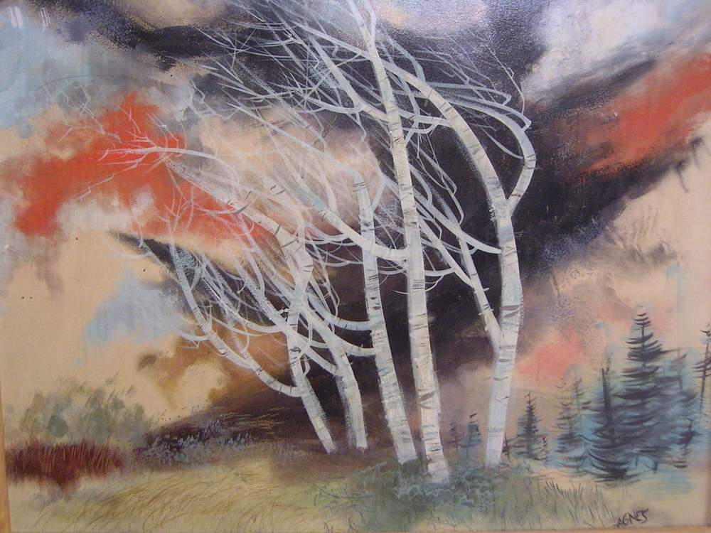Vtg Abstract Expressionist Landscape Forest Trees Painting Surreal Signed Oil on board, framed Signed Agnes, lower right Approximate Measurements: 21 3/4" x 17 1/2" frame 19" x 15" sight Condition - Deep scratches to upper left corner of painting. Scratches & wear to frame. See photos. Look at all photos & please contact us with any questions Shipping fee includes expert packing & insurance **Signature confirmation may be required for shipping** Customs/Import duties, fees, taxes and charges (sometimes charged upon delivery or when you pick up) are the buyers responsibility. Track Page Views With Auctiva's Counter