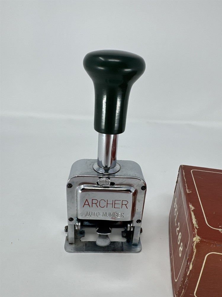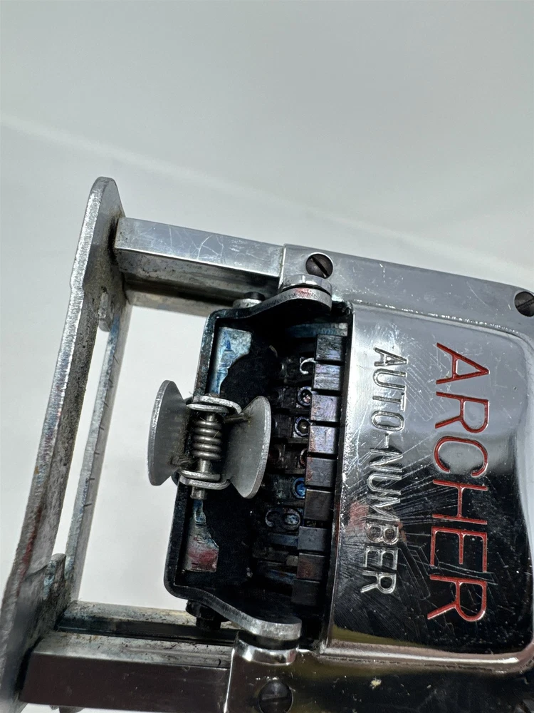 Vtg Archer Automatic Numbering Stamp Machine Metal Chrome Office Deco Untested Item is in vintage pre-owned condition and may show some signs of use and wear/tear. Please check out the pictures and let me know if you have any questions. Thank you for checking out my shop! :)