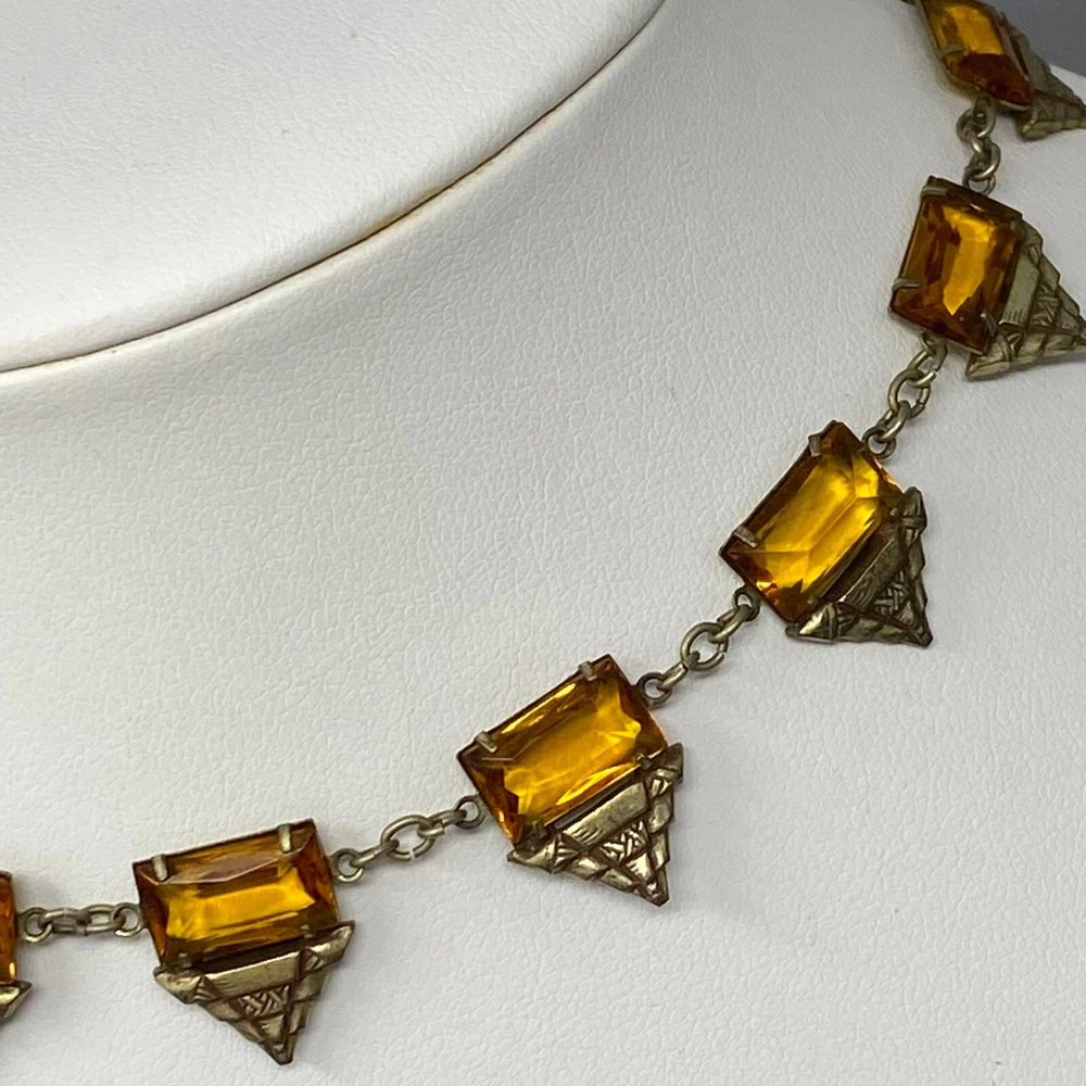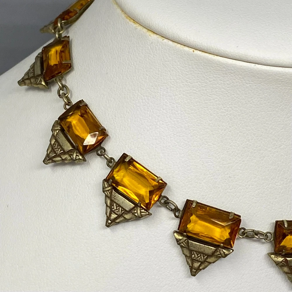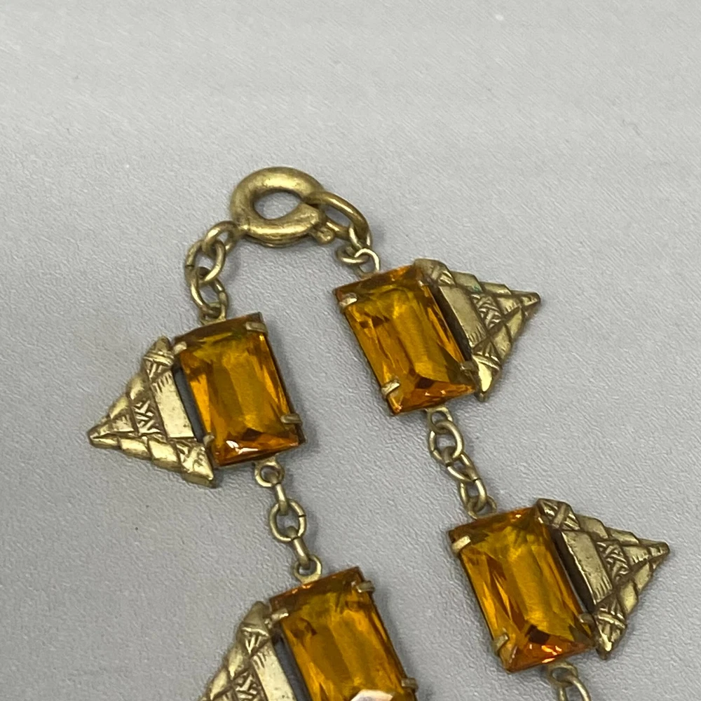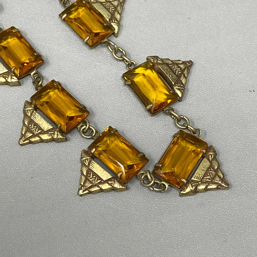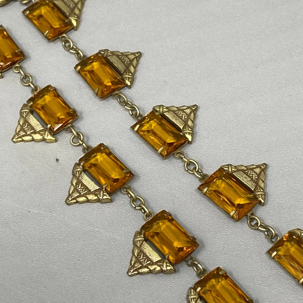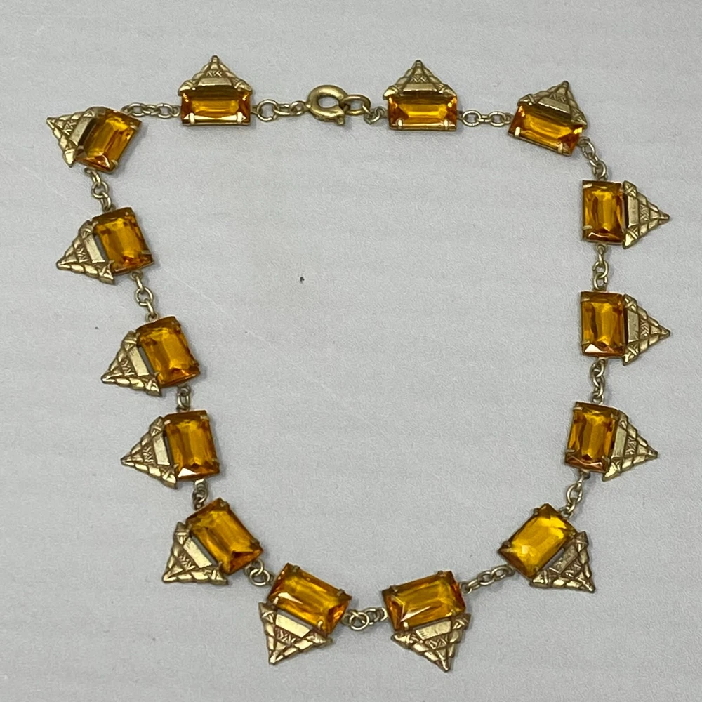 Vtg Art Deco Necklace Yellow Czech Glass Emerald Cut Rhinestones Fringe Choker Sizes are approximate and may vary slightly Items may be tested with the Presidium Gem Tester and/or acid tested to ensure accuracy of stones & precious metals Most jewelry ships in Jewelry Gift Box (if it fits) for easy gift giving. We make a trip to the Post Office DAILY (M-Sat) so you can expect QUICK DELIVERY BUY MORE SAVE MORE COMBINED SHIPPING: We offer combined shipping on multiple jewelry items in the same order. If shipping is not adjusted at checkout, please contact us. We list new items daily Please follow our store and check back often