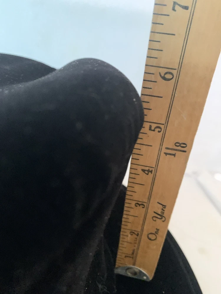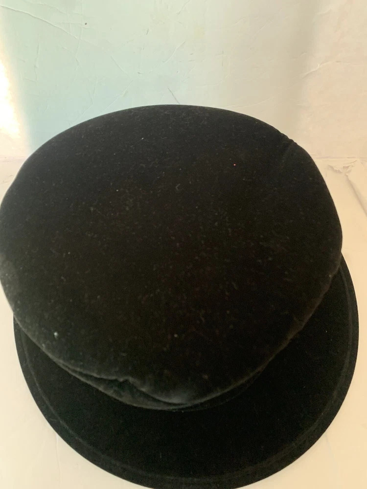 This listing is for a black velvet top hat with a brim. The hat is 5.5 inches in height. The hat is perfect for a costume or to be used as a novelty. The hat reminds me of a Victorian hat One size hat which will fit all.