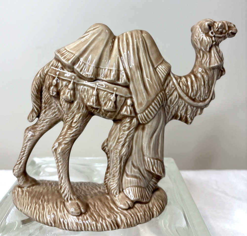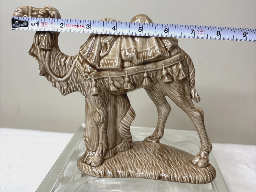 This vintage ceramic Holland Mold Camel Nativity Figurine is a beautifully hand-painted piece that stands at 7 inches tall and 8 inches wide, making it a large and detailed addition to any Christmas Nativity scene collection. Manufactured in 1970 in the United States, this original figurine features a Light brown camel character crafted from double-fired ceramic. With its vintage style and handmade quality, this unique item is a perfect replacement or unique accent for your holiday decor. This is pre-owned; please look at all pics as they are part of description.