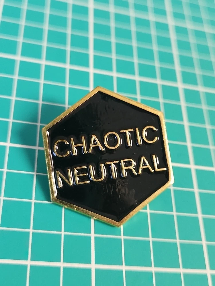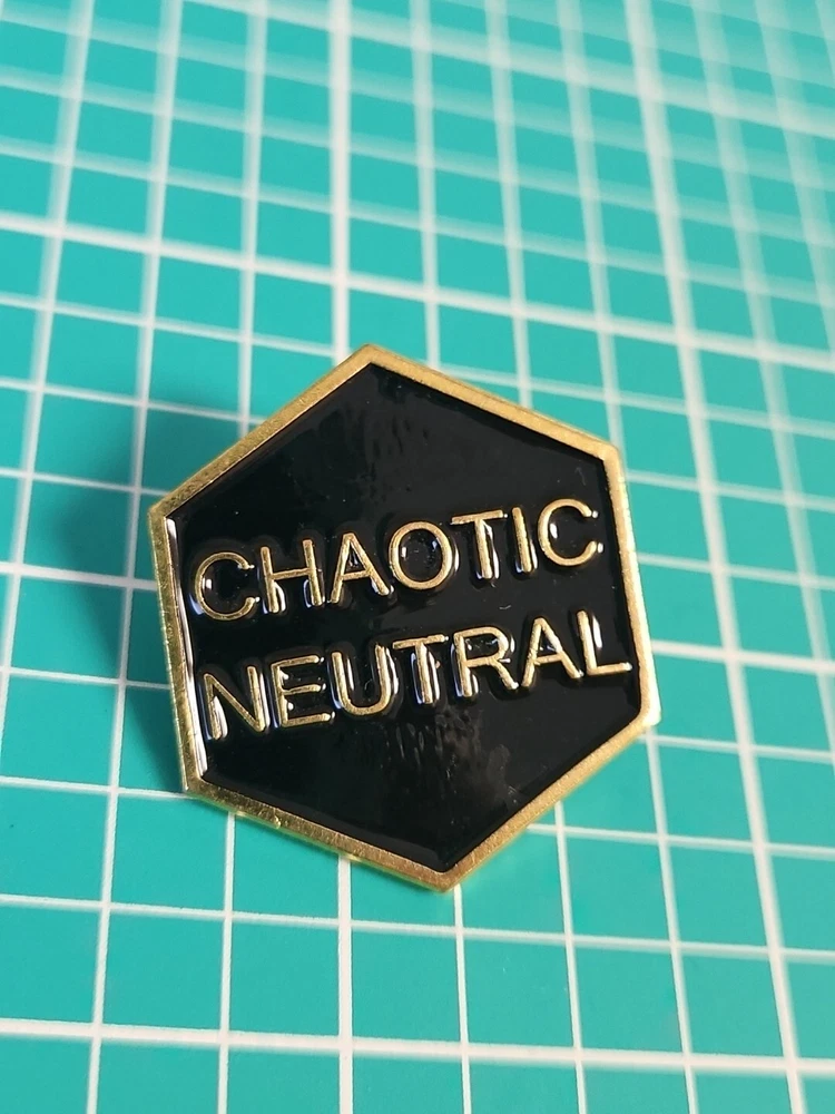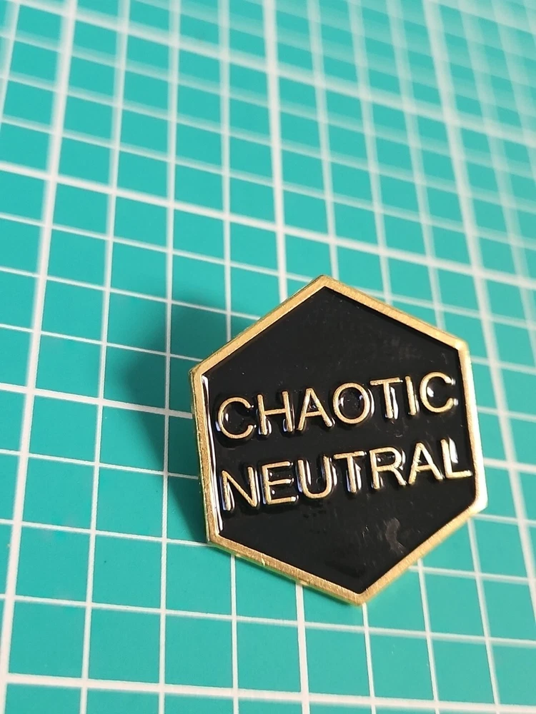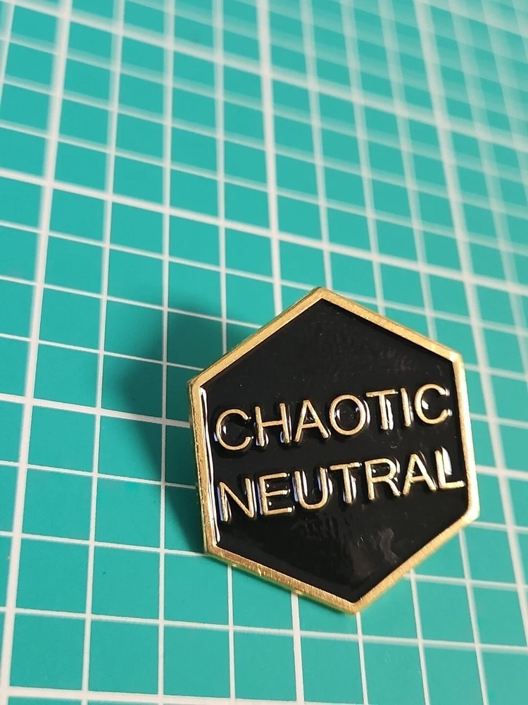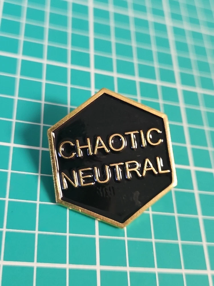 This vintage lapel pin is a unique addition to any collection. With a chaotic neutral design and gold tone, it is sure to catch the eye of any pinback enthusiast. Perfect for adding a touch of personality to any outfit, this pin is a must-have for collectors and fashion enthusiasts alike.