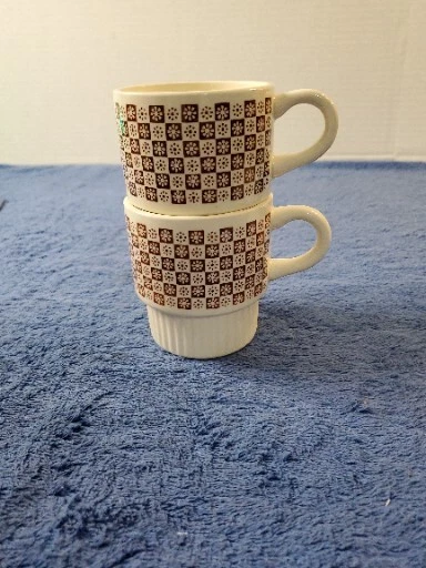 This vintage set of two coffee cups is a charming addition to any collection. The cups feature a daisy pattern on USA pottery, and are stackable for easy storage. With a 1960s time period manufacture, these cups are sure to bring a retro vibe to your kitchen or dining room. The multicolor cups are suitable for all occasions and can hold hot or cold beverage types. They are original pieces and have an excellent condition. WILL SHIP IN A STURDY BOX. WE WILL COMBINE SHIPPING ON MULTIPLE ITEMS IF POSSIBLE. PLEASE CHECK OUT OUR OTHER ITEMS. THANKS FOR LOOKING. We ship 6 days a week. Most shipping is done with 24 business hour. We strive for excellent customer service.