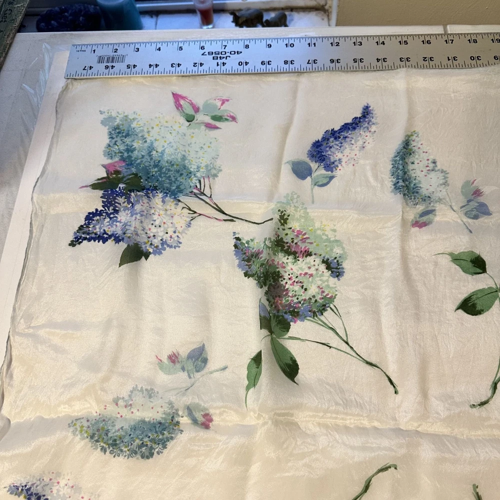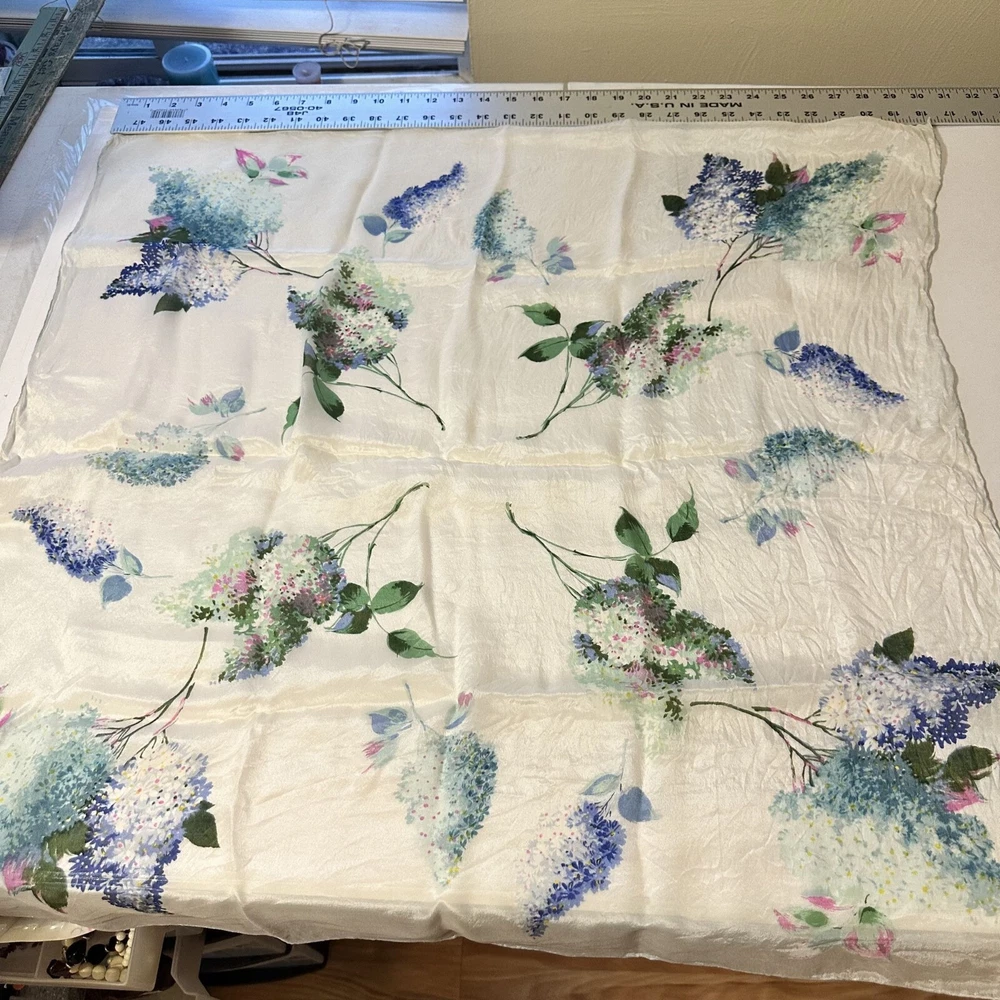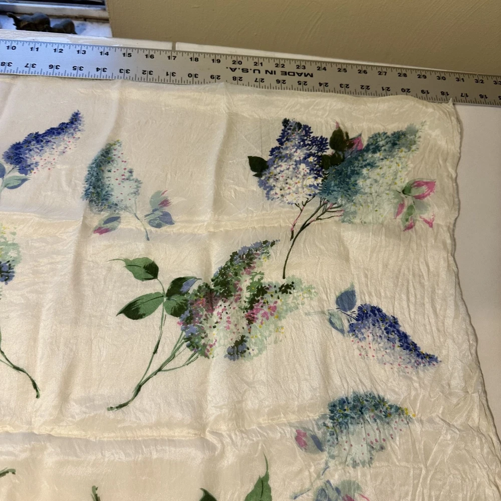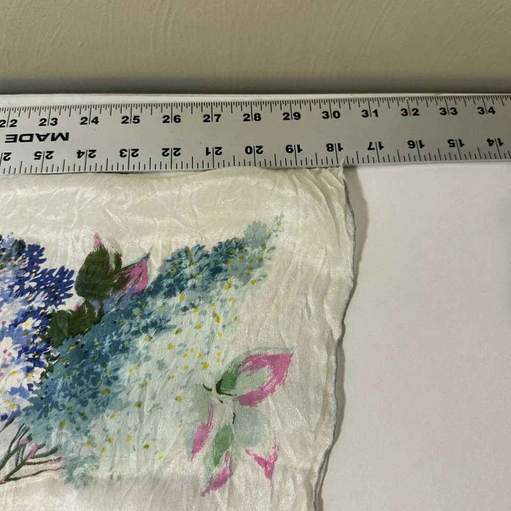 Vtg Cravenette Womens Silk Floral Scarf 28 in sq White Wisteria Purple Japan