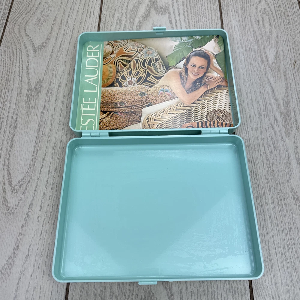 Vtg ESTEE LAUDER Mint Green Hard Plastic Snap Close Make-Up Storage Box.