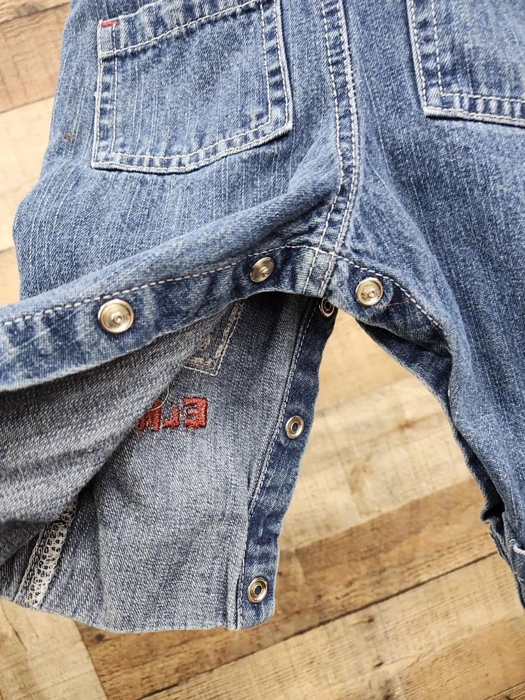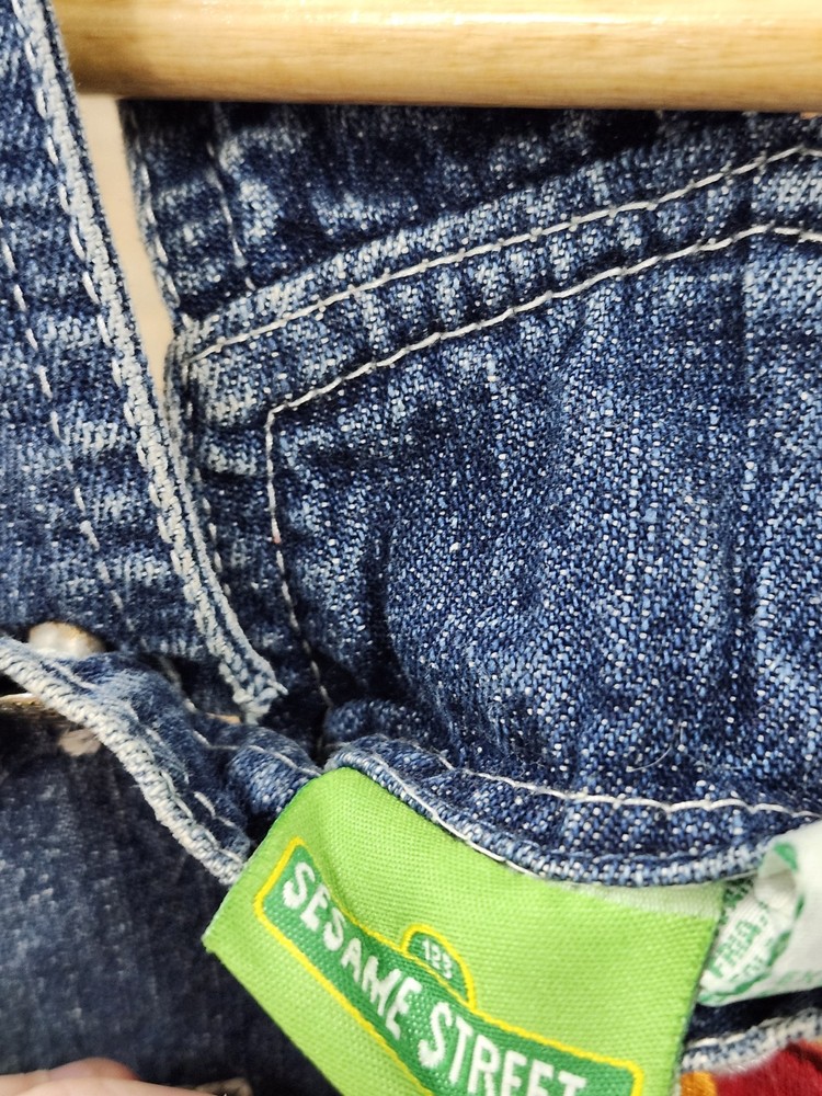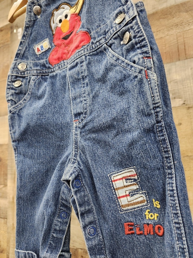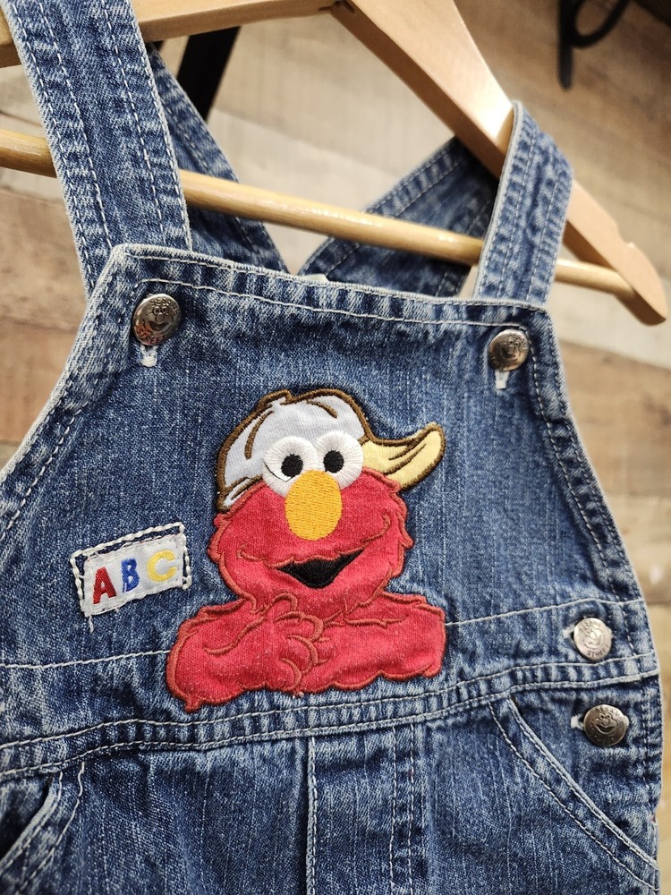 These vintage Elmo Sesame Street denim overalls in size 6-9 months are a charming addition to any little one's wardrobe. Featuring embroidered accents and a snap closure, these sleeveless overalls have a square neckline and adjustable straps for a comfortable fit. The blue denim fabric is machine washable and easy to care for, making it ideal for casual occasions year-round. With a fun cartoon character theme and 90s flair, these overalls are perfect for little ones who love Elmo and are just starting to walk or attend school. I ship Immediately 🚢 💖