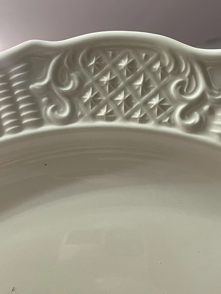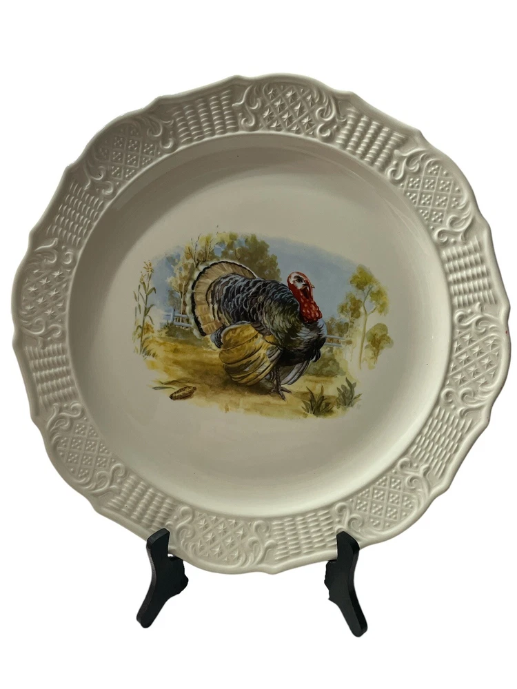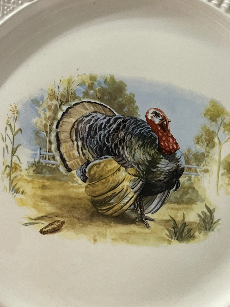 This vintage Canonsburg Pottery round turkey platter is the perfect addition to your Thanksgiving dinnerware collection. Made of durable stoneware material, this 15" platter features a classic white color and a beautiful design that will impress your guests. Crafted in the United States using traditional pottery techniques, this Turkey Platter is a timeless piece that will bring a touch of elegance to any table setting. Whether you're serving up a traditional Thanksgiving feast or just looking for a decorative centerpiece, this platter is sure to impress.
