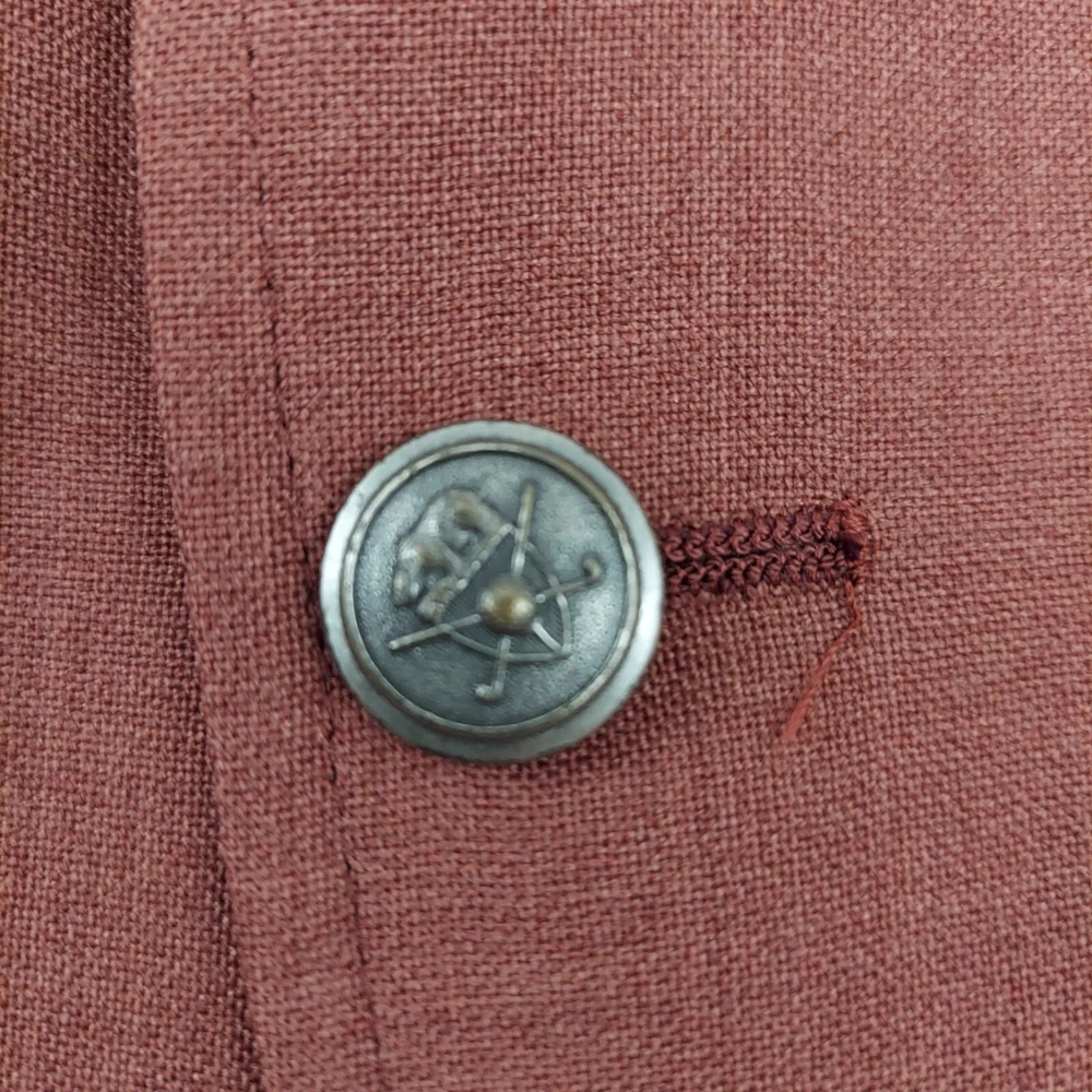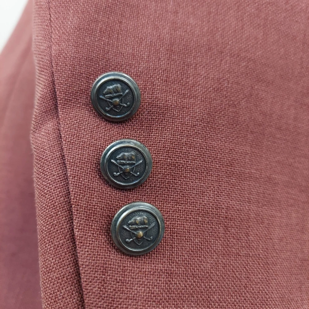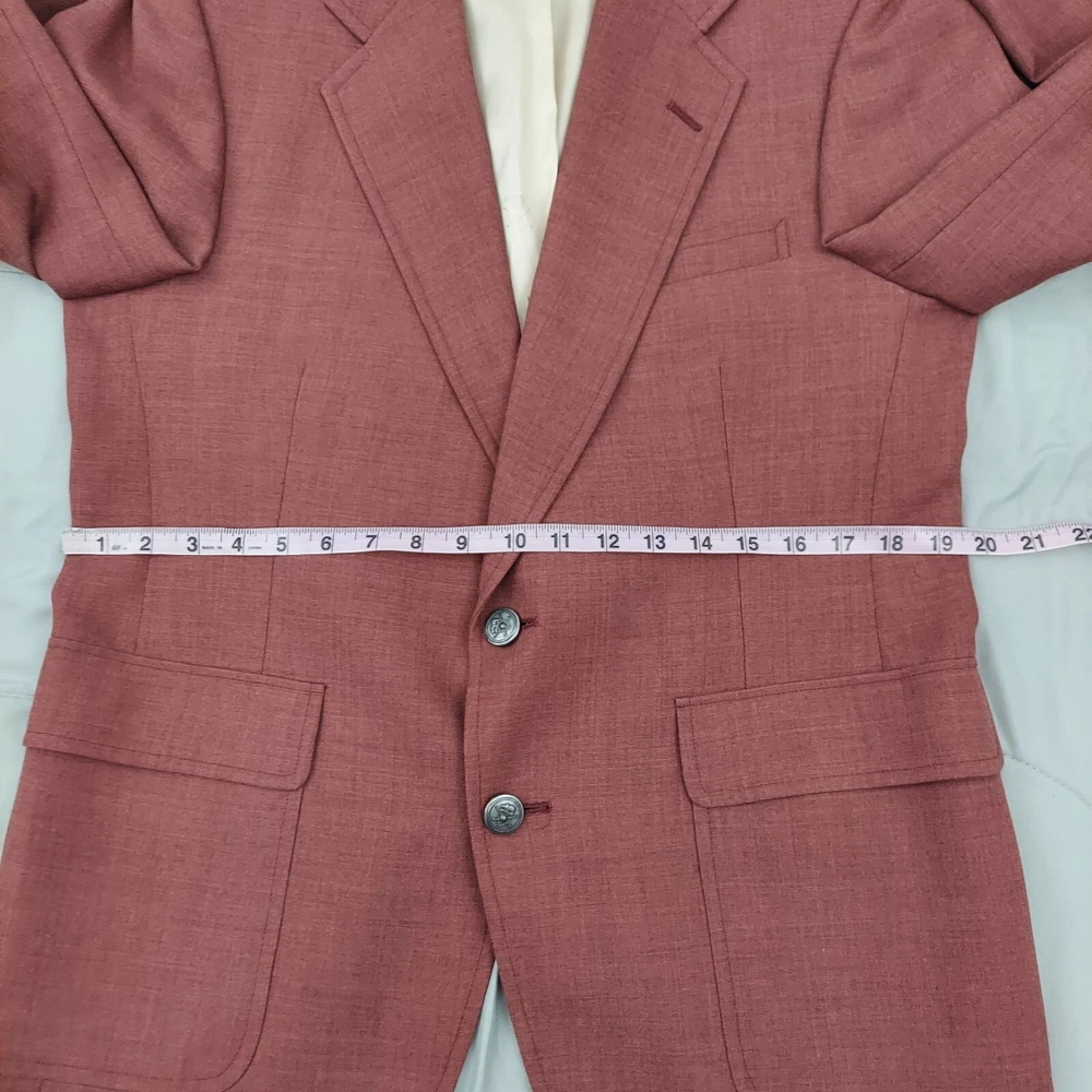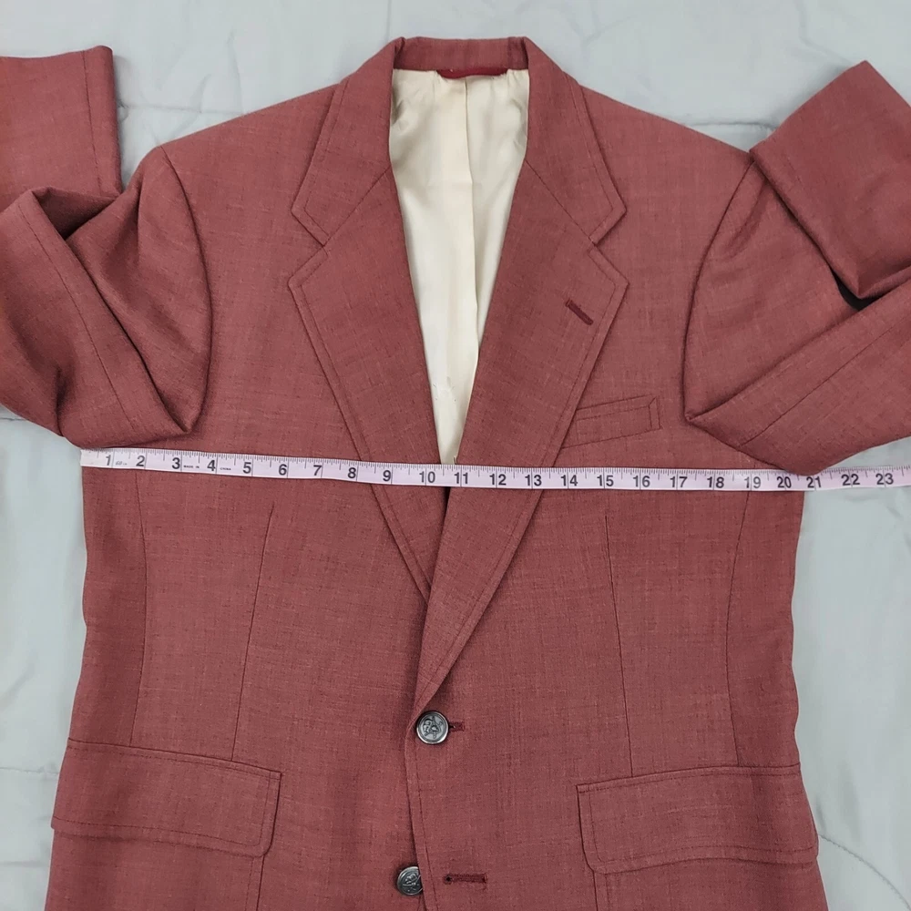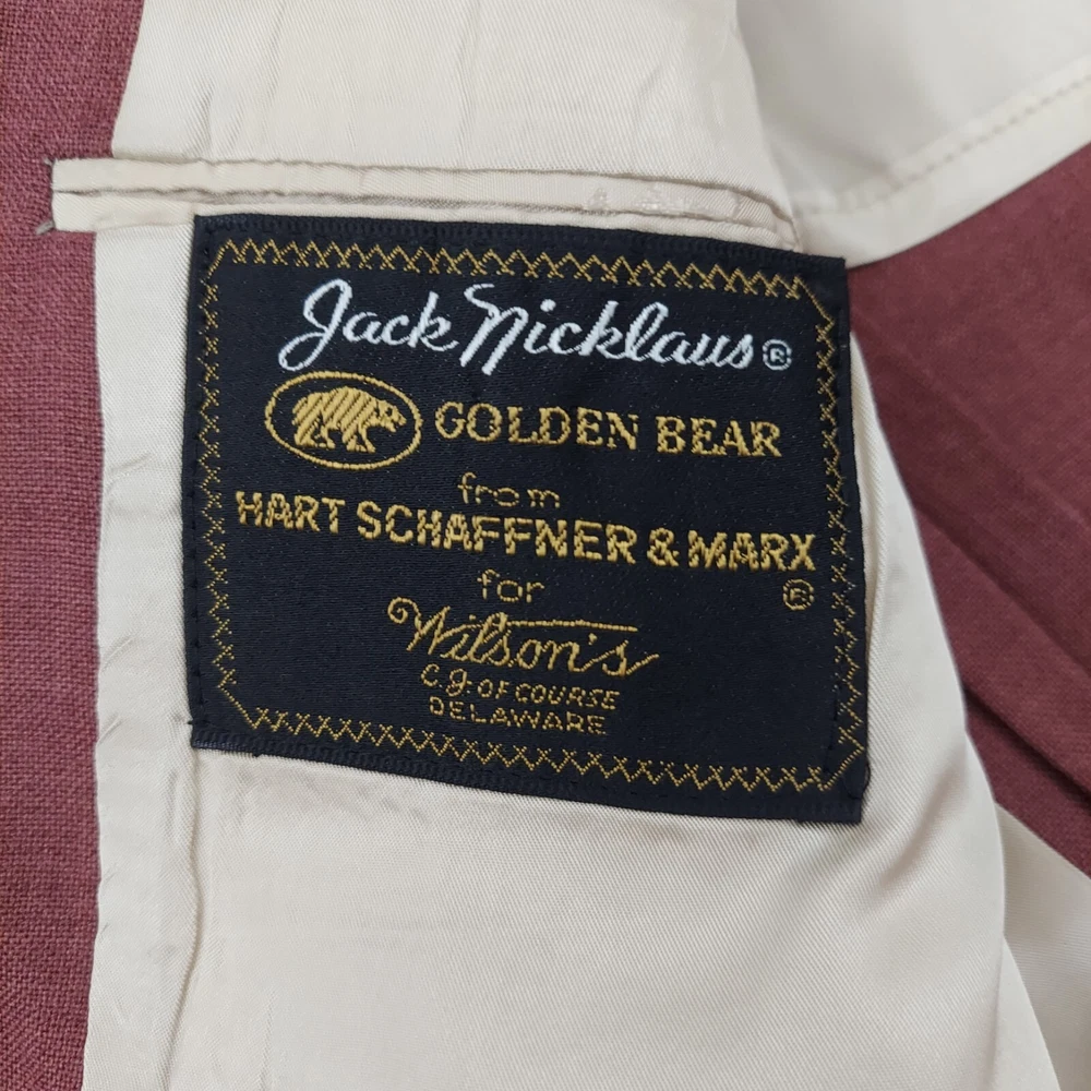 This vintage Hart Schaffner Marx sport coat featuring the iconic Jack Nicklaus Golden Bear label was made for Wilson’s CG (Country Club) of Course, Delaware . A classic piece of American tailoring, perfect for collectors, golf enthusiasts, or anyone who appreciates timeless menswear. The jacket is well-constructed with a rich brick red / chestnut tone , offering a polished yet distinctive vintage look suitable for dress or smart-casual wear. Condition: Excellent used vintage condition ✔ No visible holes, rips, stains, or defects Please see all photos for full condition details. Details: • Brand: Hart Schaffner Marx • Label: Jack Nicklaus Golden Bear • Made for: Wilson’s CG of Course, Delaware • Tag Size: Missing (see measurements below) • Color: Brick Red / Chestnut / Red • Care: Dry Clean Only Flat Measurements (Approximate): • Pit to Pit: 21" • Waist: 19.5" • Length: 29" • Sleeve: 23" 📏 Please compare measurements to a similar garment for best fit. Notes: Vintage sizing may differ from modern sizing. Colors may vary slightly due to lighting and screen settings. Questions are welcome—please ask prior to purchase. TMensBin