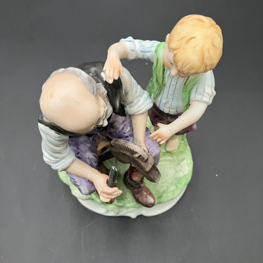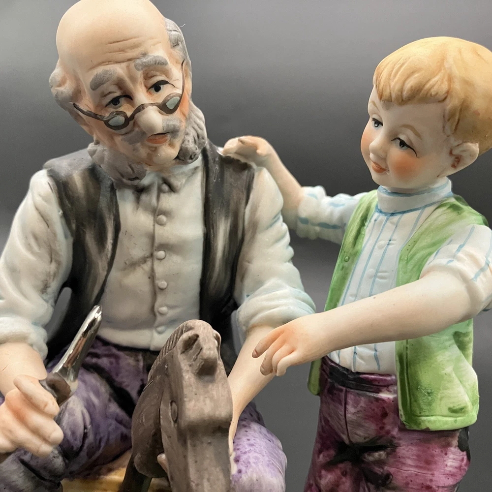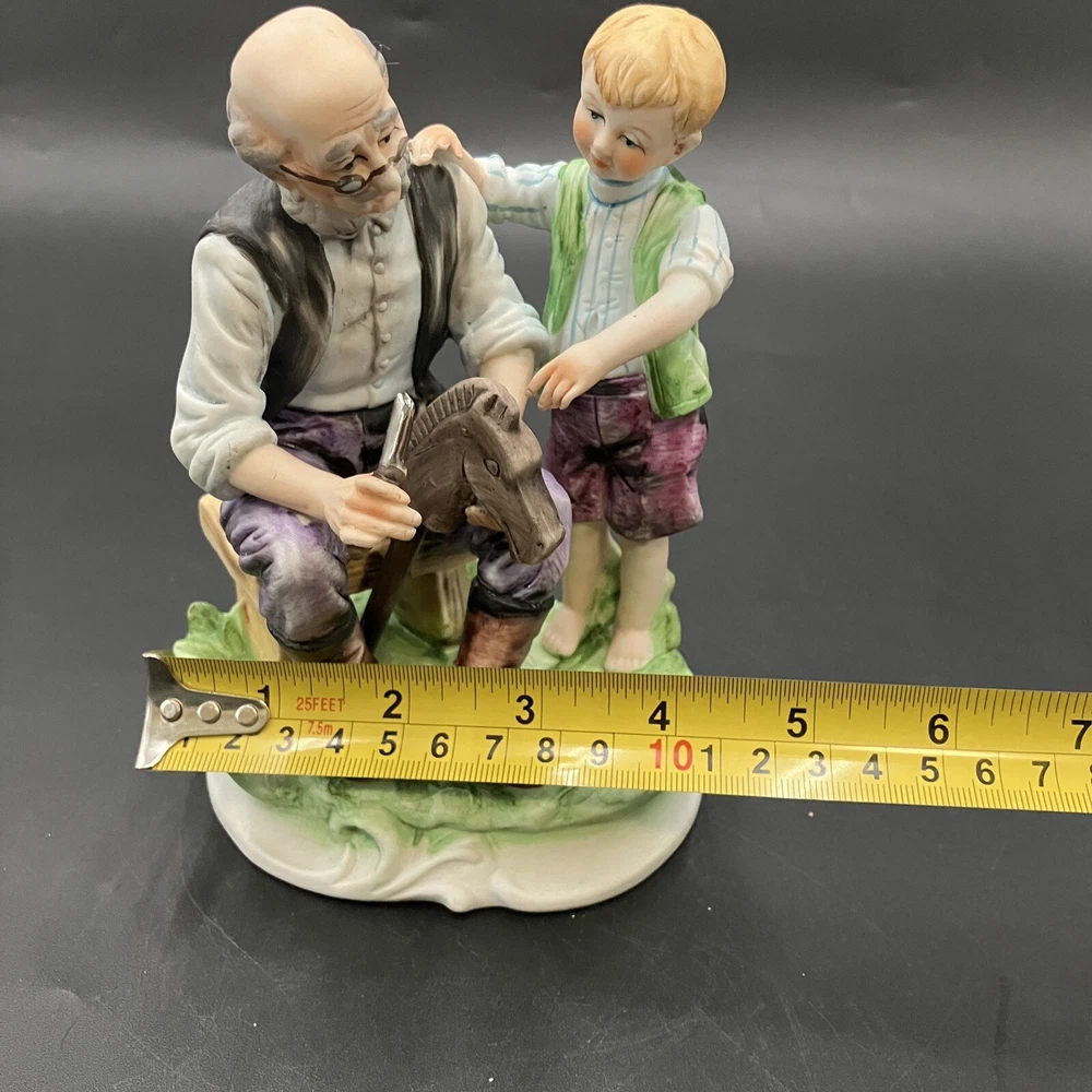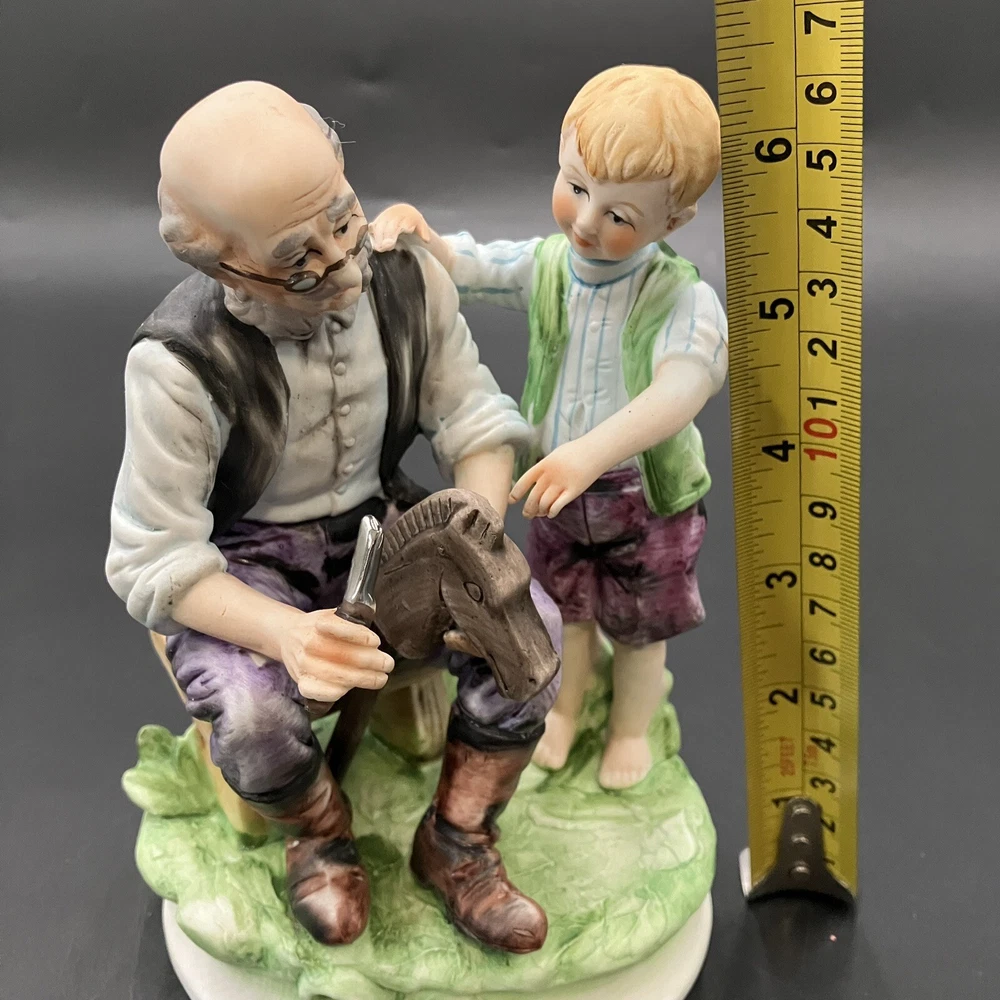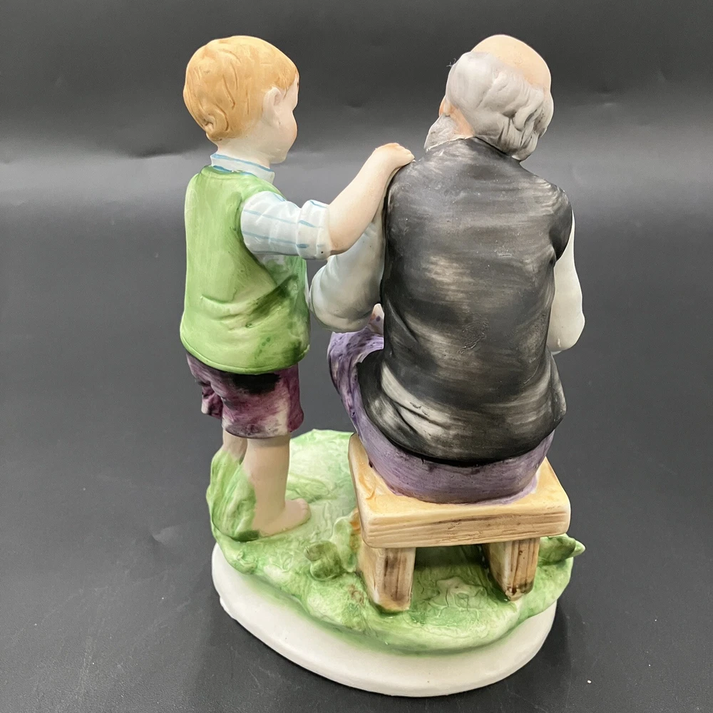 This vintage Lefton figurine depicts agrandpa, boy, and family theme. The hand-painted porcelain figurine stands at 6.5 inches tall and 4.5 inches wide. The figurine is made in Japan and has a matte finish. The figurine is perfect for all occasions and is a great addition to any collection. It features whittling and woodworking subjects, along with traditional style and multicolor. The item comes with one figurine, and the brand is Lefton. This collectible is ideal for those who enjoy family, people, and love themes. CONDITION: Pre-owned in excellent condition. No chips, cracks, damage. ****SHIPS NEXT BUSINESS DAY****