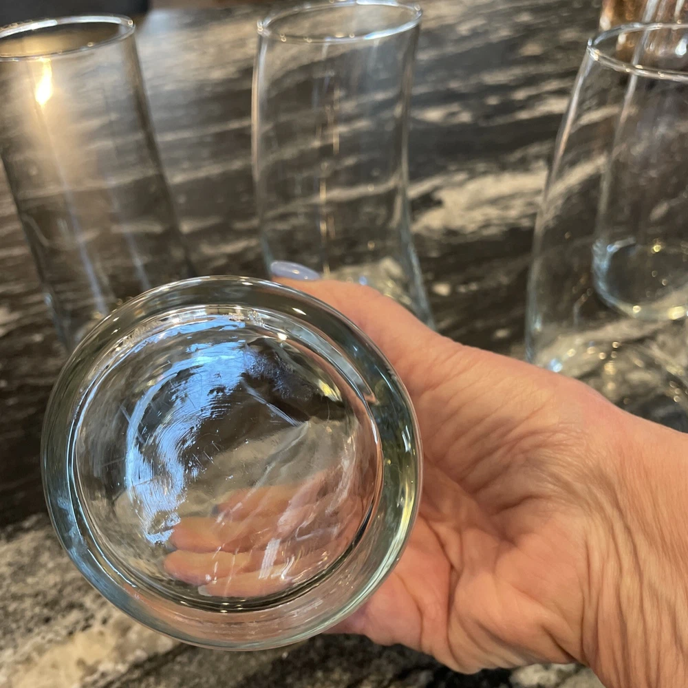 Beautiful, clean curved drinking glasses. You will definitely received compliments on this shape. Unusual