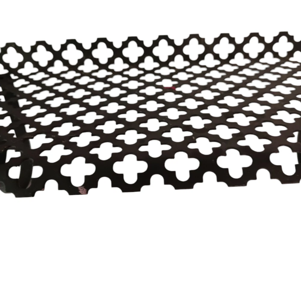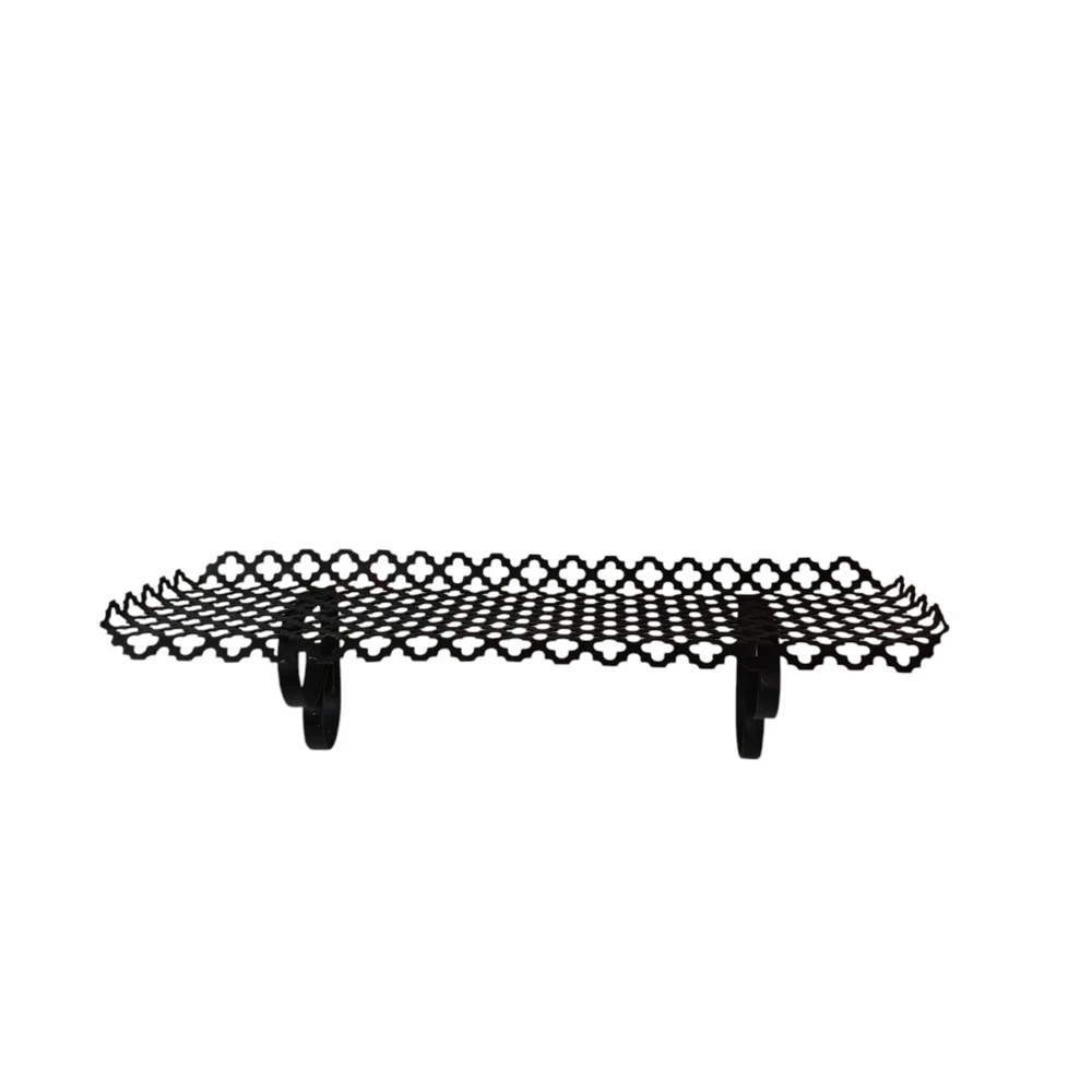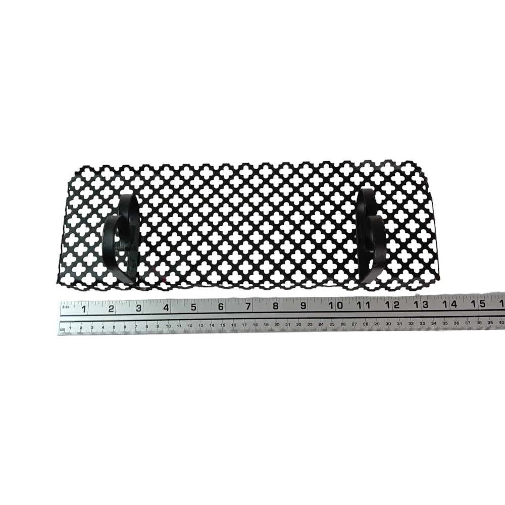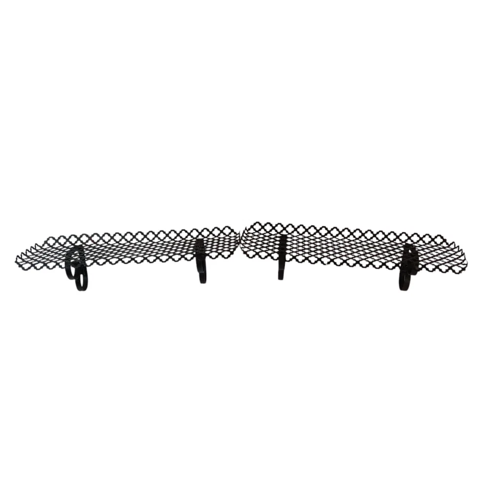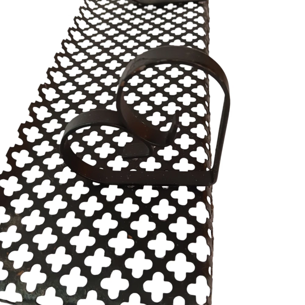 Vtg MCM Black Metal Mesh Wall Hanging Shelf 1950s 14" Heart Brackets Set Of Two Approximately 14" x 5" x 3.5" Good vintage condition. Minor wear.