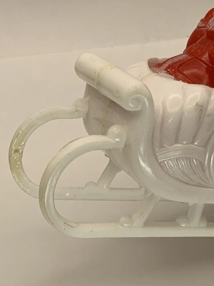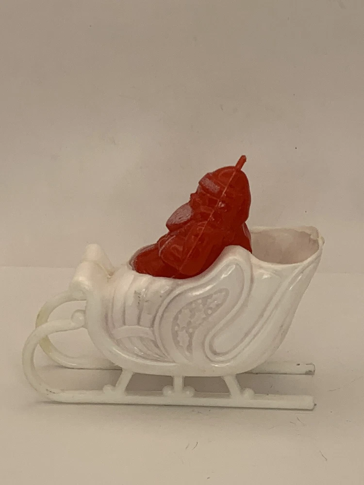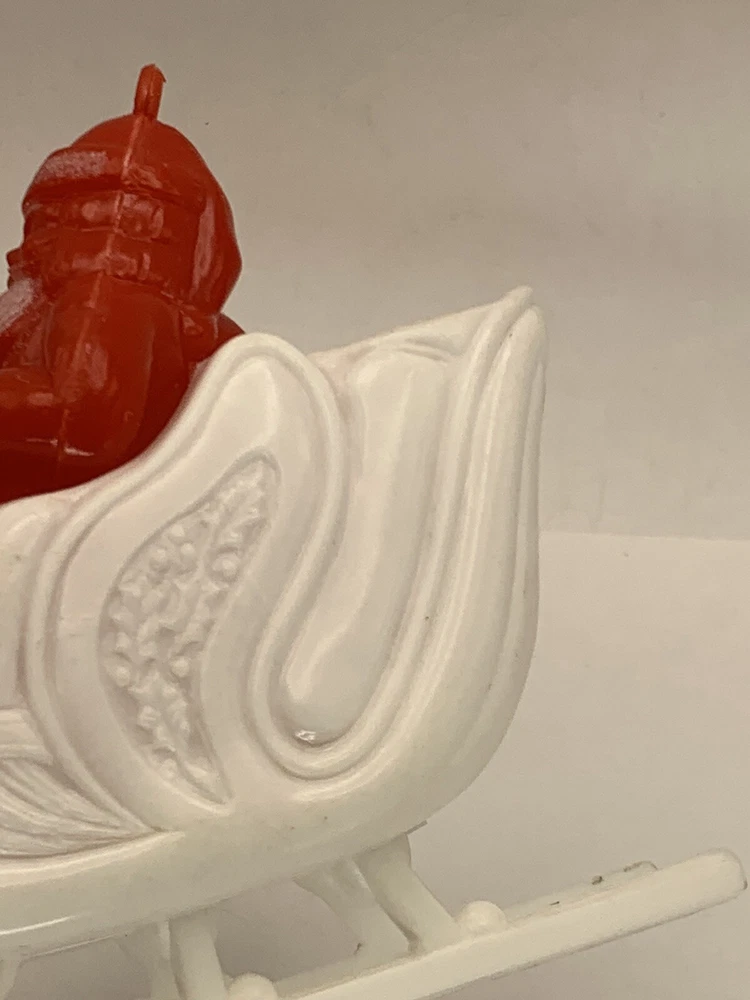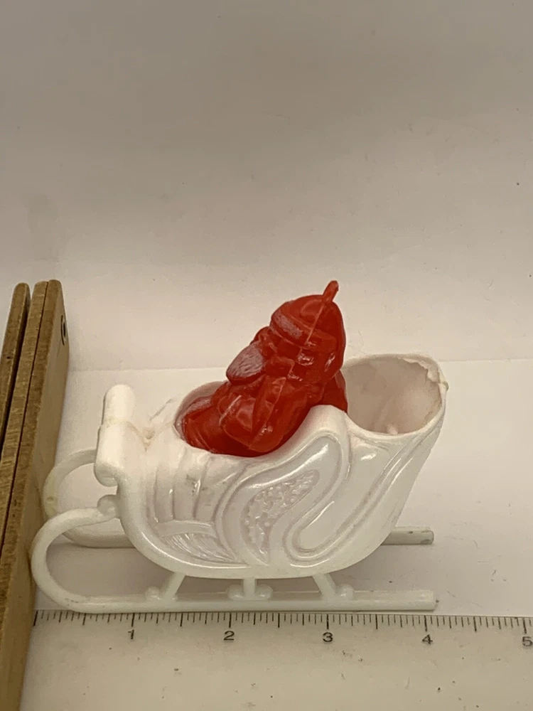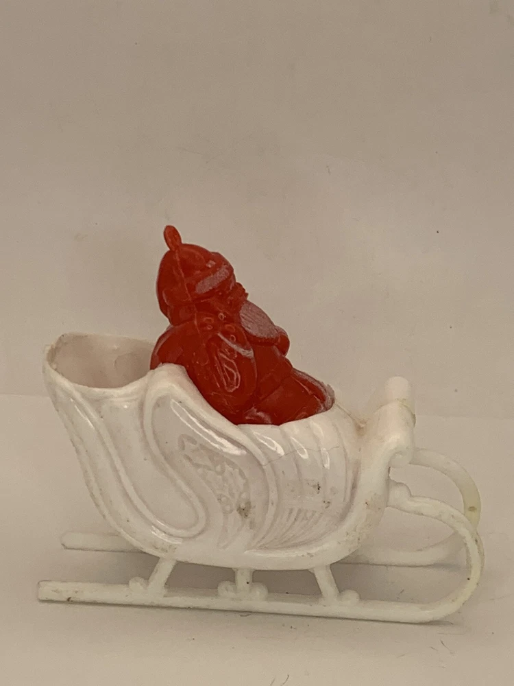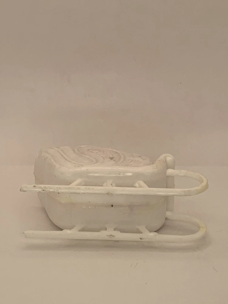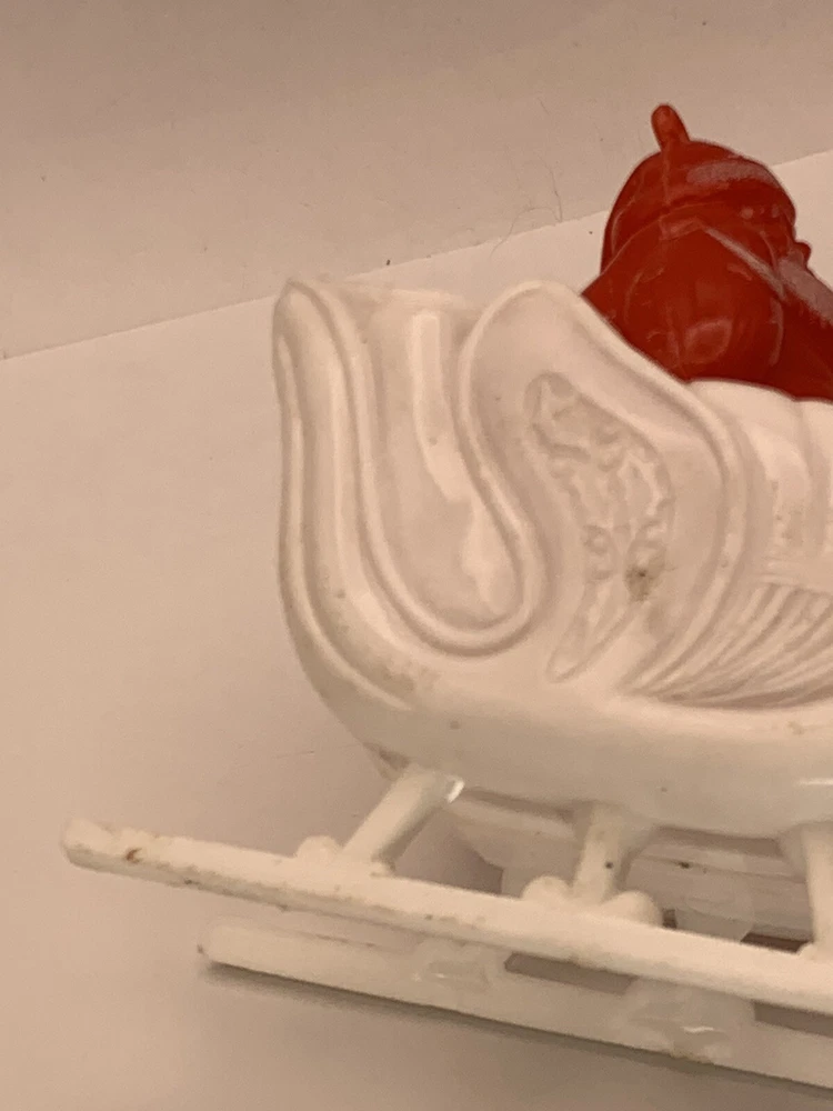 Cute! In good/very good vintage condition, has expected signs of wear(see photos, all sides pictured). Common imperfections in finish. Maybe a couple of tiny nicks or scratches. Some wear on finish. Only given a light cleaning. Has some misc. marks that may or may not come up in deeper cleaning. Glue has yellowed. Did not see any chips or cracks, might be a flea bite or two that was missed. Believe this is from Bradford as different sleigh design than most. Found no Maker's Marks. Might be small things that were missed so please see all photos. Contact if still questions. ****Pictures very much part of condition assessment, please be sure to view all photos.**** All items sold as-is. Packed with great care. For combined shipping price, please purchase and REQUEST invoice for combined shipping and wait before paying. International Shipping only through eBay's International Shipping, so no Combined Shipping and will have additional costs associated. THANKS FOR LOOKING!!