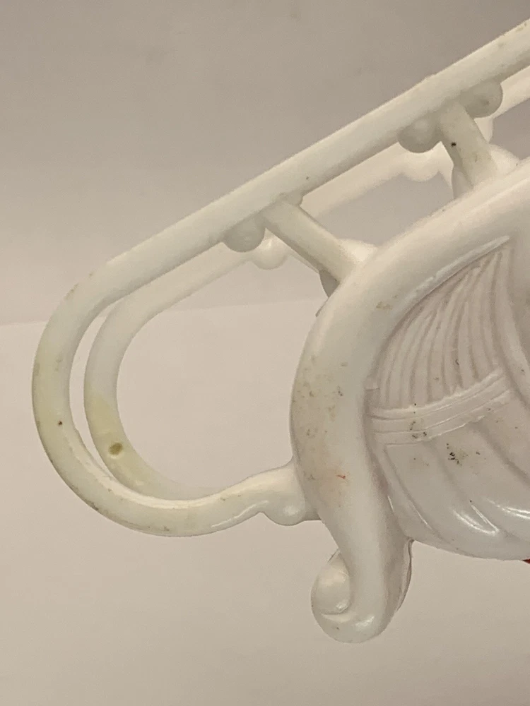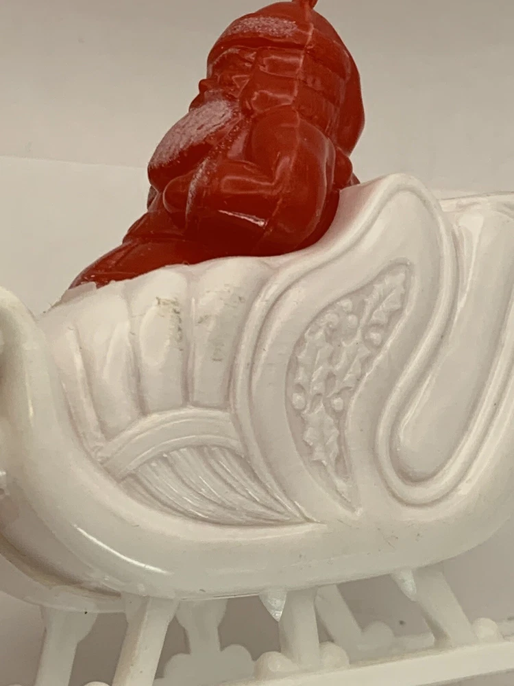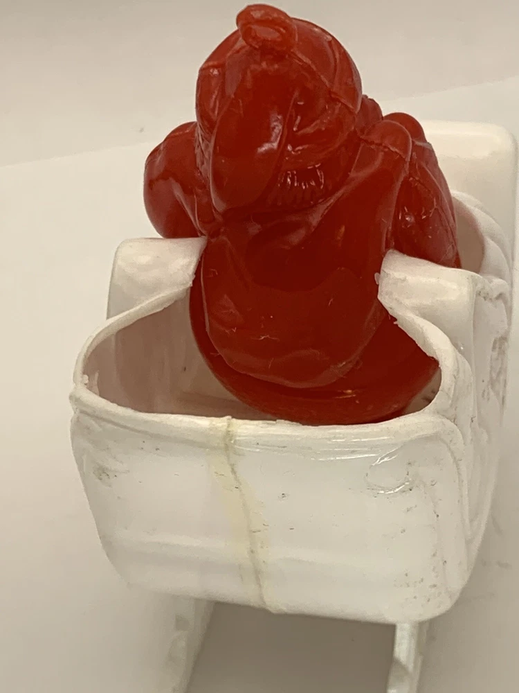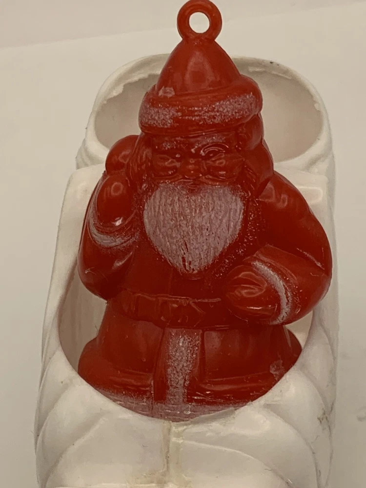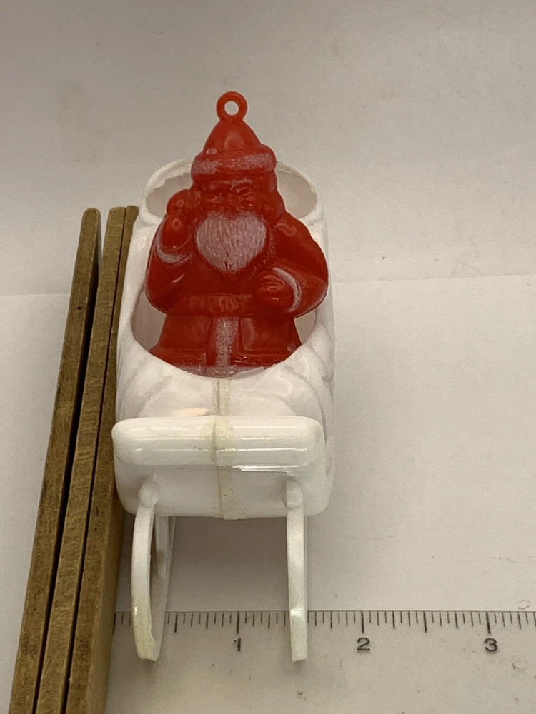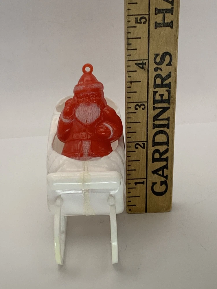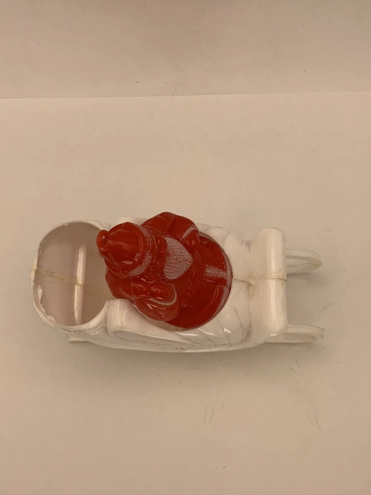 Cute! In good/very good vintage condition, has expected signs of wear(see photos, all sides pictured). Common imperfections in finish. Maybe a couple of tiny nicks or scratches. Some wear on finish. Only given a light cleaning. Has some misc. marks that may or may not come up in deeper cleaning. Glue has yellowed. Did not see any chips or cracks, might be a flea bite or two that was missed. Believe this is from Bradford as different sleigh design than most. Found no Maker's Marks. Might be small things that were missed so please see all photos. Contact if still questions. ****Pictures very much part of condition assessment, please be sure to view all photos.**** All items sold as-is. Packed with great care. For combined shipping price, please purchase and REQUEST invoice for combined shipping and wait before paying. International Shipping only through eBay's International Shipping, so no Combined Shipping and will have additional costs associated. THANKS FOR LOOKING!!