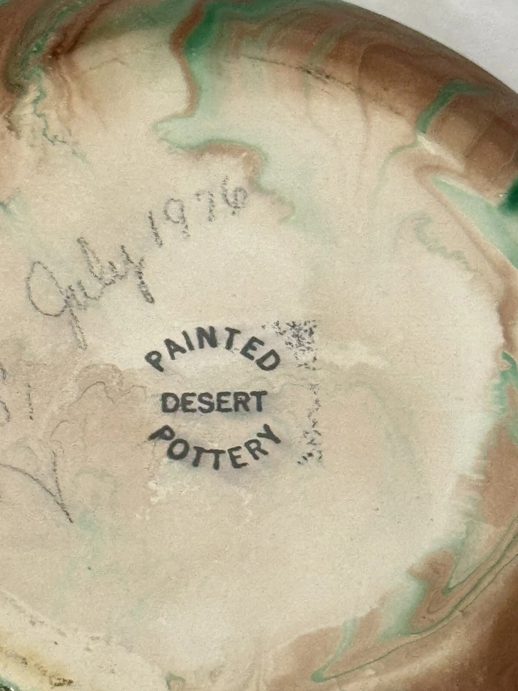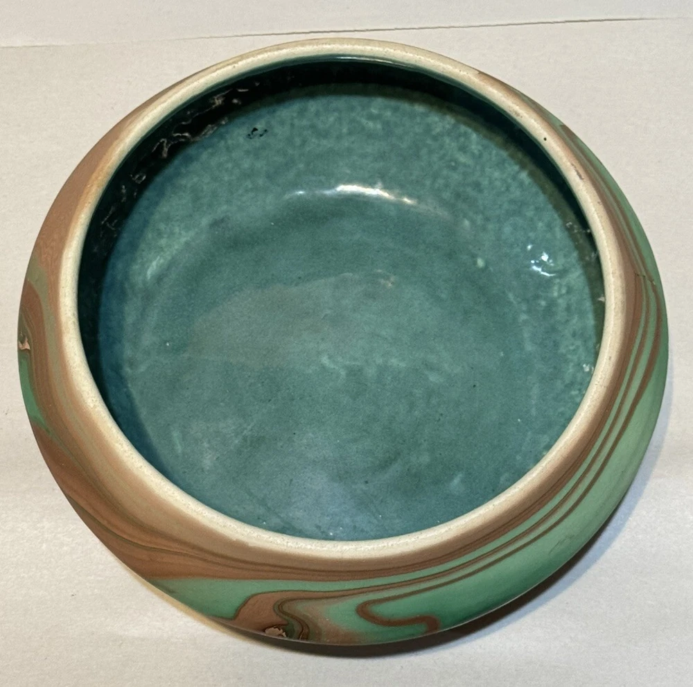 Time Period Manufactured:1960-1969gtin13:Does not applyOriginal/Reproduction:OriginalItem Height:2.5”Shape:RoundMaterial:ClayBrand:NemadjiFinish:MatteEra:Late 20th Century (1970-1999)UPC:Does not applyType:VaseColor:GreenItem Width:6"Theme:ArtPattern:Swirl
