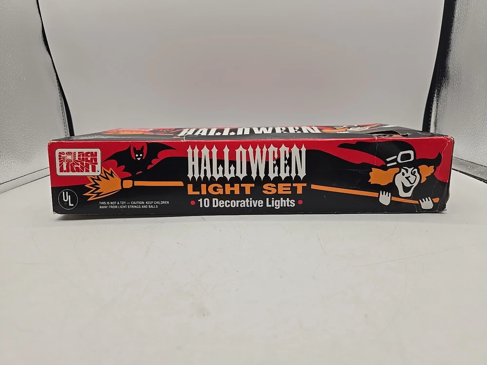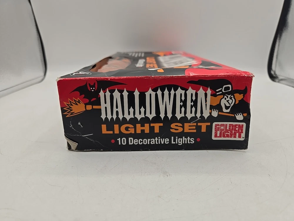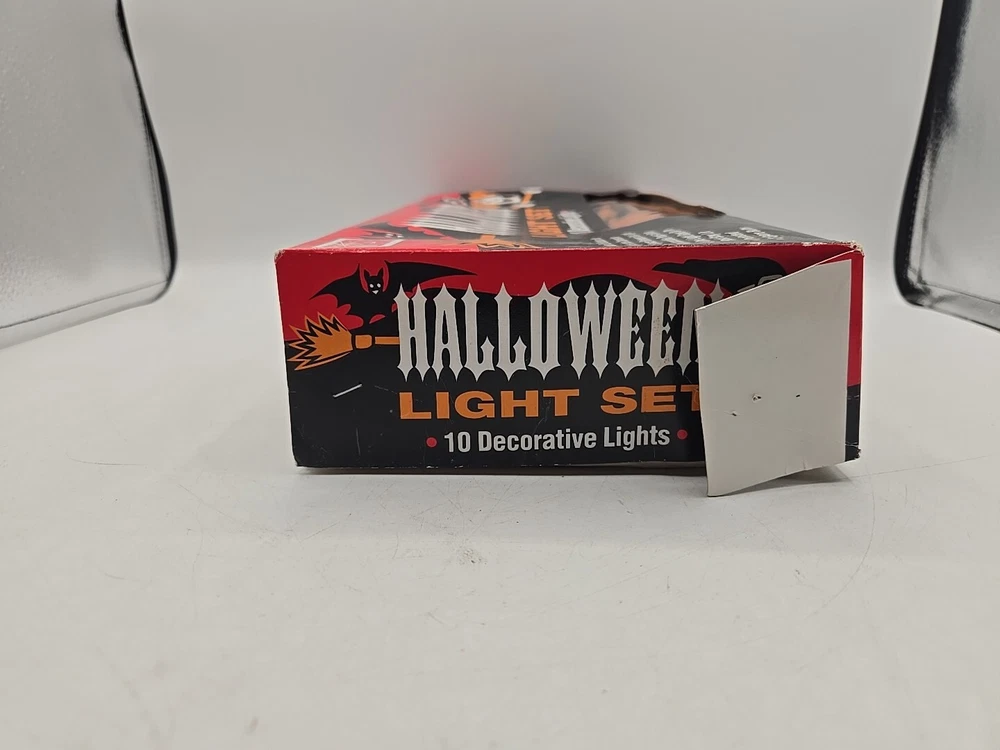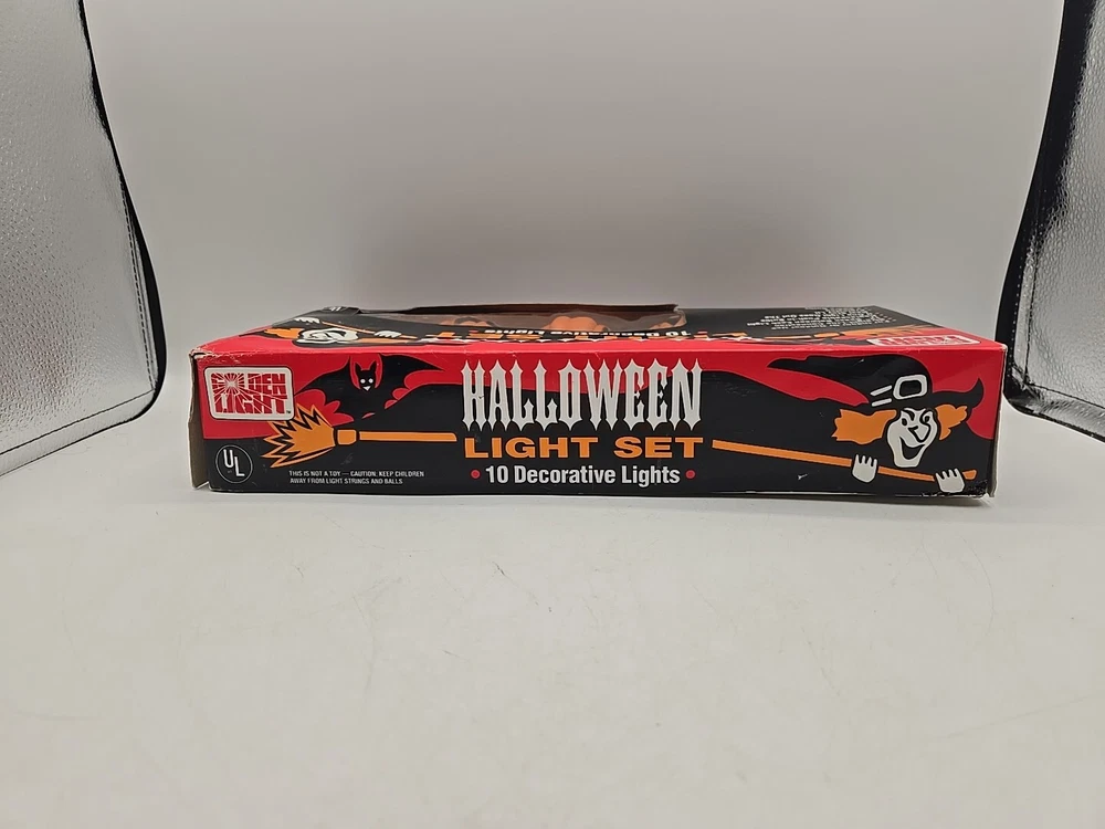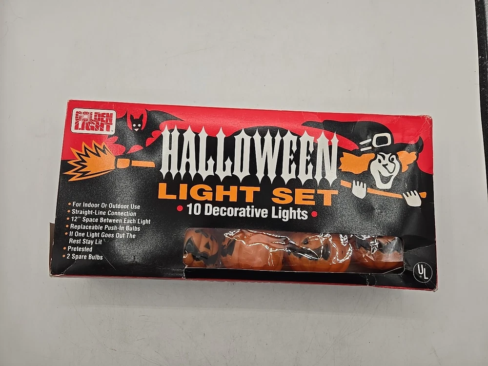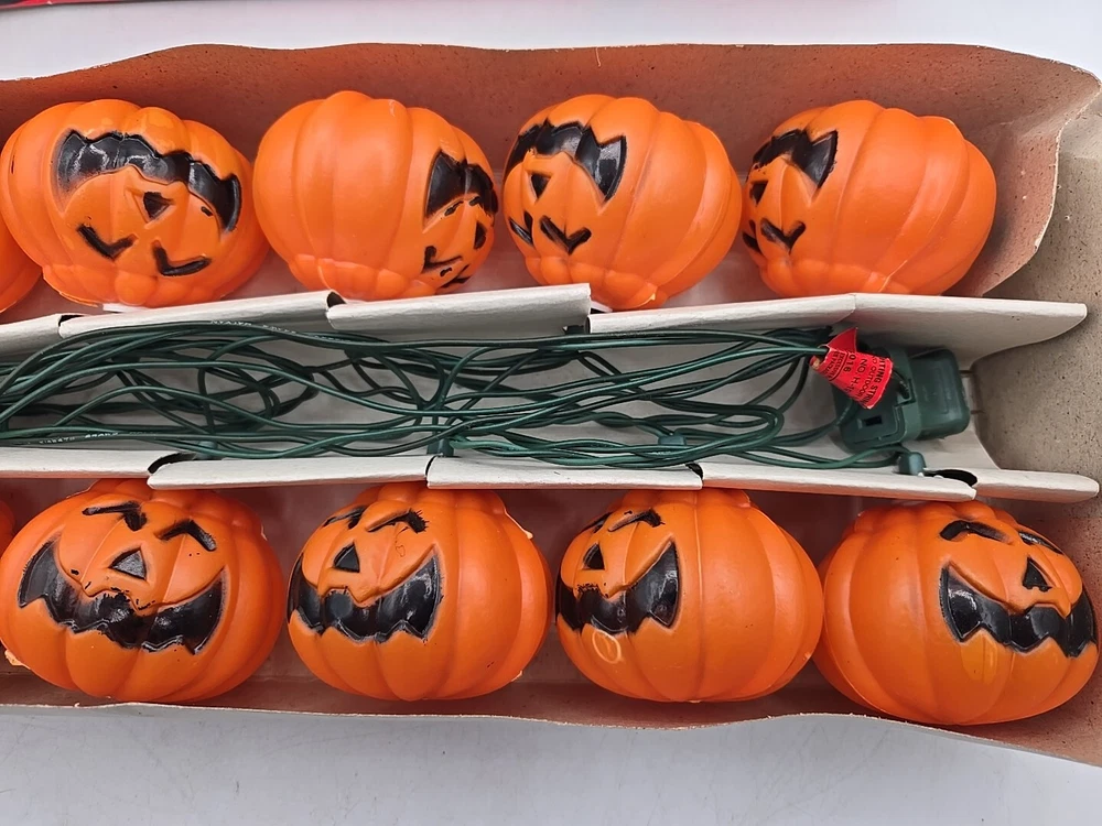 Vtg Orange Halloween String Light Set Blow Mold Pumpkins Jack O Lantern Open Box