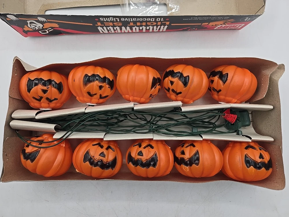 Vtg Halloween Jack O Lantern Pumpkin Light String Blow Mold Set of 10 Tested