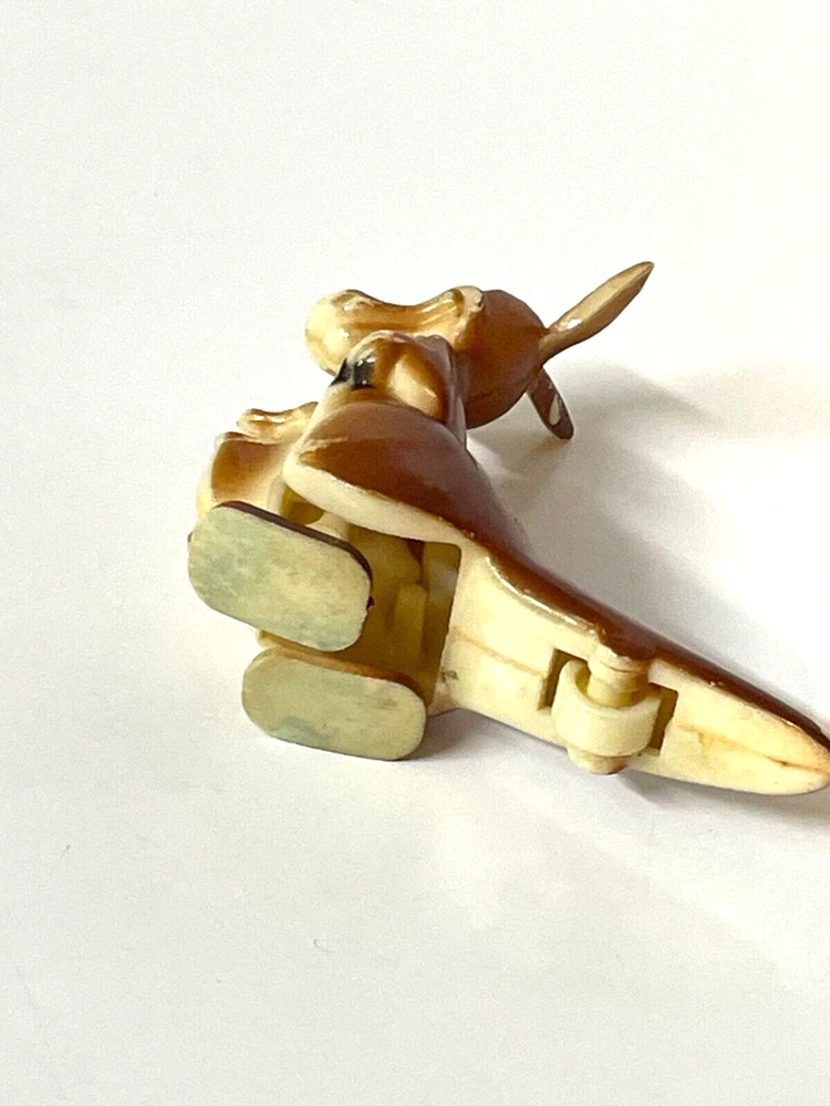This listing is for a Vintage Plastic Ramp TOY Walker Walking Kangaroo with a baby kangaroo. Approximately 3" high and 3" long. A little paint loss on end of tail and ear. Marked Hong Kong on side of leg. Please look at the photos closely as photos are an important part of the item description. The Plastic Ramp TOY Walker Walking Kangaroo with a baby kangaroo. is being sold as is and there is no return. Please see our other listings for other vintage items . We are happy to combine shipping unless items are to fragile or to bulky/heavy. Let us know if you are bidding on multiple items. If you have any questions please ask for additional information. Customer satisfaction is our priority. Happy Shopping and have a great day! And please leave feedback. We are a charity and items are used (vintage and antique) from donations, and as such generally show some signs of age related use and wear. Items are inspected closely and unusual wear and condition will be noted.. we sell items as is and clean, dust, but do not polish. We utilize recycled shipping/packing material and will ship either USPS, FedEx or UPS and will ship the least expensive method. . We ship within 3 business days of payment.
