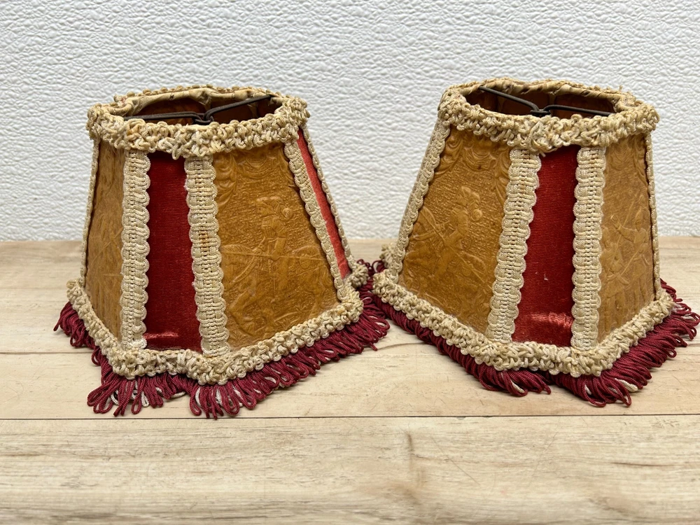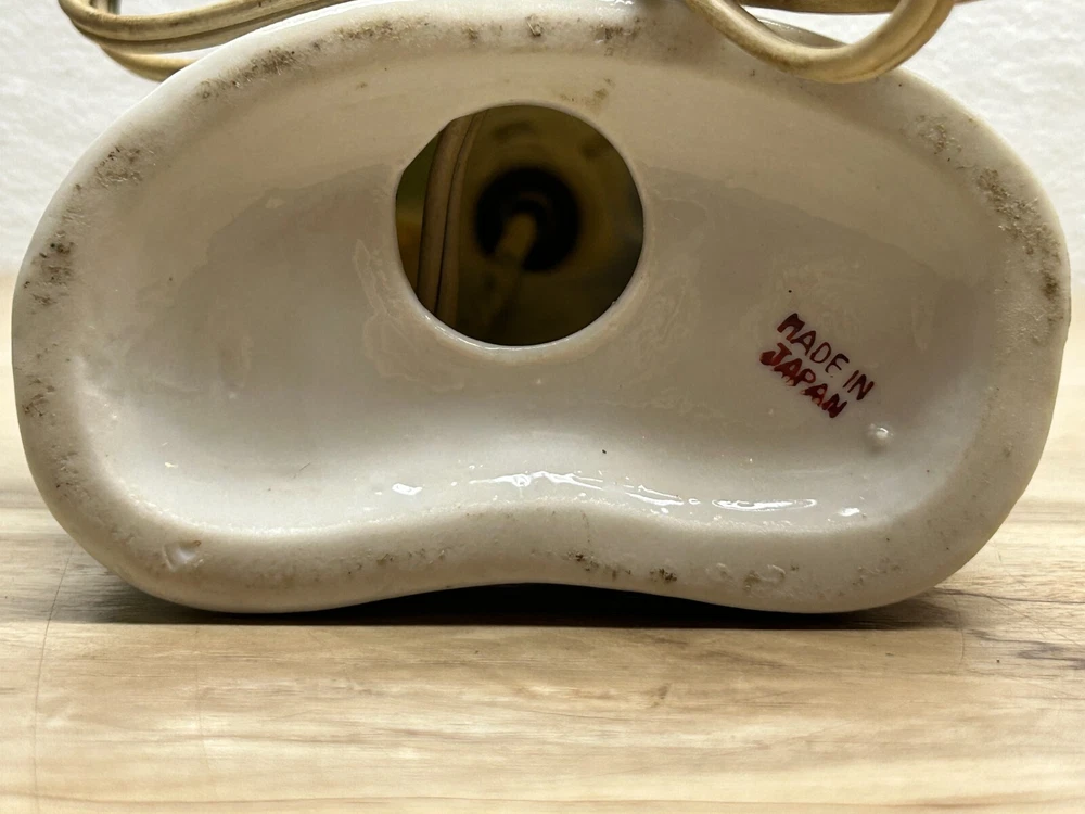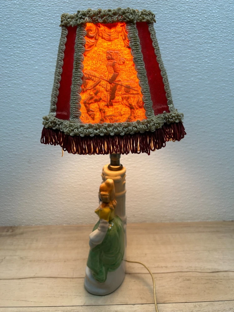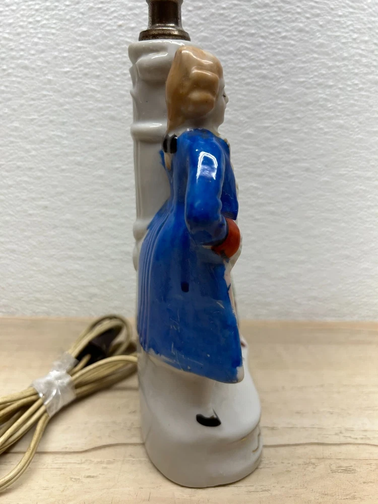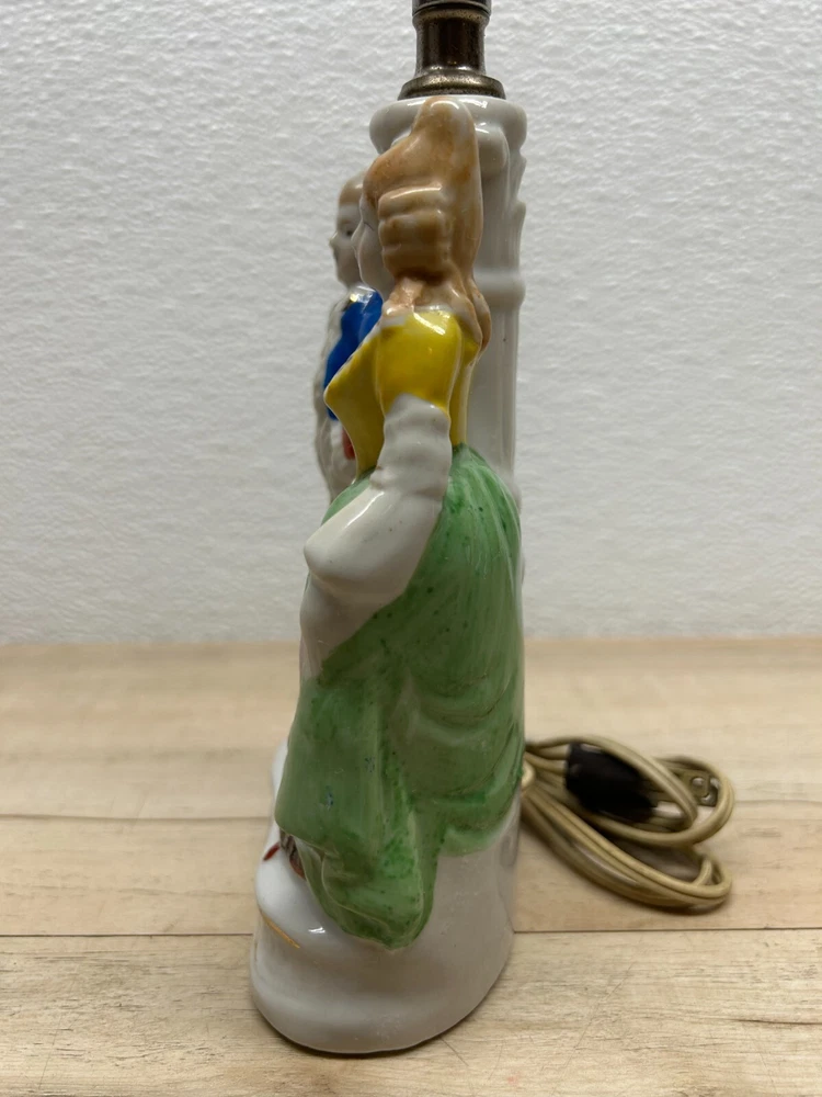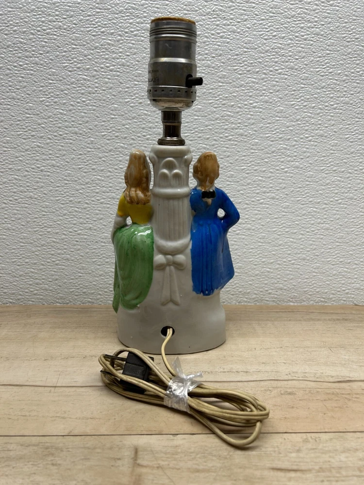 Vtg Porcelain Victorian Couple Night Stand Lamps Set Of 2 Original Shades Japan.The lamp shades are paper with 3D effect.The shades have signs of age and use.One of the shades have paper damage on one side-PLEASE see all pictures for details.Bulbs are NOT included