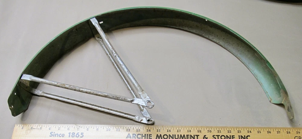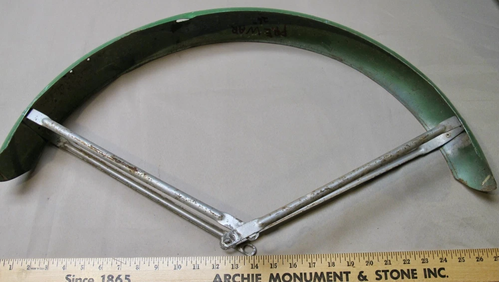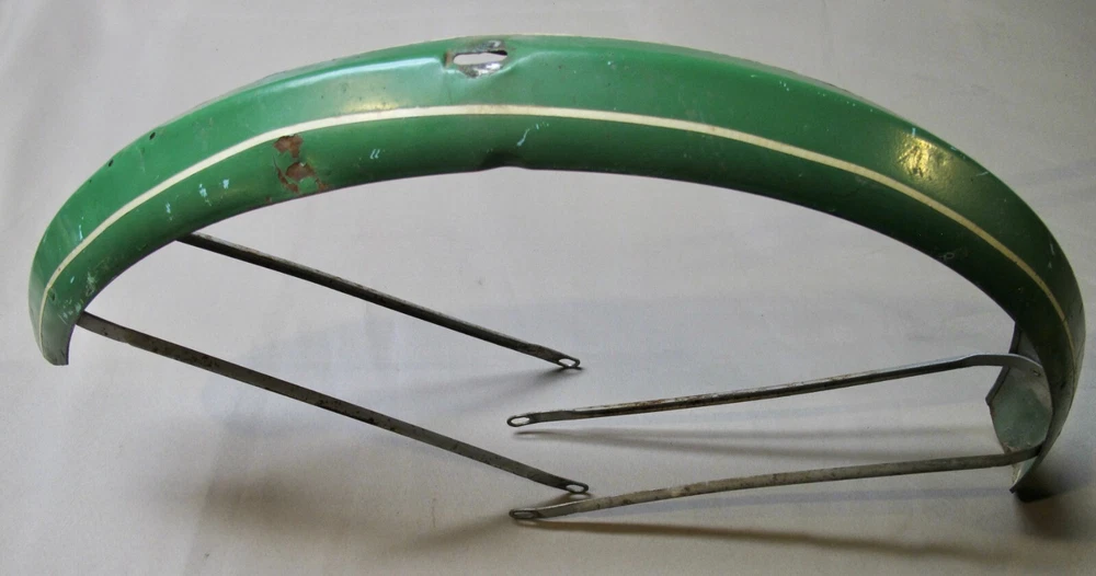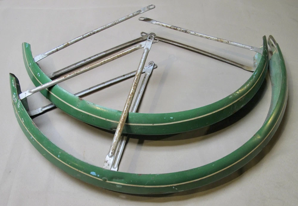 Vintage pre/postwar HAWTHORNE & ROADMASTER front & rear peaked balloon tire fenders with the fender braces for a 26 inch tire bicycle.
