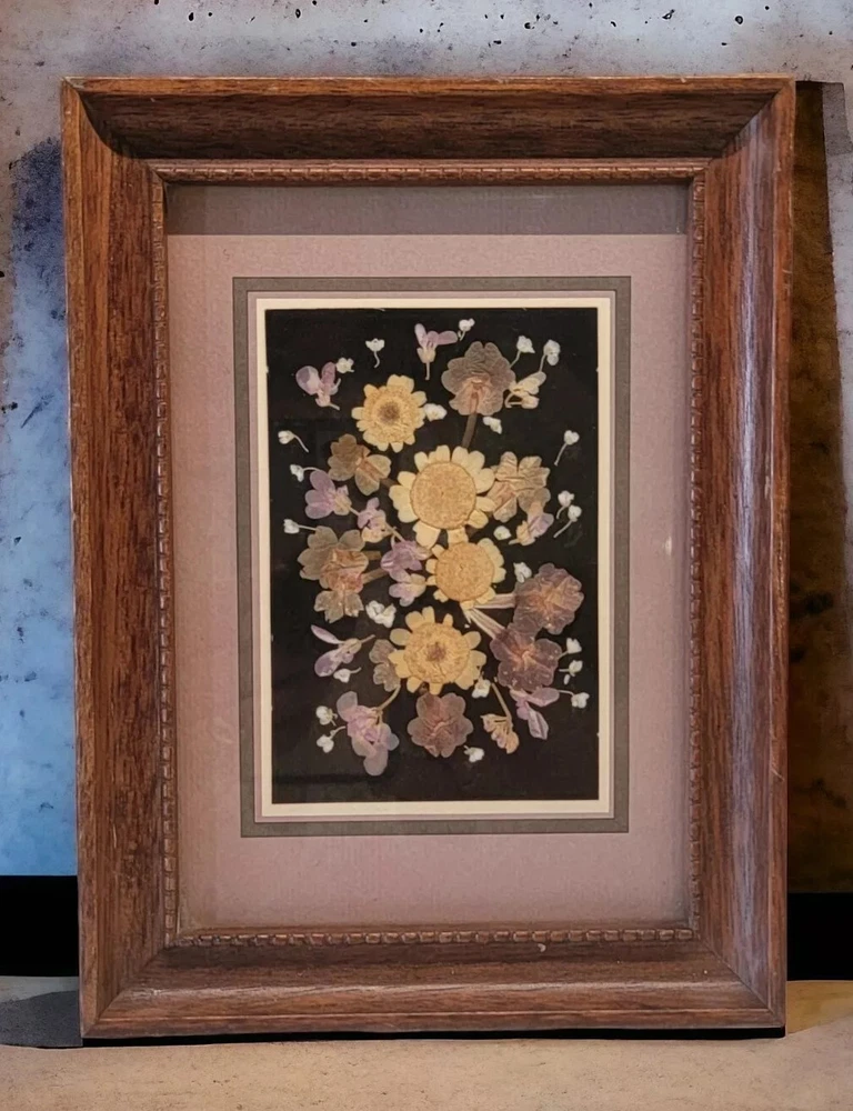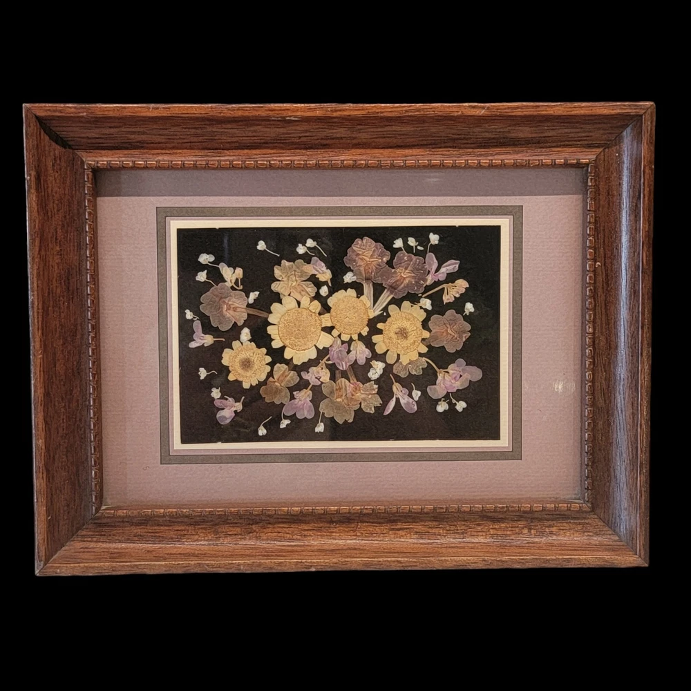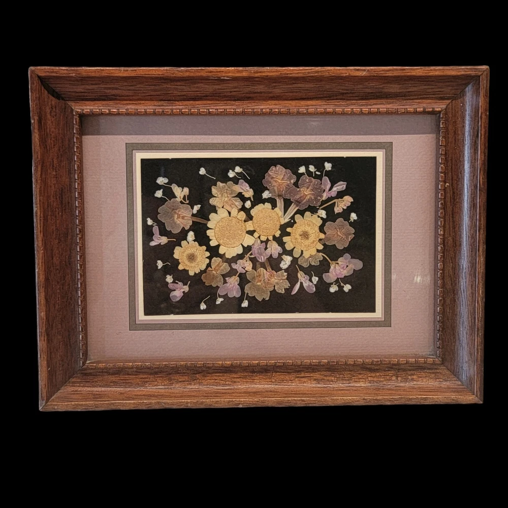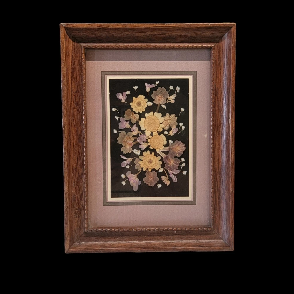 Vintage 80's Pressed Dried Flower Art Moonshadow Studio Signed