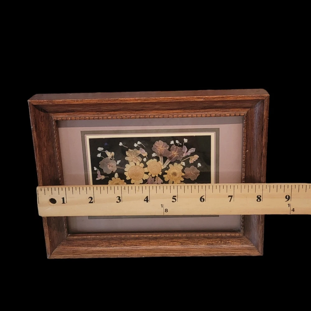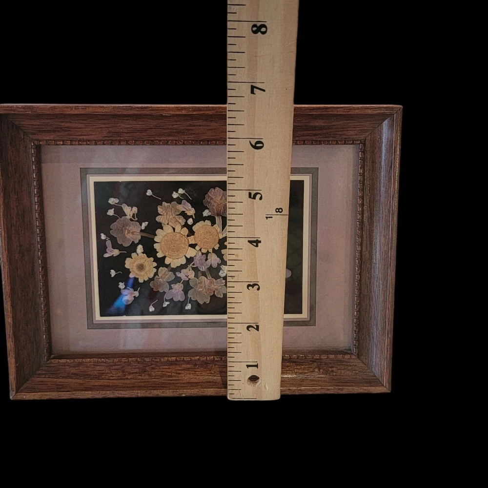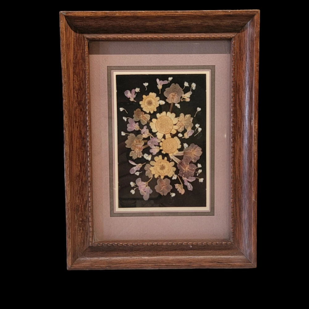 Vtg Pressed Flower Art Collage Wooden Frame Excellent 8x6.5" Horizontal Vertical