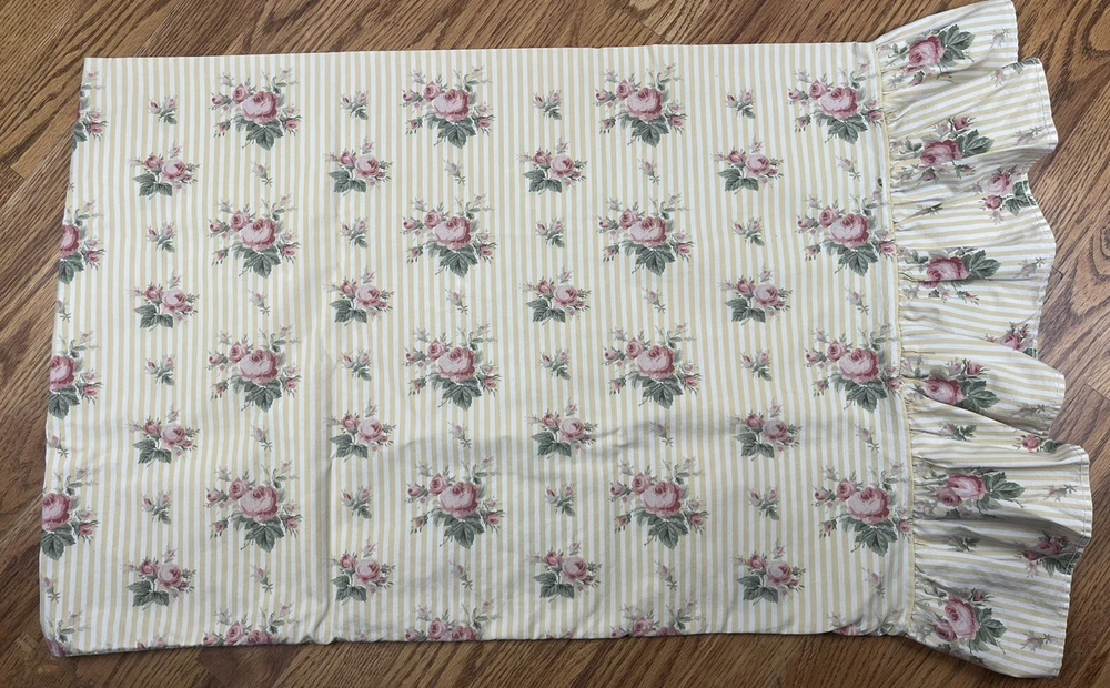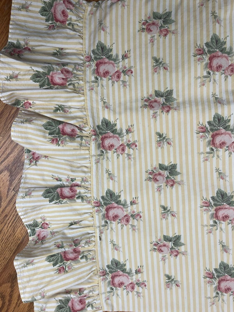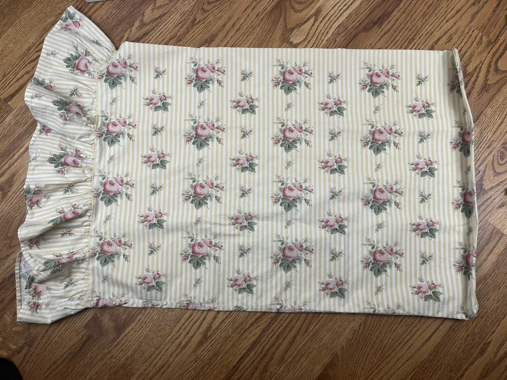 Vtg Ralph Lauren Sophie Brooke Yellow Stripes Rose Ruffled Standard Pillowcase. Condition is Pre-owned. Shipped with USPS Ground Advantage.