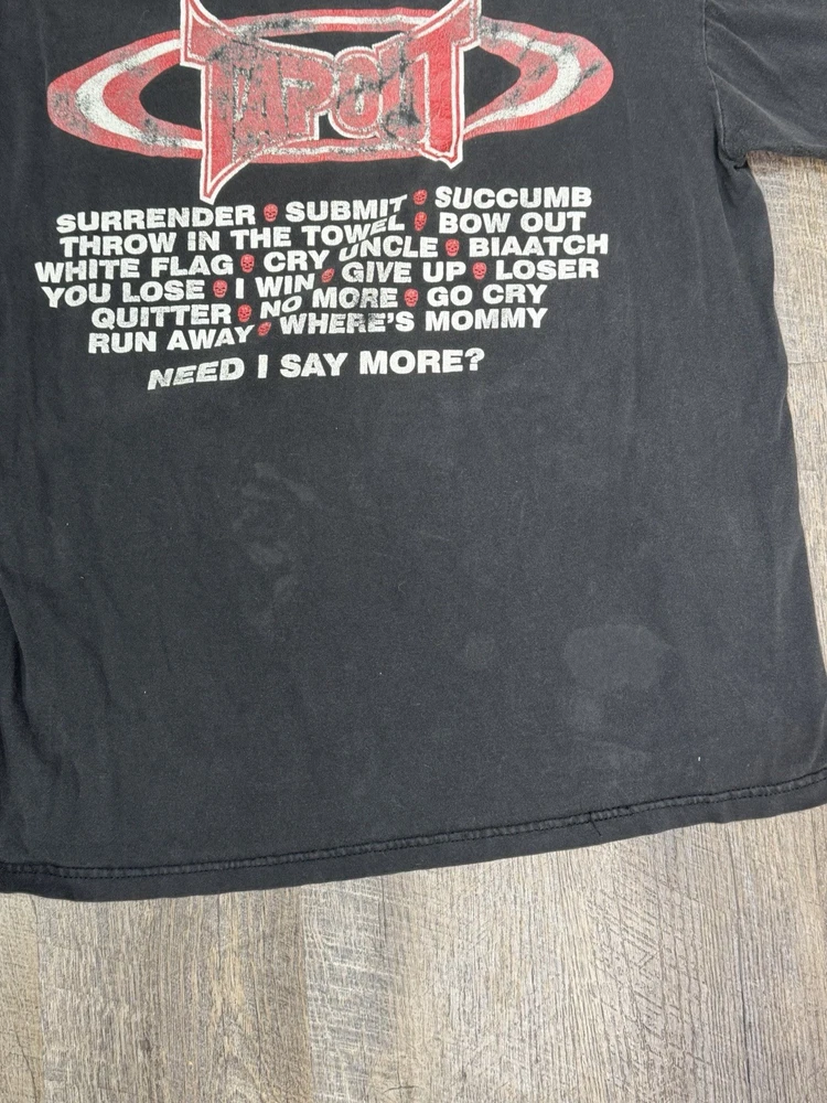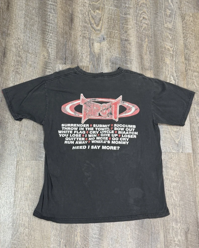 T shirt is overall in good condition. No holes or smell. Some fading on the black and on the back print of the shirt. Please see photos of the faded spots.