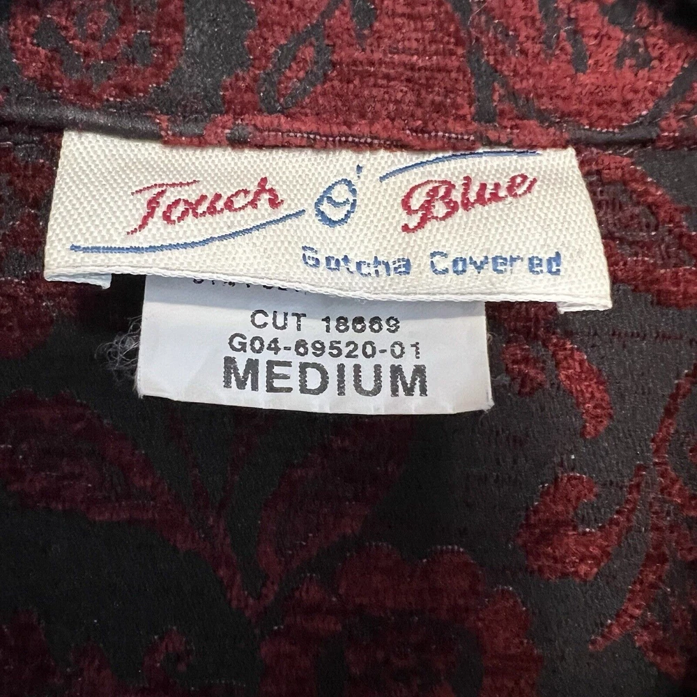 Type: Blazer Color: Red Size: M Personalize: No Pattern: Floral Style: Basic Jacket Sleeve Length: Long Sleeve Brand: Touch O' BLue Jacket/Coat Length: Short Model: Gotcha Covered Outer Shell Material: Cotton Blend Accents: Button Handmade: No Garment Care: Machine Washable Country/Region of Manufacture: United States Features: Collared, Lightweight, Unlined Vintage: Yes Lining Material: NA Season: Fall, Spring, Winter Fit: Boxy Size Type: Regular Theme: USA, Grandma, Gothic, Steampunk, Vintage MPN: 18669 Department: Women Closure: Button Occasion: Business, Casual, Party/Cocktail