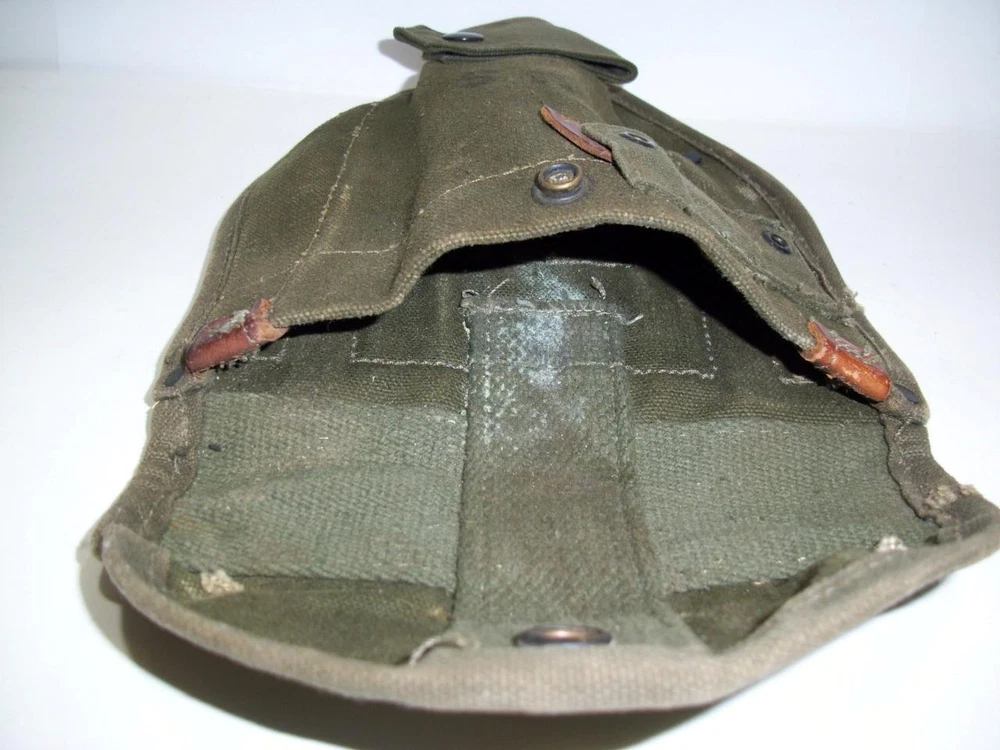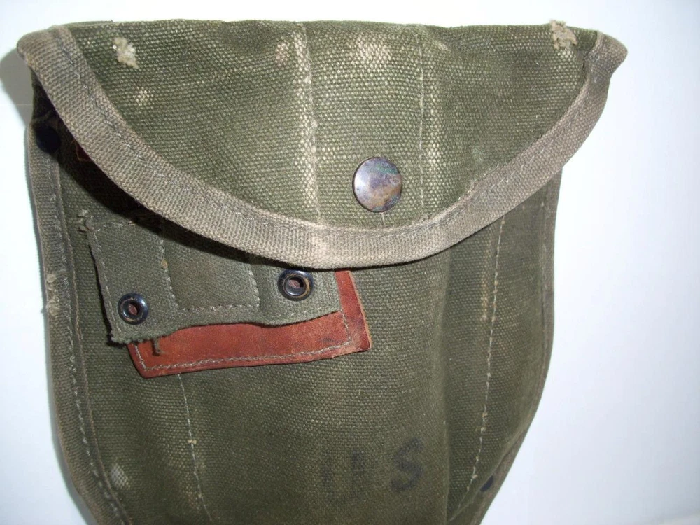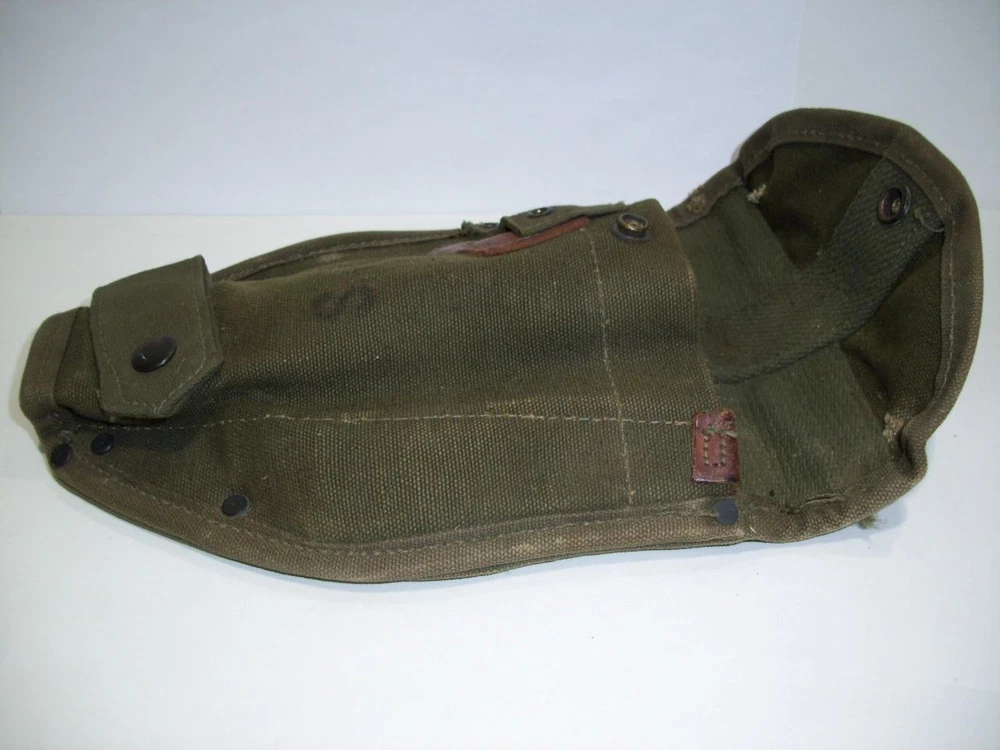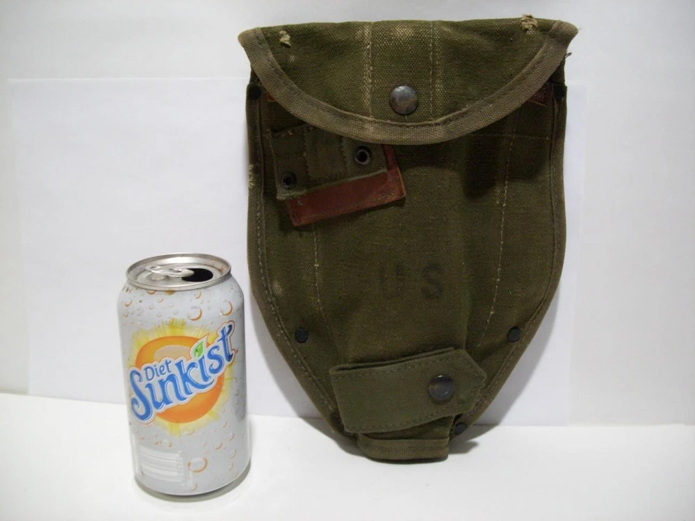 Vtg US MILITARY ARMY/KOREAN WAR ERA FOLDING TRENCH TOOL SHOVEL CANVAS SHEATH 195 Vtg US MILITARY ARMY/KOREAN WAR ERA FOLDING TRENCH TOOL SHOVEL CANVAS SHEATH 195 Click images to enlarge Description Vintage/ANTIQUE US MILITARY ARMY/KOREAN WAR ERA FOLDING TRENCHING TOOL SHOVEL CARRIER/ CANVAS SHEATH. HEAVY, STRONG CANVAS WITH GOOD SECURE SNAPS. DATED, AUGUST 195? I CAN'T MAKE OUT A DEFINITE NUMBER. A COUPLE OF WEAR MARKS ON THE TOP FLAP. MEASURES ABOUT 7-1/4" X 10" X 2-1/2". Please enlarge all pictures to see the condition and details the best. I will combine shipping on multiple items, when possible, ( some items can't be shipped together ) to save on shipping costs. Additionally, we use eBay's calculated shipping which estimates shipping costs to your destination based on the size of the box your item will be shipped in, the weight of the item, and the distance from here to there. At times, the calculation is off if we overestimated the size of the box or weight of the item. If that should occur, the buyer is reimbursed for any excess shipping charges paid. We don't charge anything extra for packaging/handling fees. Buyers pay what USPS charges for shipping. Additionally, we use eBay's calculated shipping ALL ITEMS SOLD AS IS. MOST OF OUR ITEMS ARE ACQUIRED FROM ESTATES, AND HAVE BEEN USED. WE TRY TO DESCRIBE OUR ITEMS WITH ACCURACY, BUT AT TIMES WE MAY MISS SOMETHING. WE'RE HUMAN AND CAN MAKE MISTAKES. IF YOU FEEL WE'VE MADE A MISTAKE, OR THERE'S A PROBLEM WITH YOUR PURCHASE, PLEASE MESSAGE US. BUYER PAYS SHIPPING . PAYMENT MUST BE RECEIVED WITHIN (2) DAYS FROM END OF AUCTION, OR EBAY WILL OPEN UP AN UNPAID ITEM CASE ON OUR BEHALF. SHIPPING IS USUALLY DONE WITHIN 1-2 BUSINESS DAYS. Get images that make Supersized seem small. Showcase your items with Auctiva's Listing Templates! THE simple solution for eBay sellers.