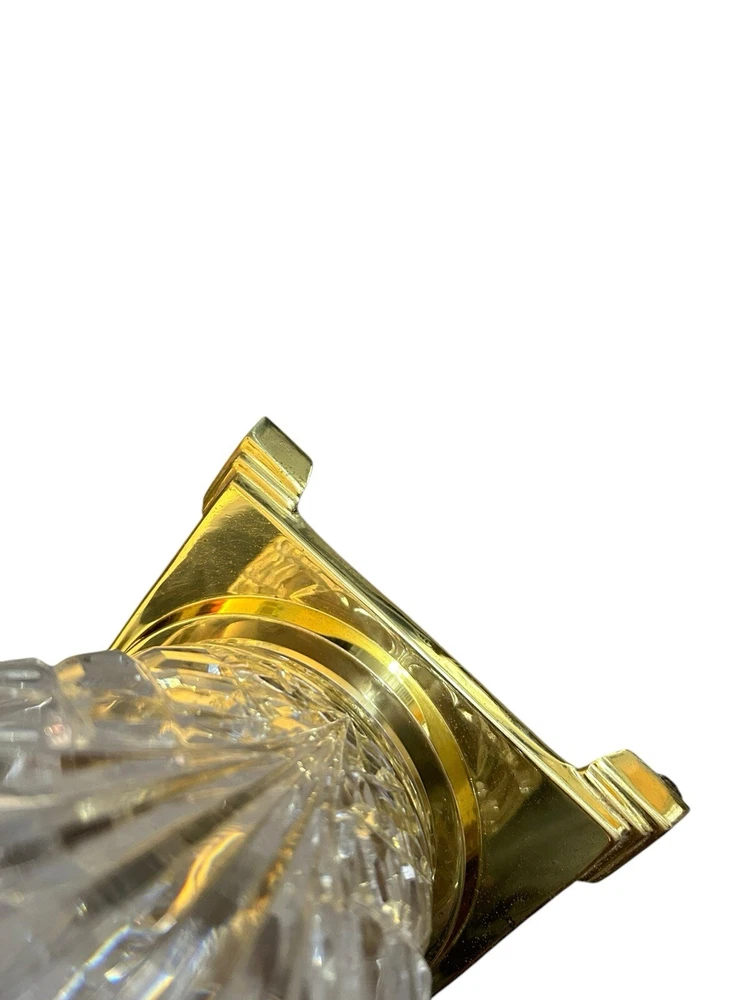 Vtg Waterford Avery Table Lamp 12” Etched Crystal Gold Base No Shade Or Harp