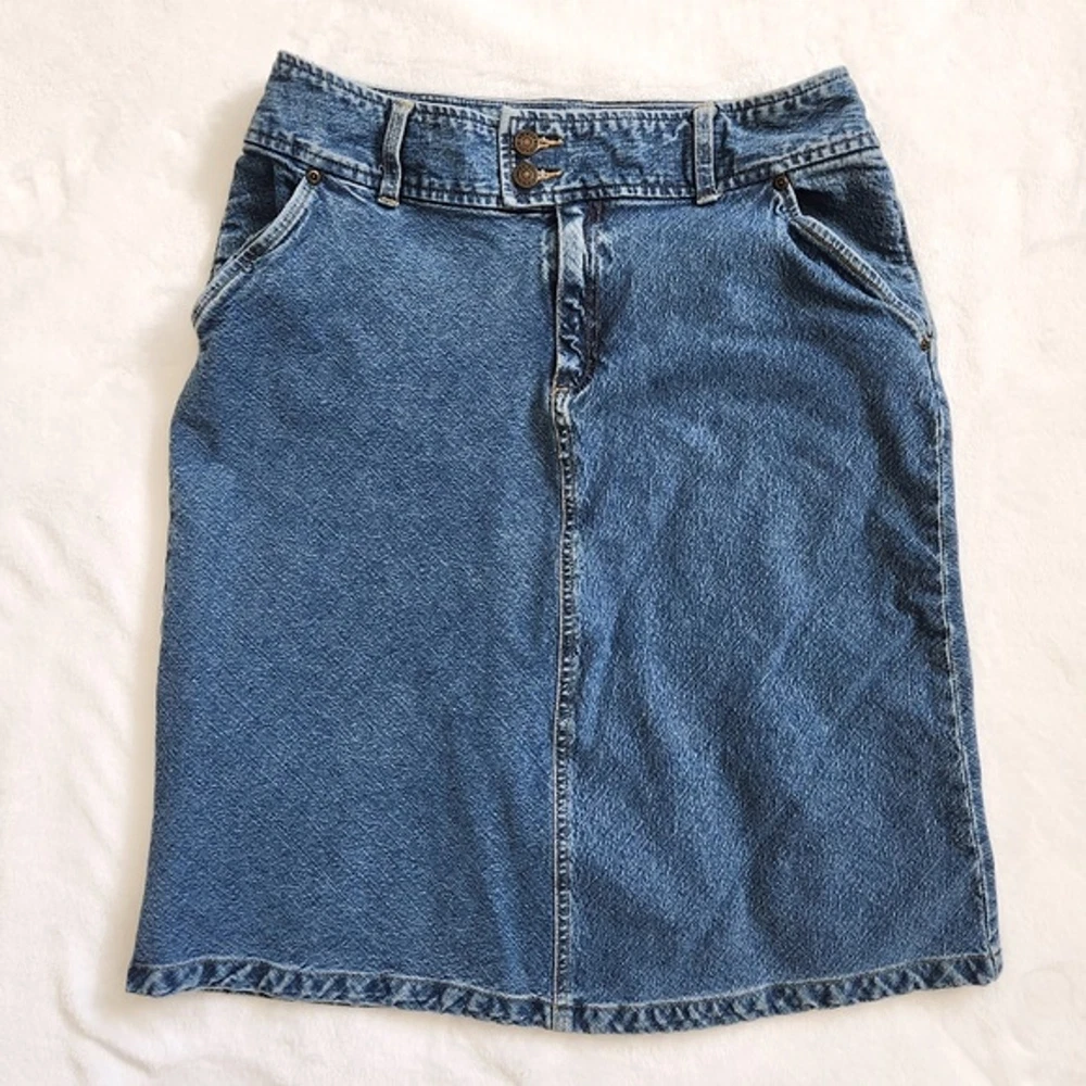 Vtg Y2K Crazy Horse Denim Skirt Women's Size 10 Double Button Blue Medium Wash Vintage 2000s Crazy Horse by Liz Claiborne denim skirt in women's size 10. - Classic medium wash denim with YKK zipper and double button closure. - Buttons and rivets are embossed with "Crazy Horse" logo. - Above knee length. - Minor wear, brand tag is damaged. Otherwise great condition! Super cute staple, perfect for spring and summer. ✦ material: 98% cotton, 2% spandex. Made in Dominican Republic of US fabric. ✦ lay flat measurements: waist: 16 in length: 24 in denim skirt // jean skirt // vintage // grunge // retro // casual // preppy // comfy // indie // jeans // cottagecore // 90s // y2k ✦ All orders ship out within 1-2 days! ✦