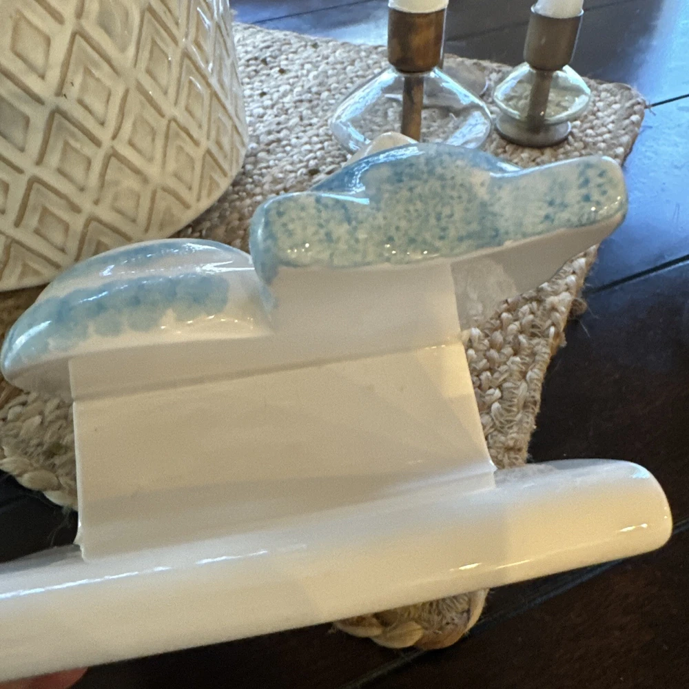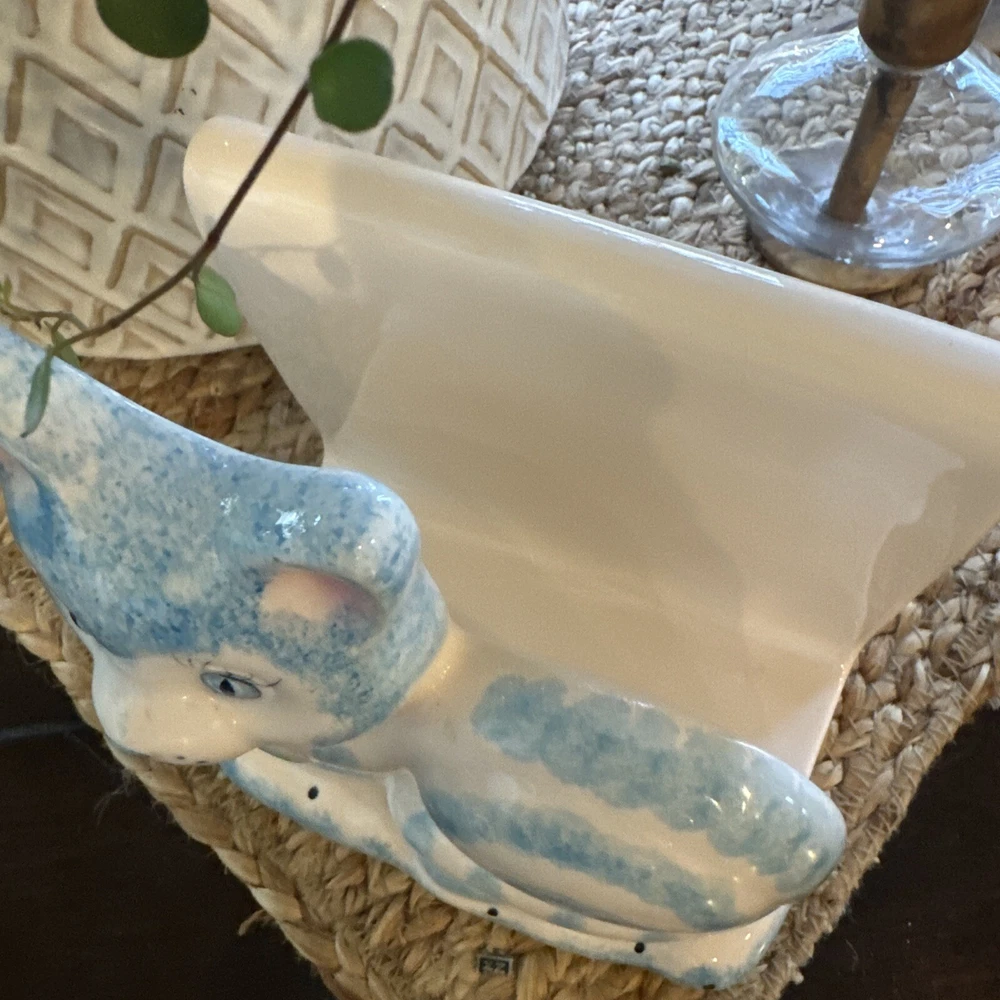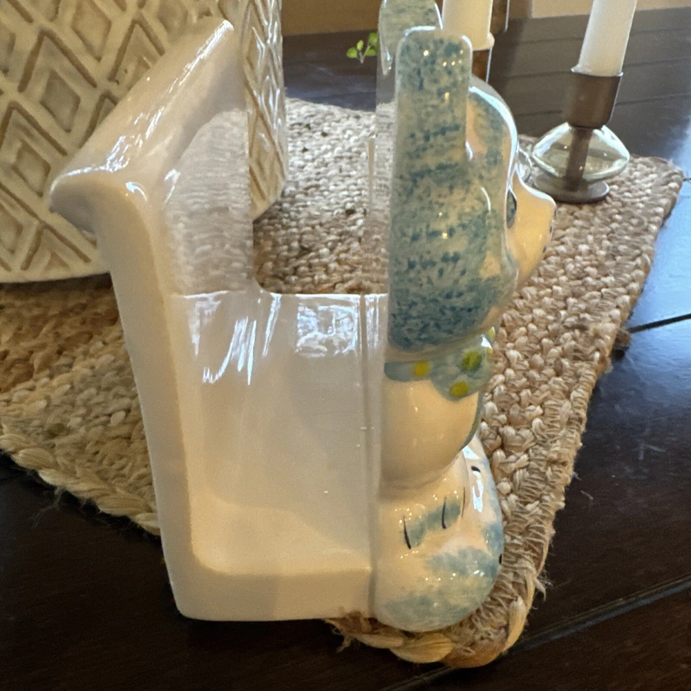 Vtg ceramic cat napkin holder Puuurfect Cat Lover Home Sponged Blue Ceramics