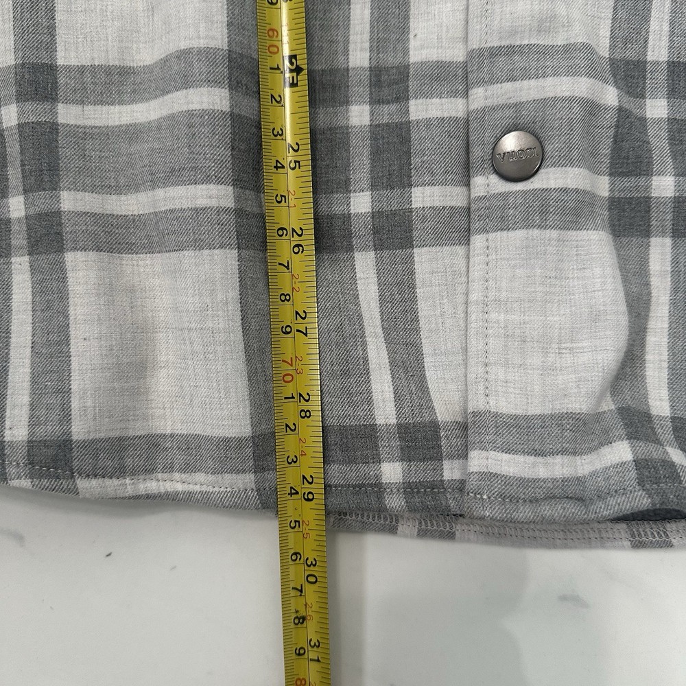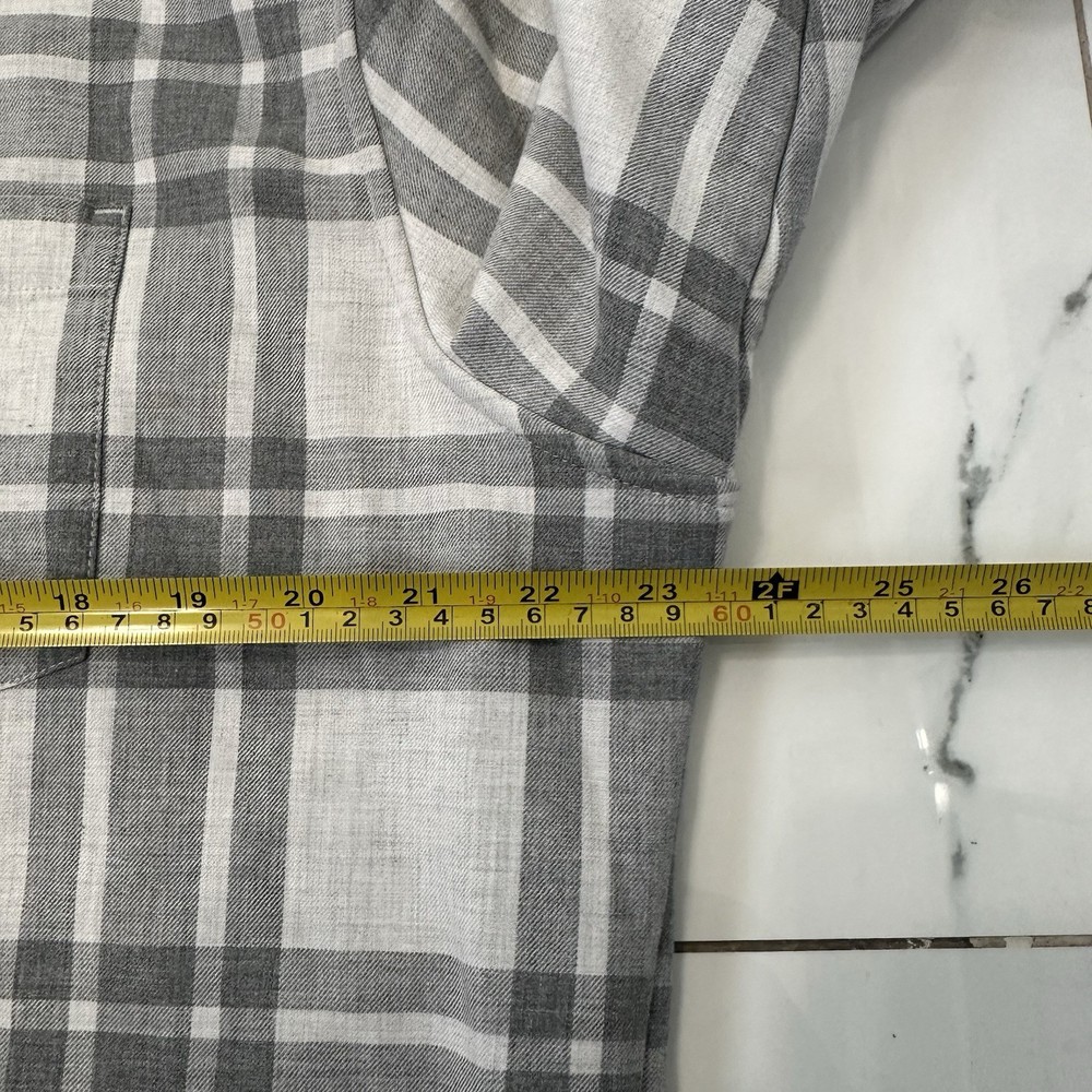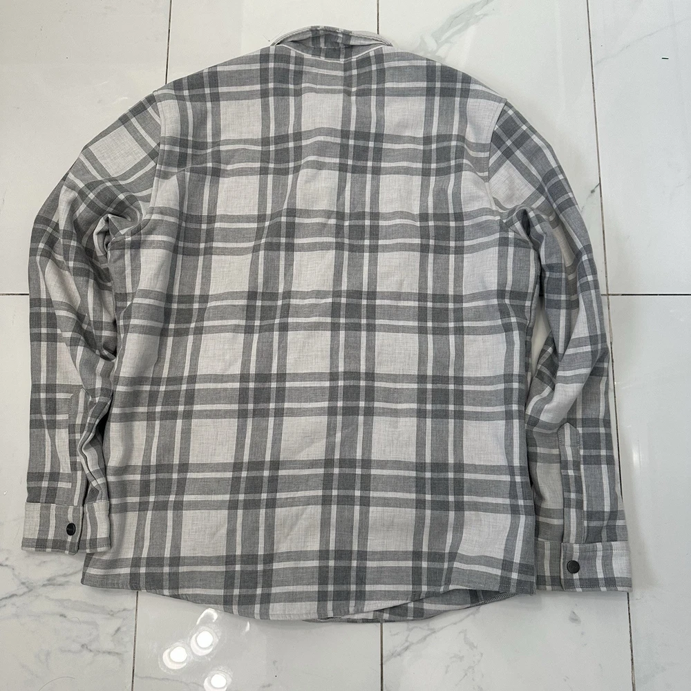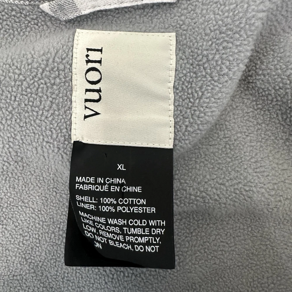 The Vuori Men's Range Shirt Jacket V246 in XL size is a stylish and versatile outerwear option for various occasions. Made from cotton with a cozy fleece lining, this plaid flannel snap shirt jacket features a spread collar, snap closure, and side pockets for added functionality. The mid-length shacket in gray is designed for the winter, fall, and spring seasons, making it suitable for travel, casual outings, workwear, and business meetings. With its insulated polyester lining and polyester fleece material, this jacket is perfect for outdoor activities like walking, hiking, and hunting, while still maintaining a classic and preppy style.