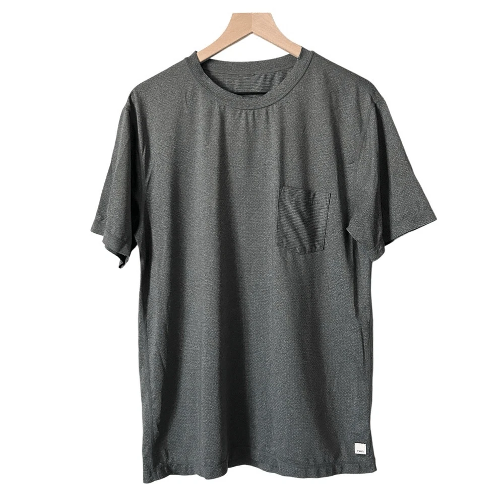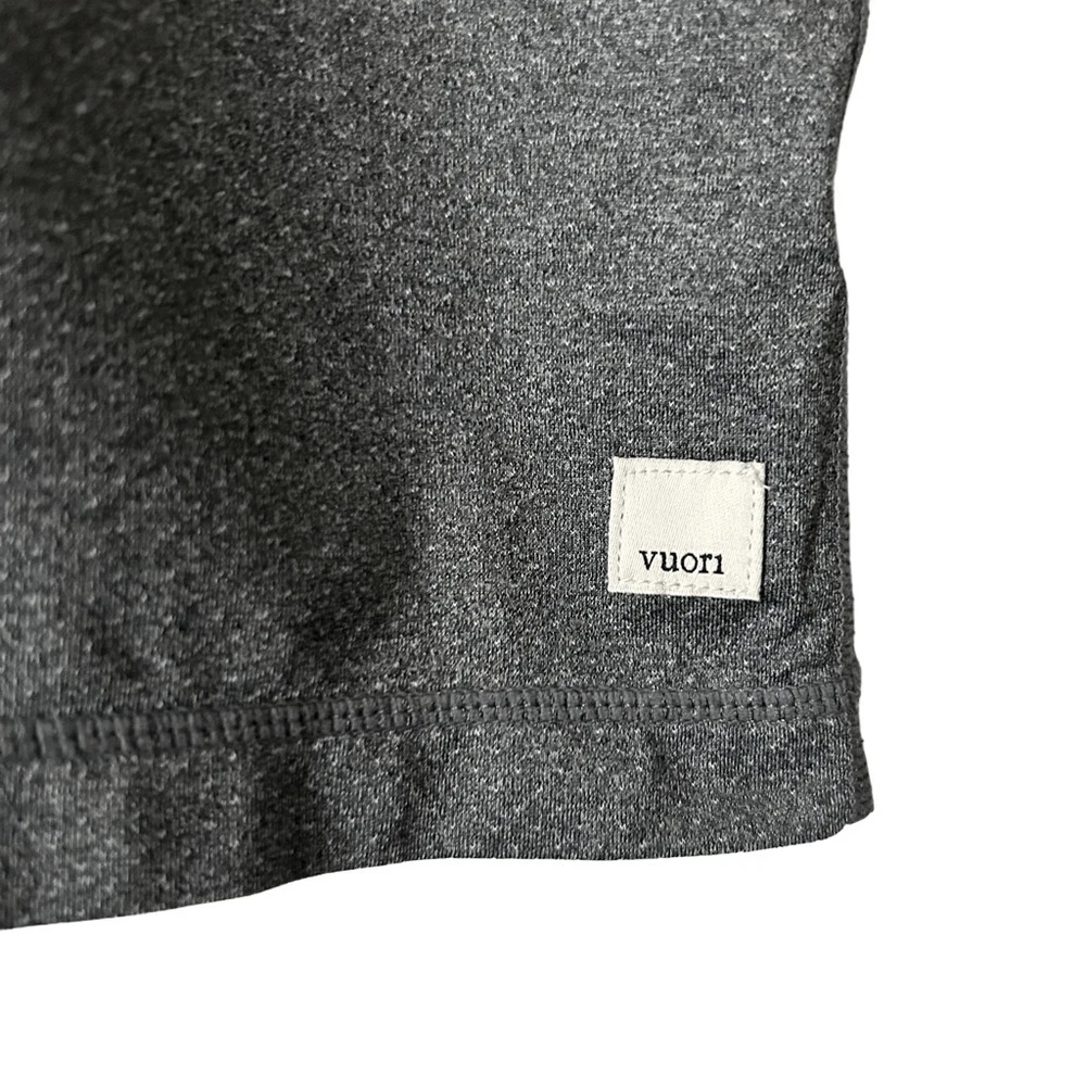 Vuori Tradewind Performance Tee in Quartz Heather. Lightweight, breathable, perforated performance recycled knit. Excellent used condition with no flaws. Size Large. Chest - 22” Length - 29” Athletic, workout SKU 9224