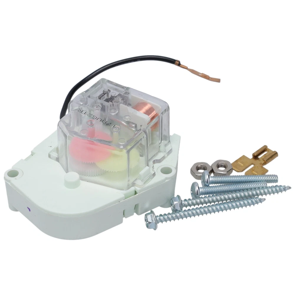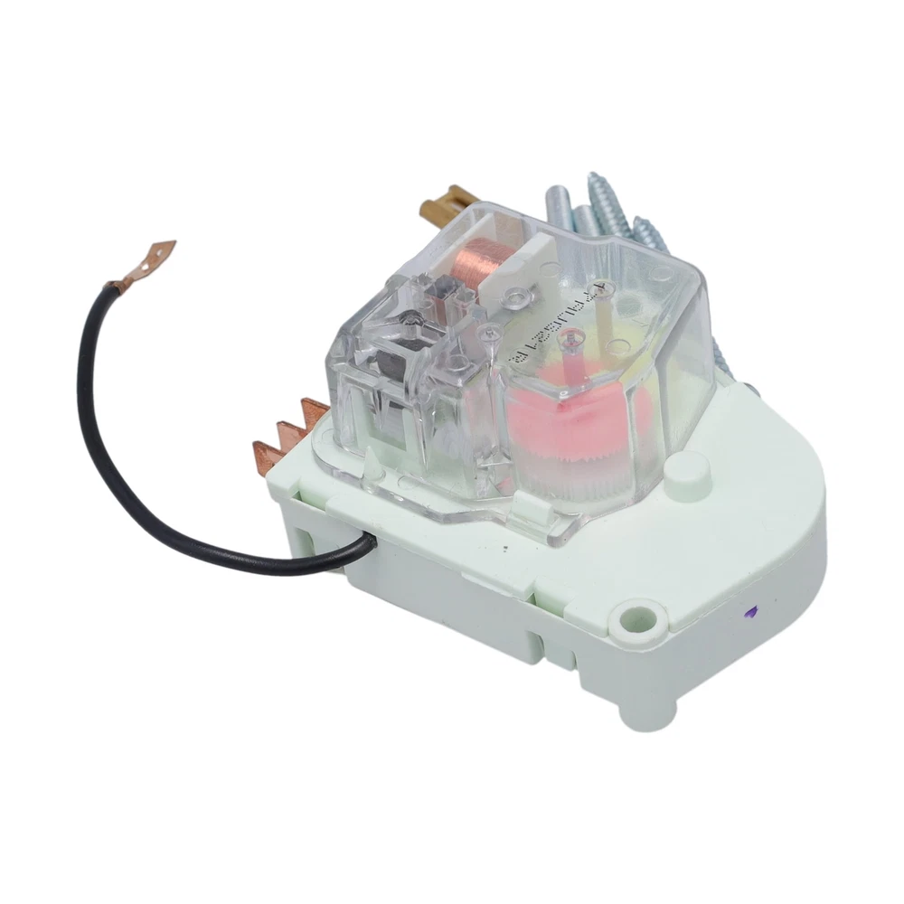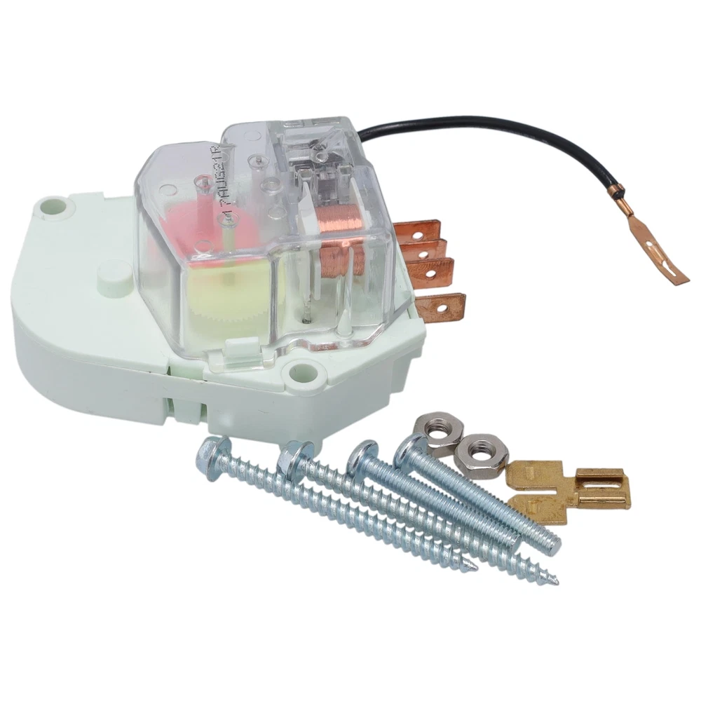 Defrost Timer assembly. Compatible with Whirlpool, Kenmore, and other brands. This is not a Whirlpool OEM product. The Whirlpool brand names and logos are the registered trademarks of their respective owners. Any use of the Whirlpool brand name or model designation for this product is made solely for purposes of demonstrating compatibility. "The trademarks, logos, and service marks (collectively the "Trademarks") displayed herein are registered and unregistered trademarks of , its affiliates, and others. Nothing contained herein should be construed as granting, by implication, estoppel, or otherwise, any license or right to use any trademark displayed herein without the written permission of or such third party that may own the trademark displayed herein. Your misuse of the trademarks displayed herein, or any other content on this website, except as provided herein, is strictly prohibited." Alternate part numbers include AP5985208, 14210016, 2188372, 2188376, 4262692, 4318057, 482489, 548044, 56906, 790077, 850019, 850038, 850343, 850344, 850345, 850609, 850695, 850731, 850845, 850847, 850878, 850879, 851061, 851106, 851200, 851269, 851701, 851971, 943436, 945513, 945514, 978266, 978472, 989280, 989281, CC309, CC904, CC906, D70041-12, FSP482493, GP6, GP9, PS11723171, R0950217, W10740039, W10822278VP, Y0053736, Y0055525, Y0056627, Y0056768, Y0056906, and Y0311209. 120V | 50/60Hz | 8 Hour, 21 Minute | Includes flying lead and mounting screws | Fits model specific side-by-side refrigerators It is important to disconnect your appliance from the power supply before servicing. replacement parts are compatible with Major Brands, but you should always verify fitment with your specific model. We have included a video in the product gallery to help you find your model number and information in the description below. SD products come in packaging.