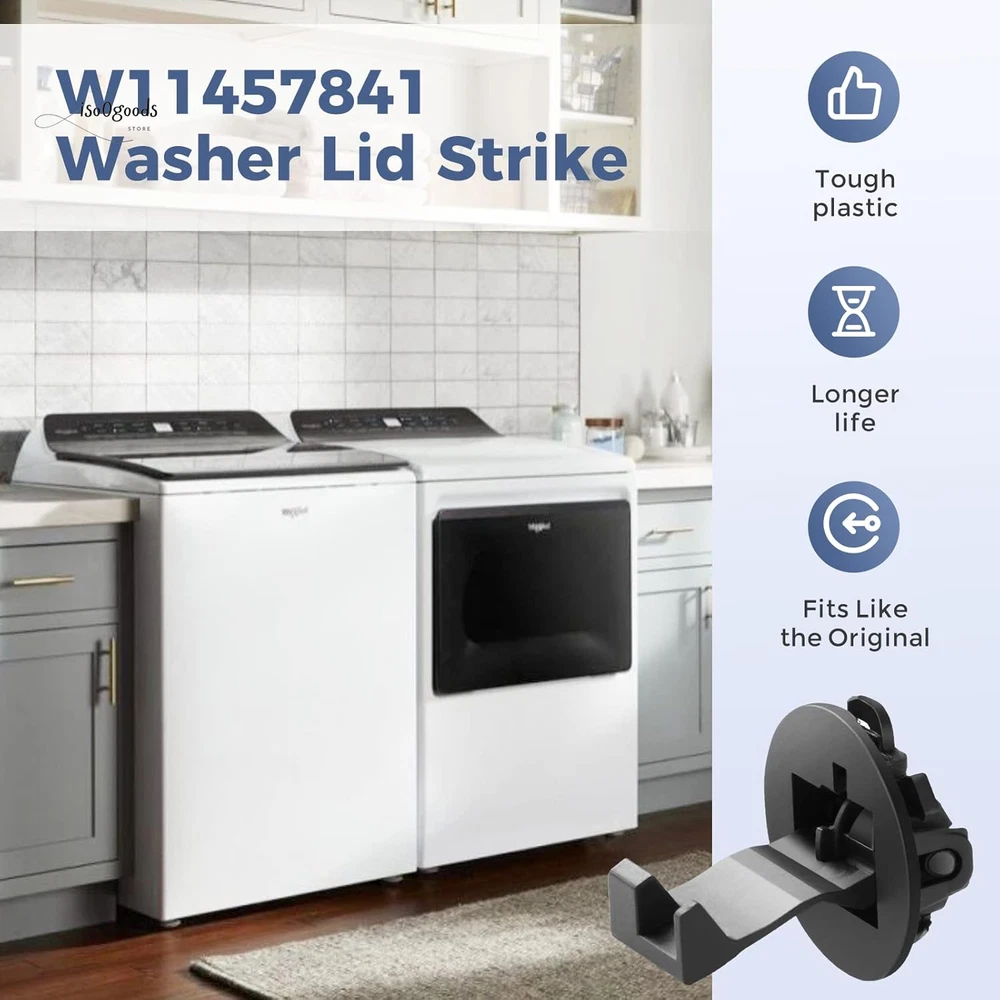 W11457841 Washer Lid Lock – Replacement for Whirlpool & Maytag Washing Machines Product Description Upgrade your washing machine with the W11457841 washing machine lid lock, a high-quality replacement part designed for Whirlpool and Maytag washers. This durable part ensures the effective operation of your washer, keeping it running smoothly and securely. Key Features: Quality Construction : The W11457841 lid lock is made from durable plastic, offering long-lasting reliability. It has been fully tested to ensure perfect fit and function, providing an effective replacement part for your washing machine. Replaceable Models : The W11457841 door lock is a direct replacement for multiple models, including: W11091027, 4959179, AP6884238, PS12720638, EAP12720638. Compatible Brands : This replacement lid lock is compatible with various Whirlpool and Maytag washers, including models like WTW500CMW0, MVW6200KW0, and more. Not sure if it’s the right fit for your washer? Contact us with your washer model, and we’ll confirm compatibility. After-Sale Service : We provide a satisfaction guarantee with all purchases. If you encounter any quality issues, we offer hassle-free returns or replacements within 12 hours. Our goal is to ensure your complete satisfaction with every purchase. Compatible Models : Whirlpool : WTW500CMW0, WTW5100HC0, WTW5100HW0, WTW5105HC0, WTW6120HC0, WTW7120HC0, WTW8120HC0, WTW8127LC0, WTW8127LW0, etc. Maytag : MVW6200KW0, MVW6230HC0, MVW6230HW0, MVW7230HC0, MVW8230HC0, MVW6500MBK0, etc. Kenmore : 11021112020, 11021652020, 11031312021, 11031652020, etc. Why Choose W11457841 Lid Lock? Reliable and Durable : Made with high-quality materials to ensure long-term operation. Easy to Install : It’s designed for easy replacement, ensuring minimal downtime for your washing machine. Perfect Fit : Fully tested to ensure it works with the specified models, providing a seamless installation experience. Package Includes : 1 x W11457841 Washer Lid Lock Customer Support :