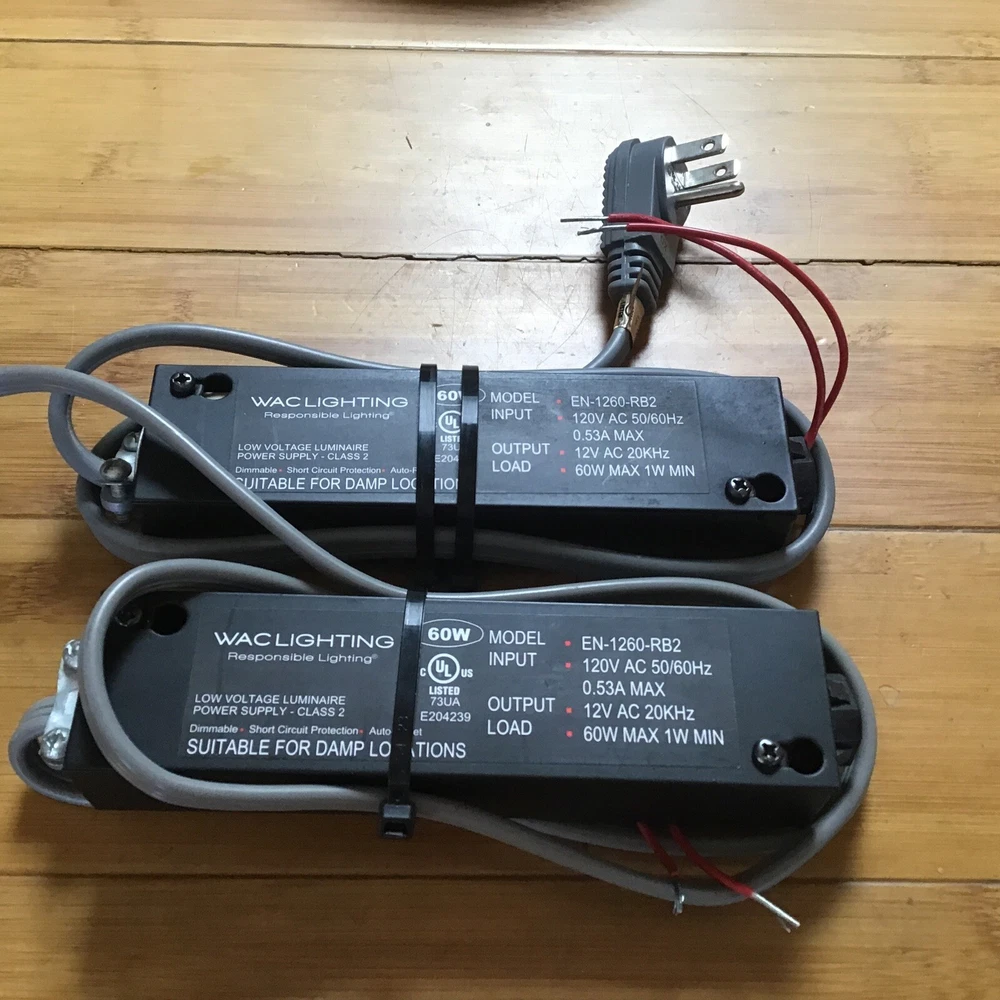 These are two unused transformers, they are dimmable . These were set up for some application and never used. They were extras . The set up includes a hardwired grounded plug with about 3’ Power cord .
