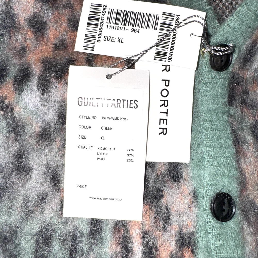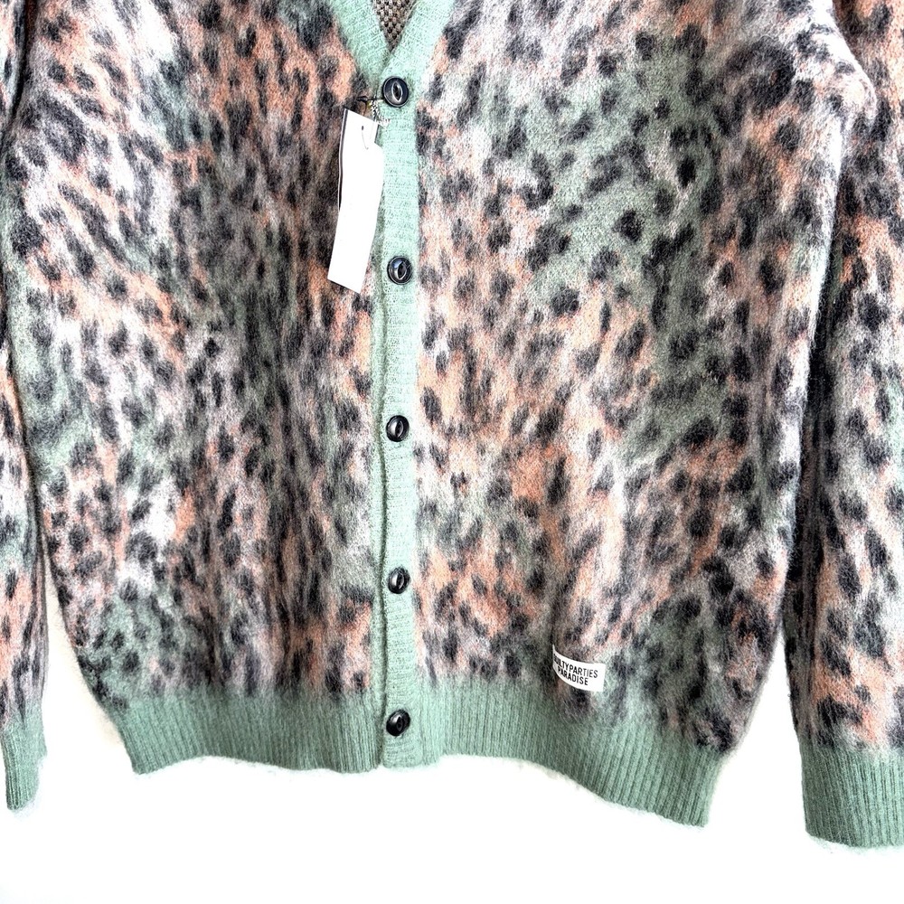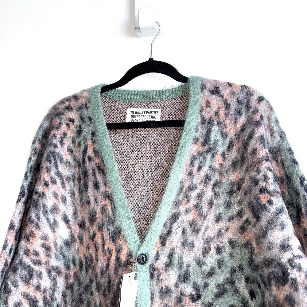 WACKO MARIA Green Leopard Mohair Blend Cardigan Mens XL Japan New With Tags